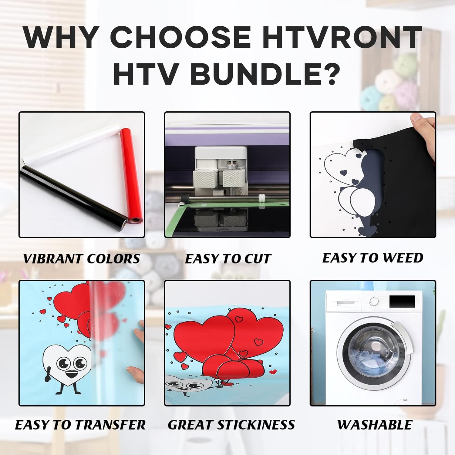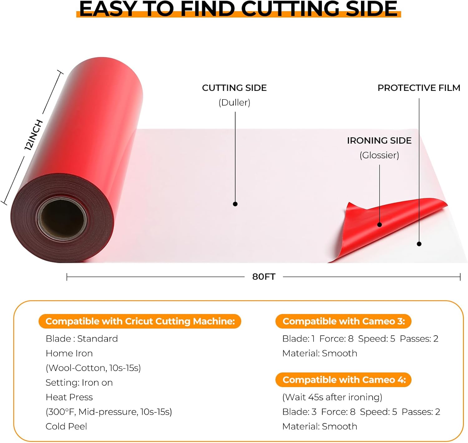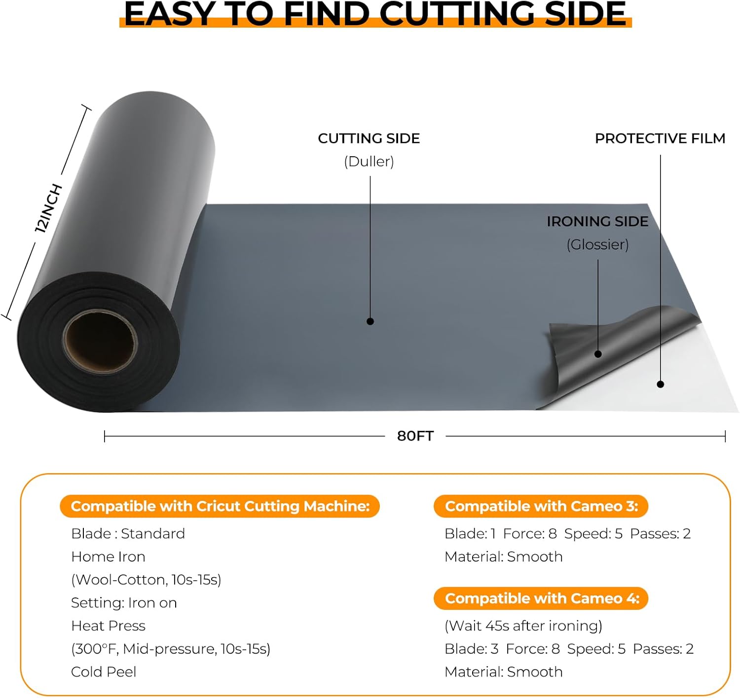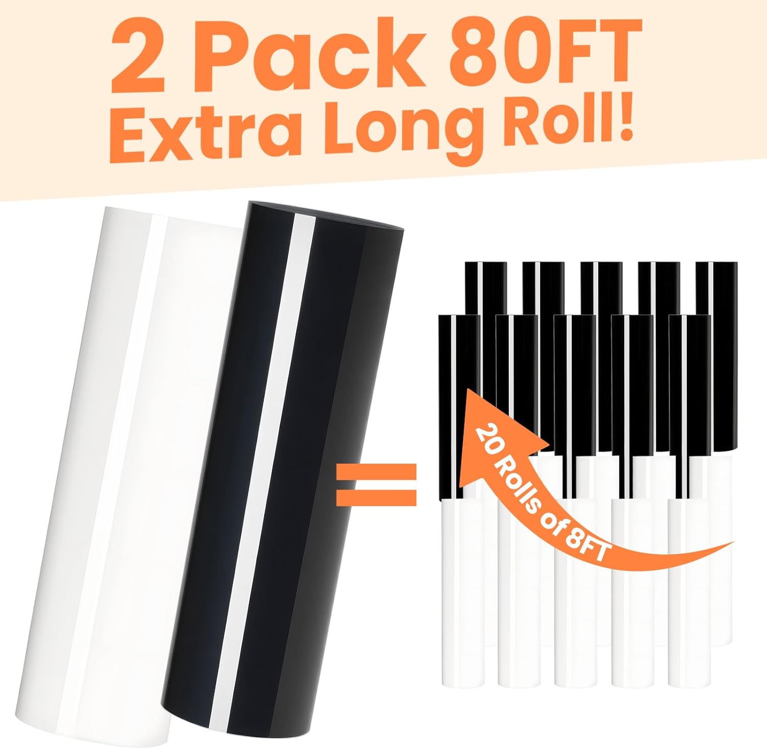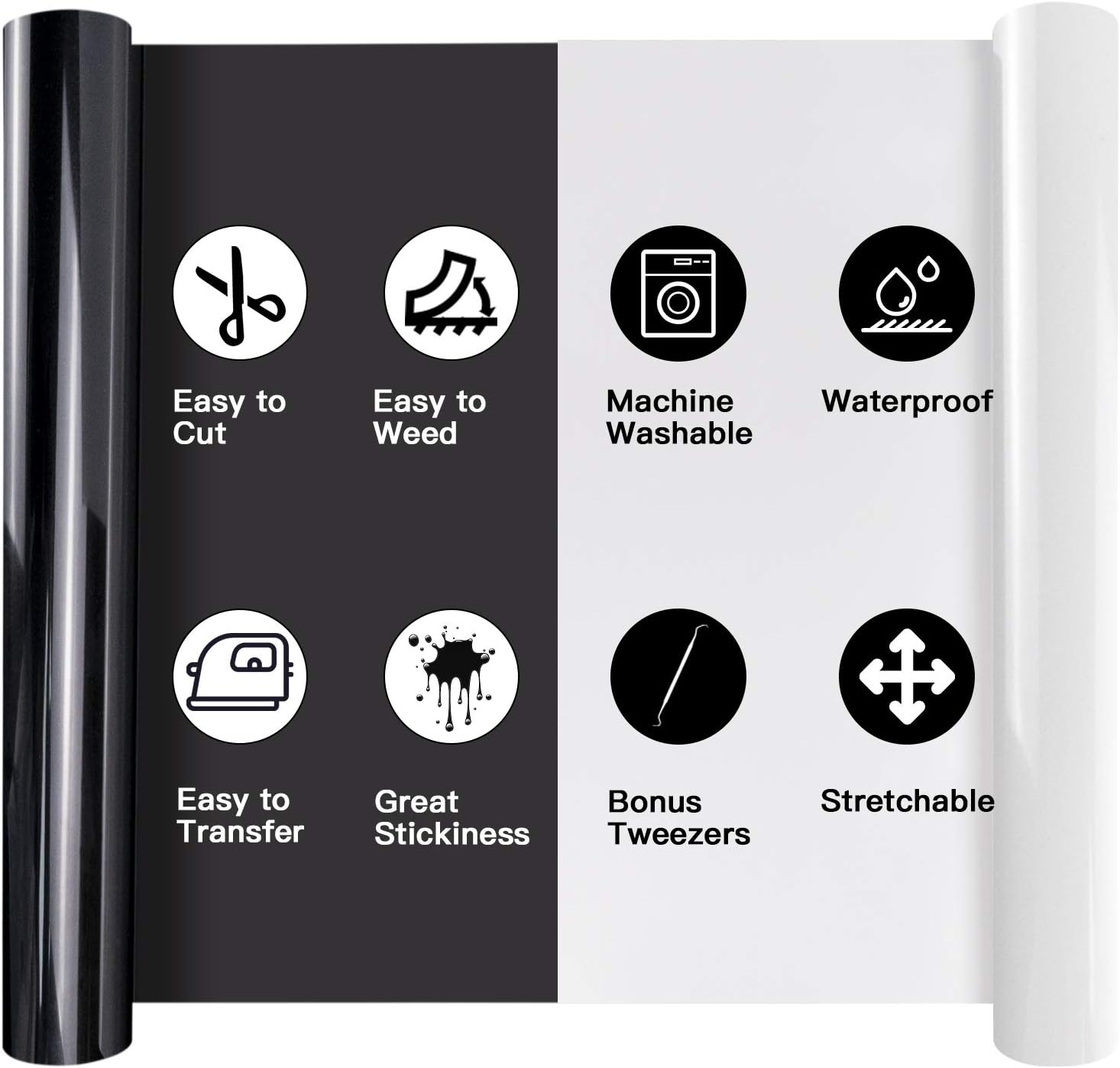 HTVRONT Heat Transfer Vinyl Rolls - 2 Pack 12" x 80ft Black and White HTV for T Shirts, Iron on Vinyl Compatible with Cricut Cutting Machine (White and Black)