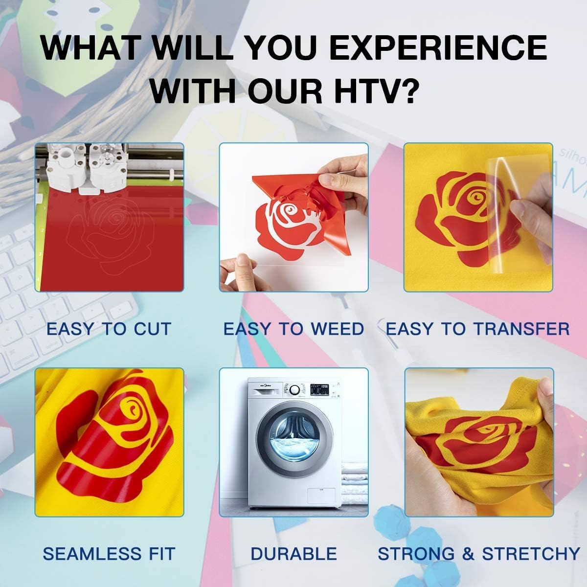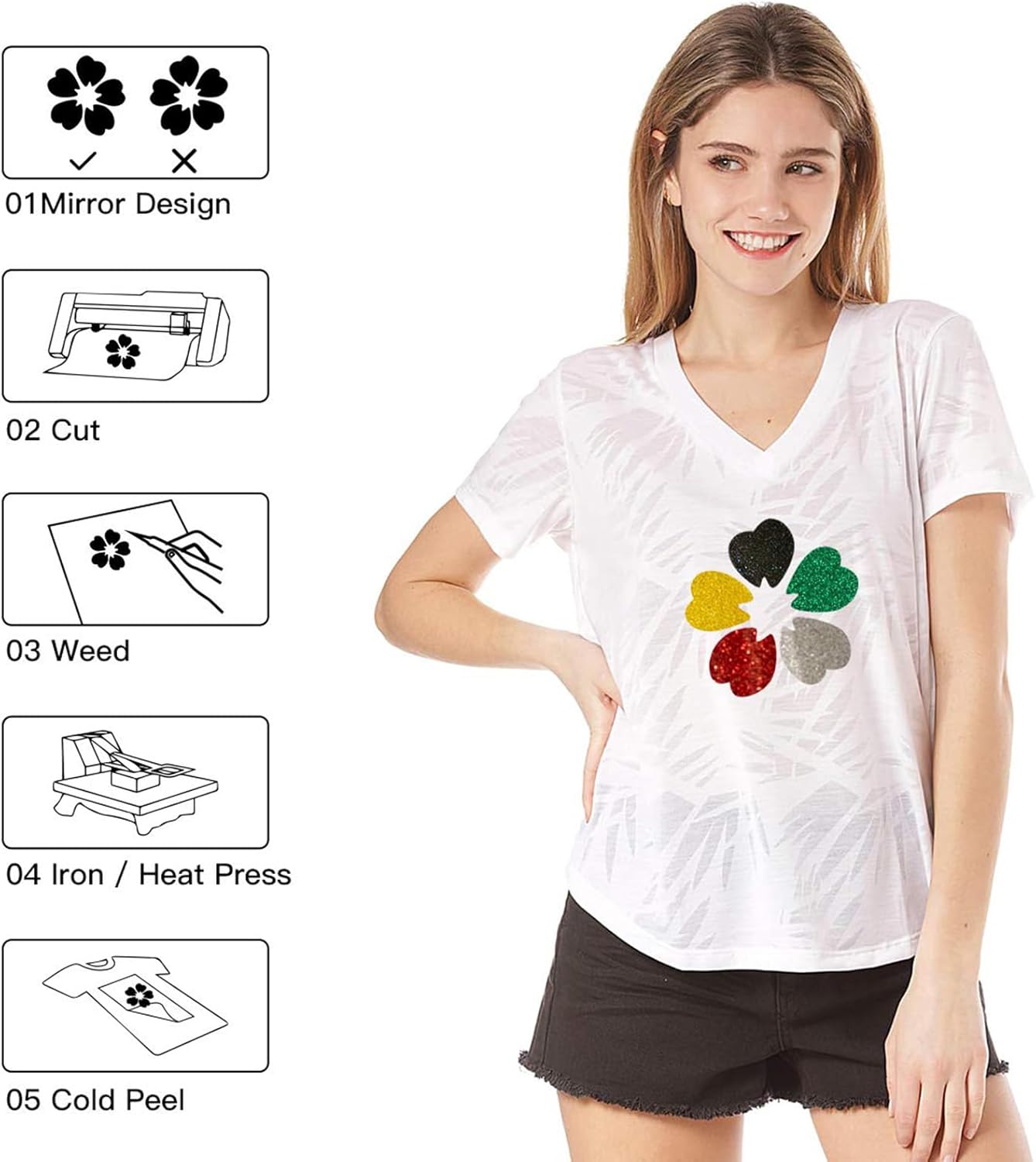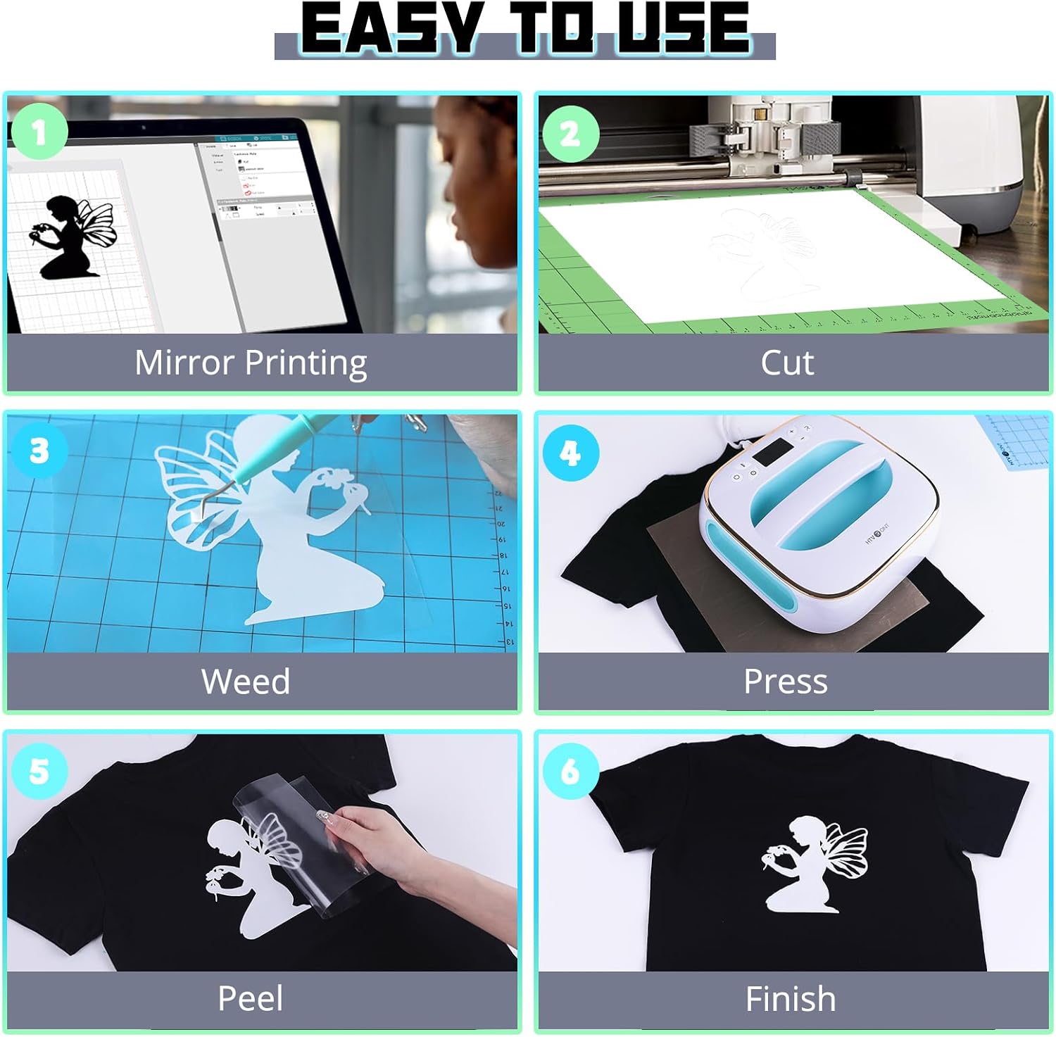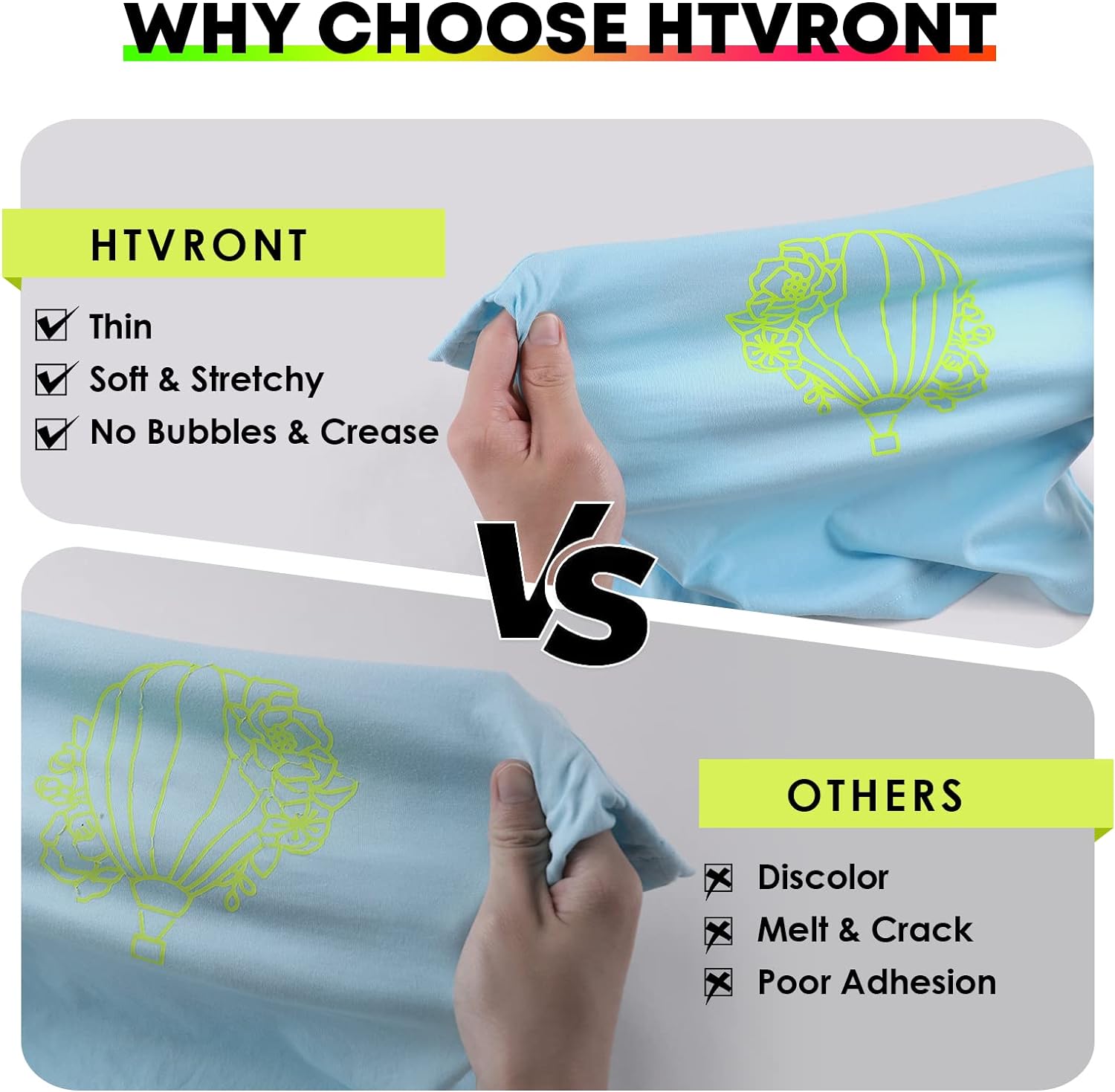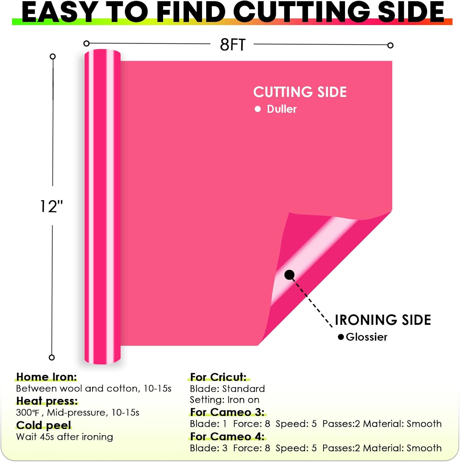 HTVRONT Heat Transfer Vinyl Rolls - 2 Pack 12" x 80ft Black and White HTV for T Shirts, Iron on Vinyl Compatible with Cricut Cutting Machine (White and Black)