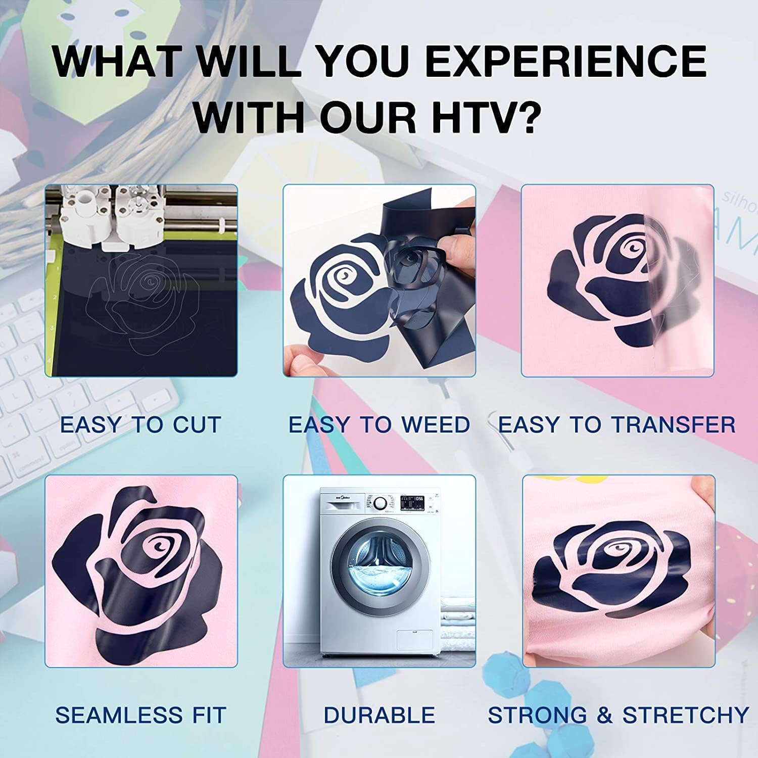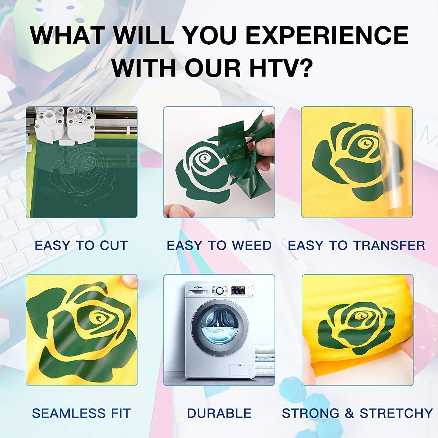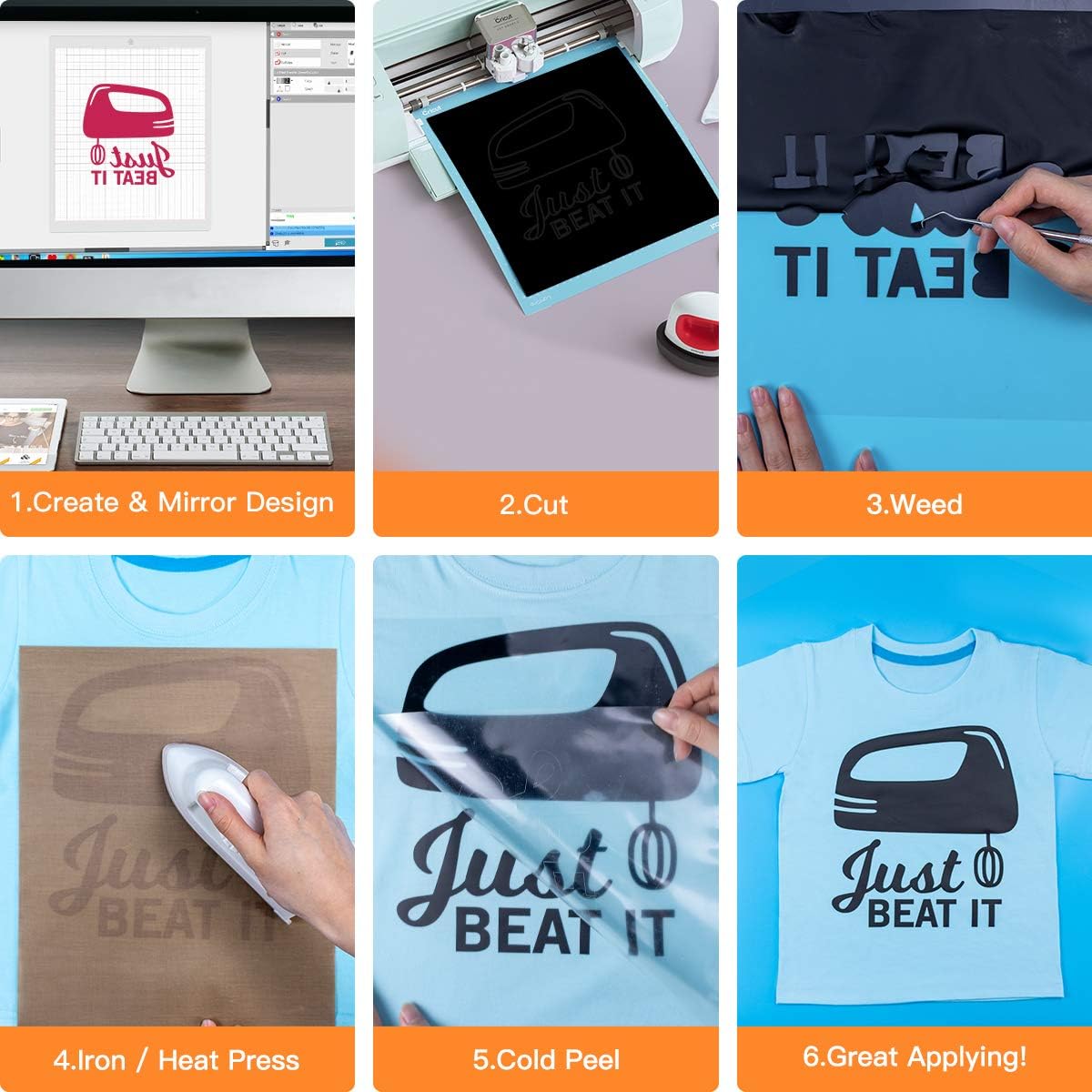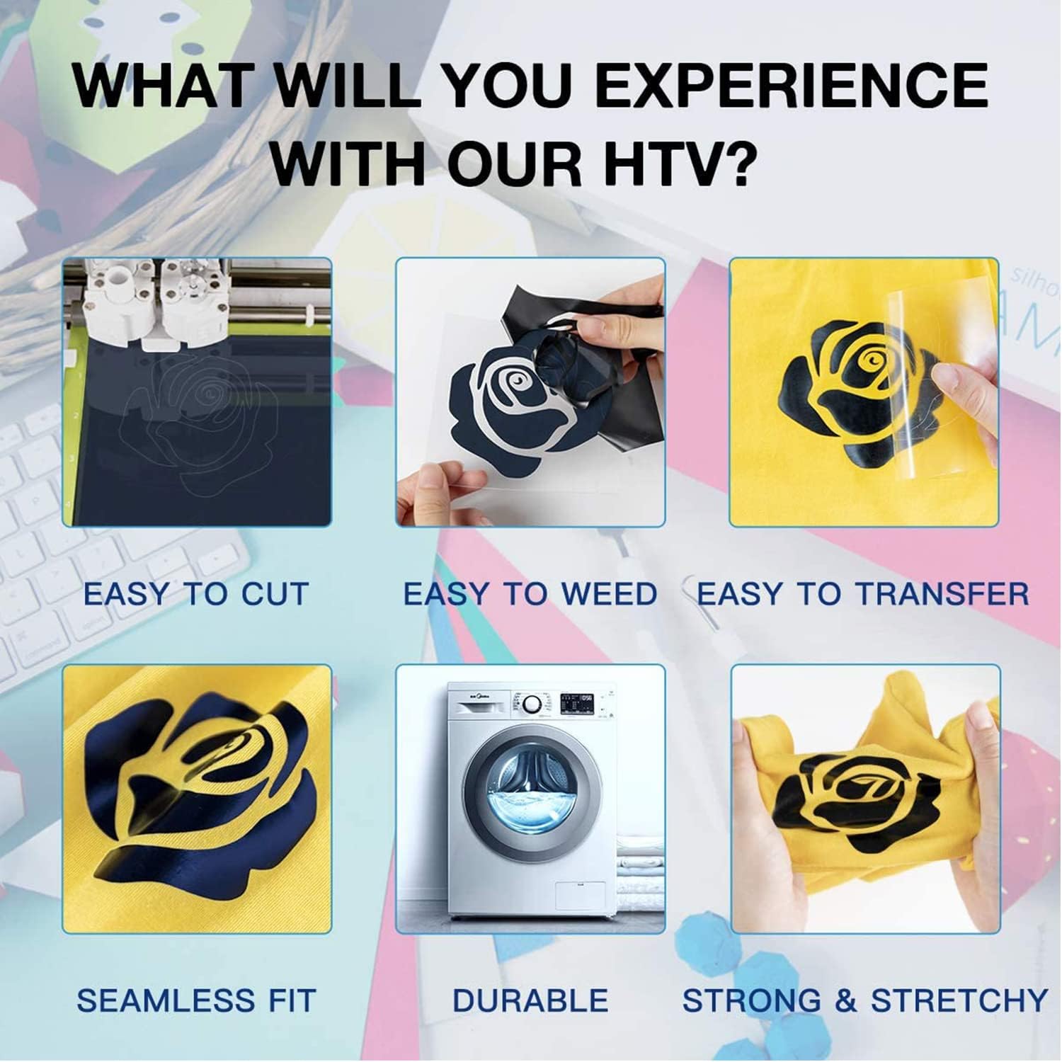 HTVRONT Heat Transfer Vinyl Rolls - 2 Pack 12" x 80ft Black and White HTV for T Shirts, Iron on Vinyl Compatible with Cricut Cutting Machine (White and Black)