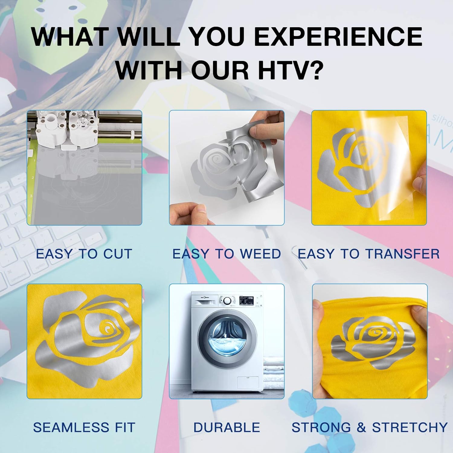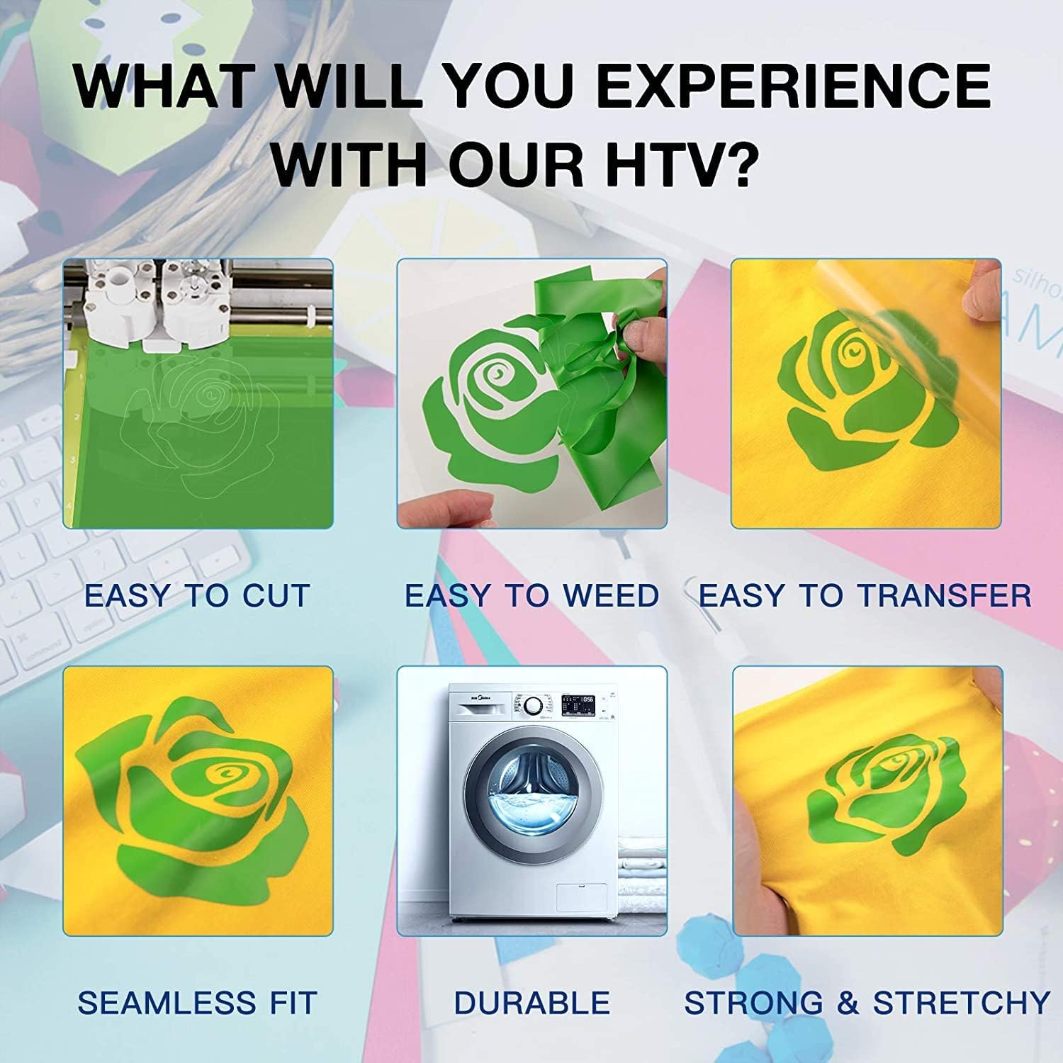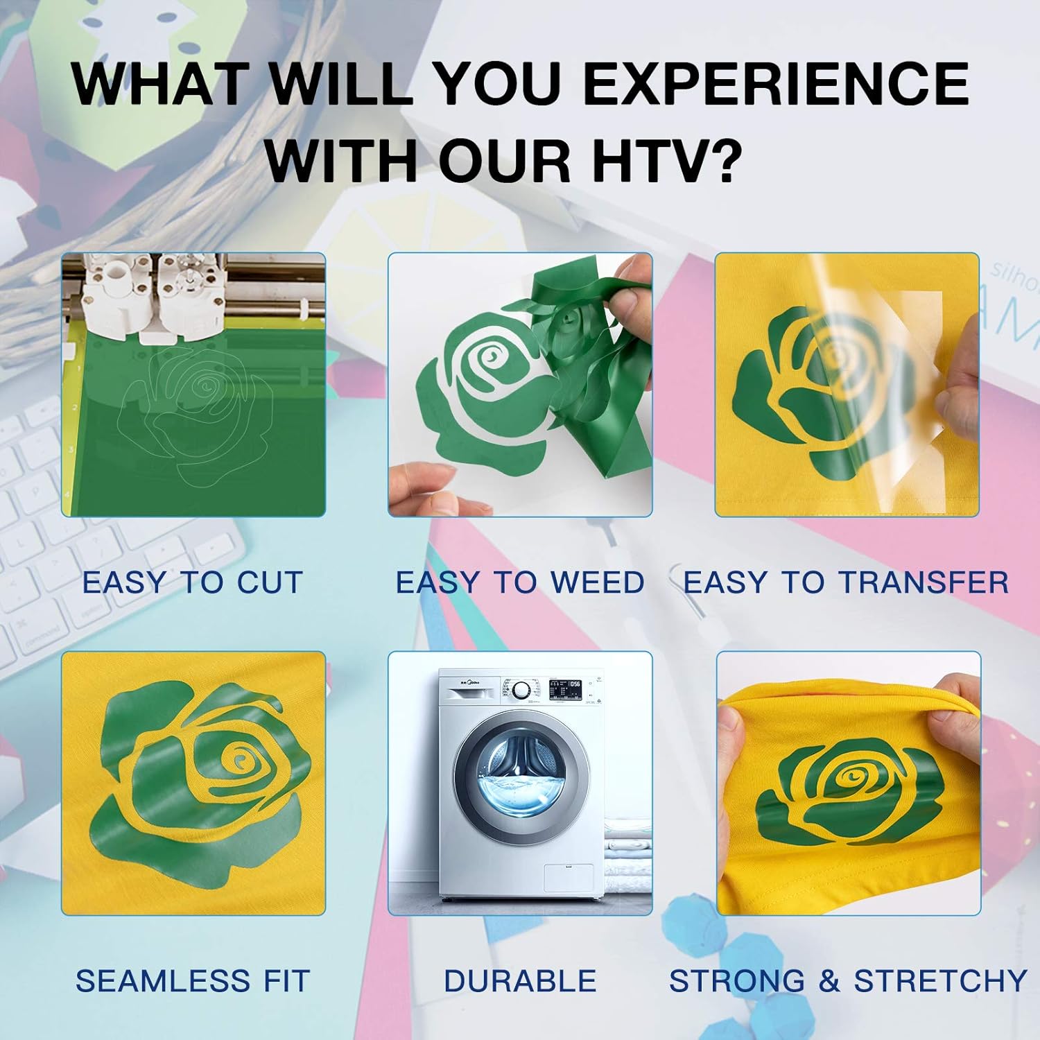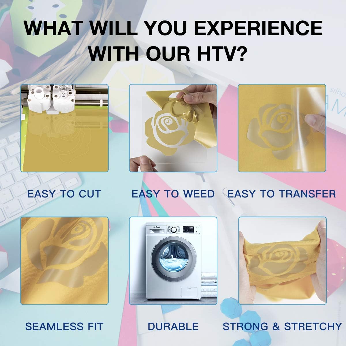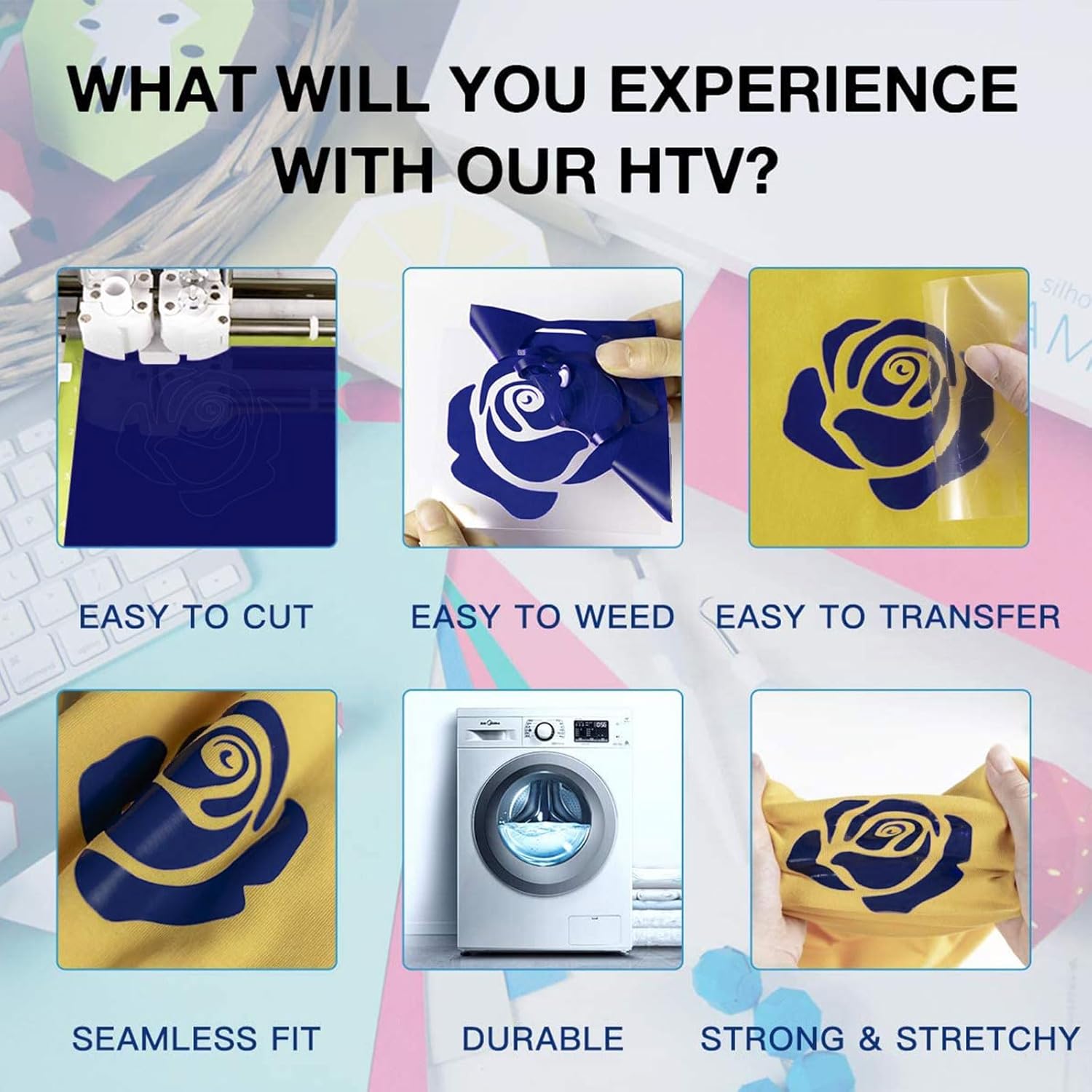 HTVRONT Heat Transfer Vinyl Rolls - 2 Pack 12" x 80ft Black and White HTV for T Shirts, Iron on Vinyl Compatible with Cricut Cutting Machine (White and Black)