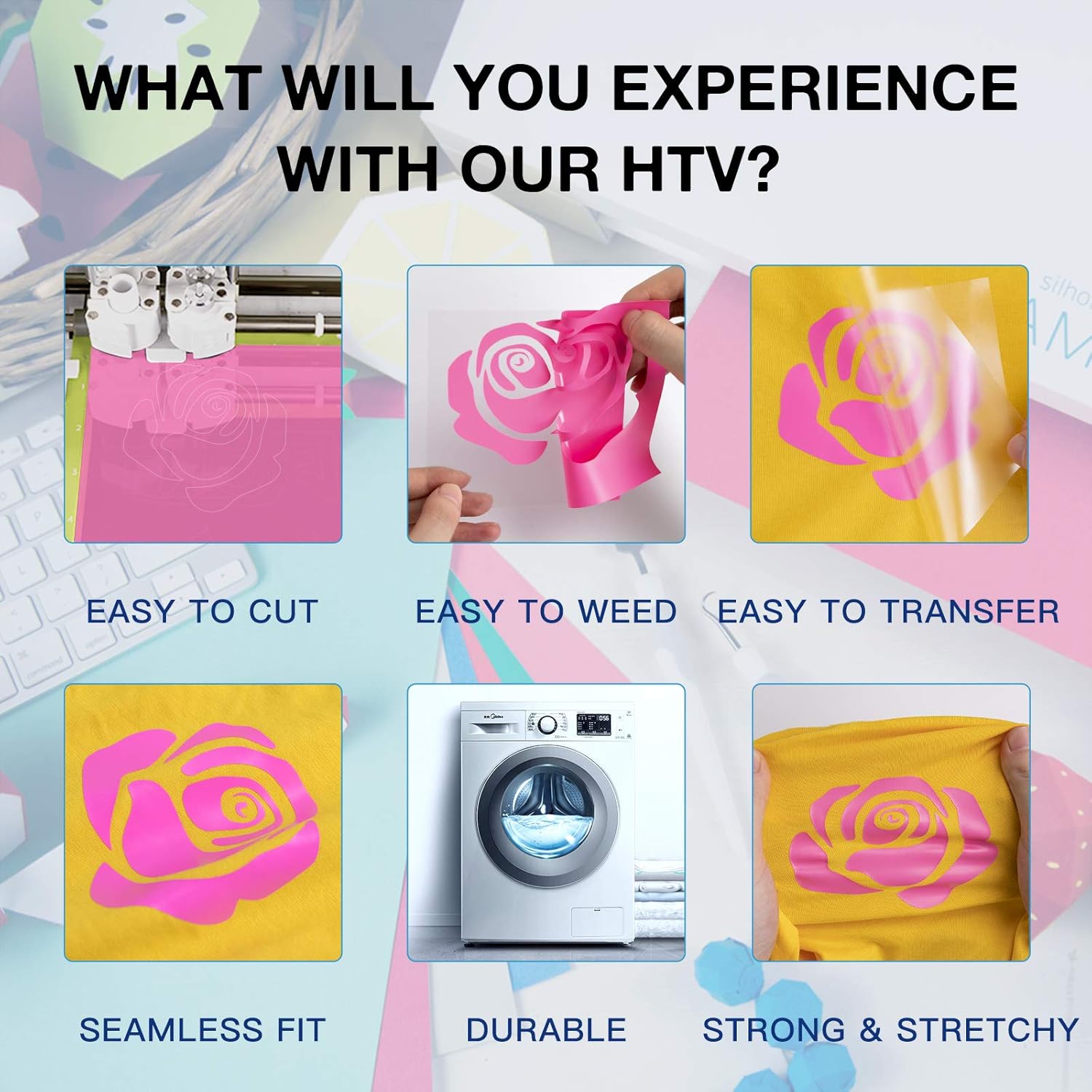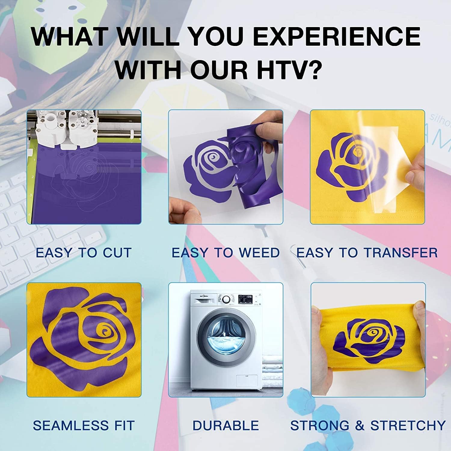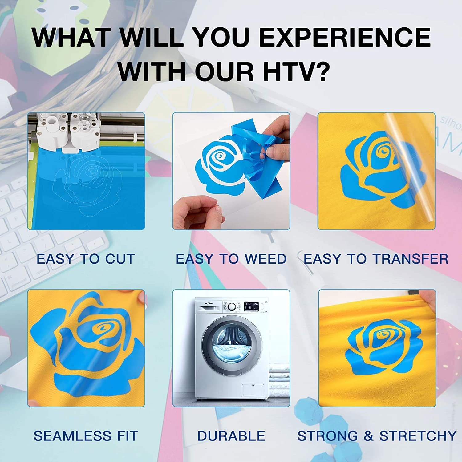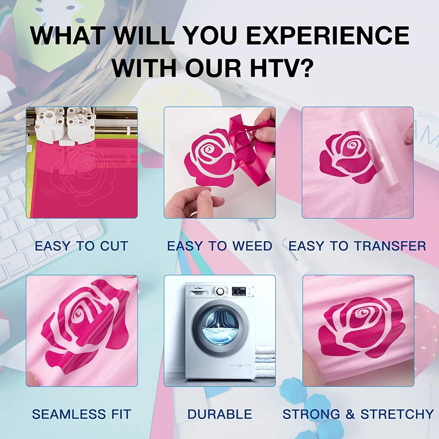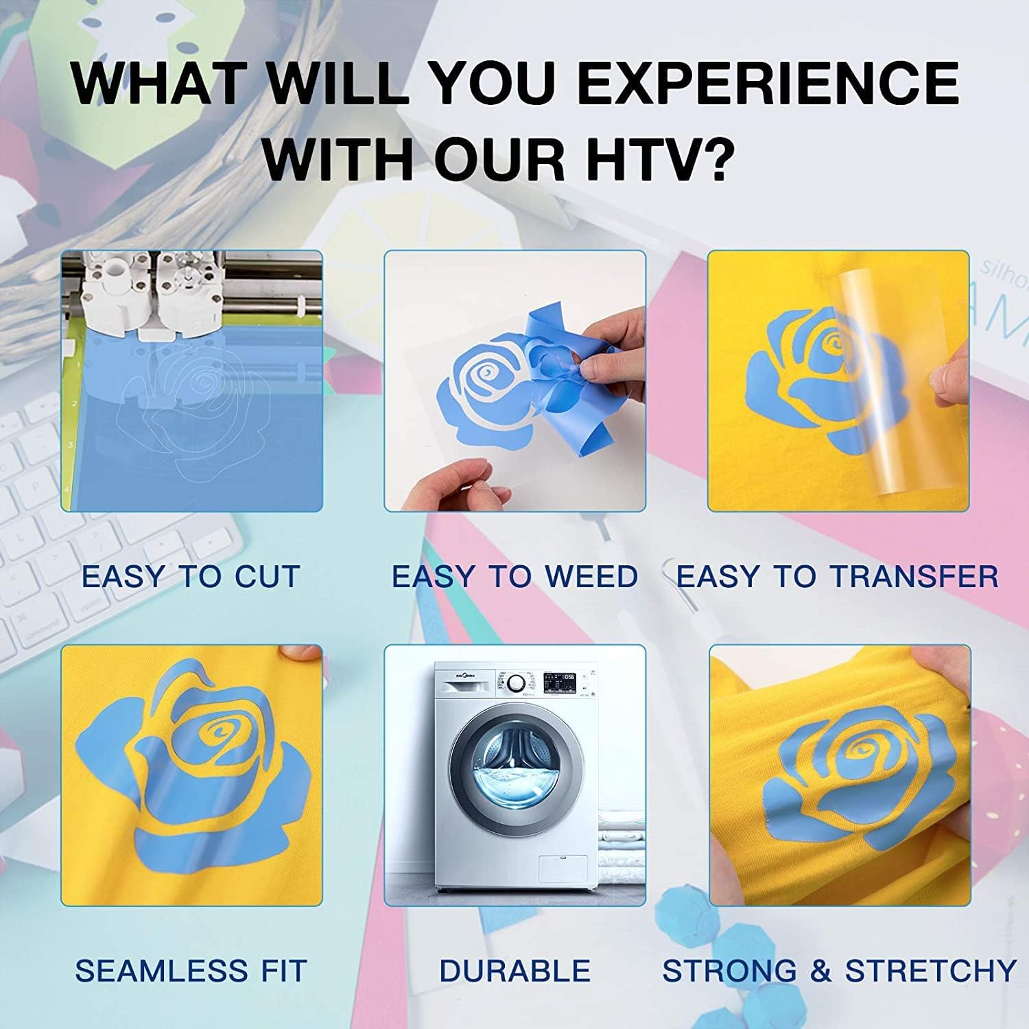 HTVRONT Heat Transfer Vinyl Rolls - 2 Pack 12" x 80ft Black and White HTV for T Shirts, Iron on Vinyl Compatible with Cricut Cutting Machine (White and Black)