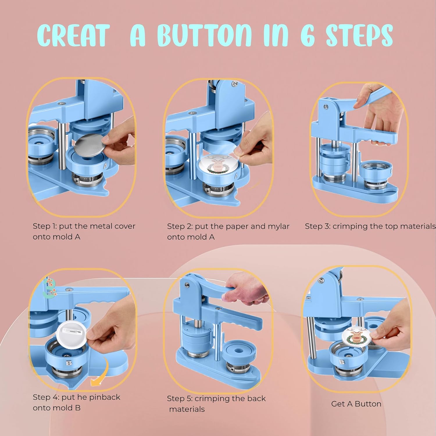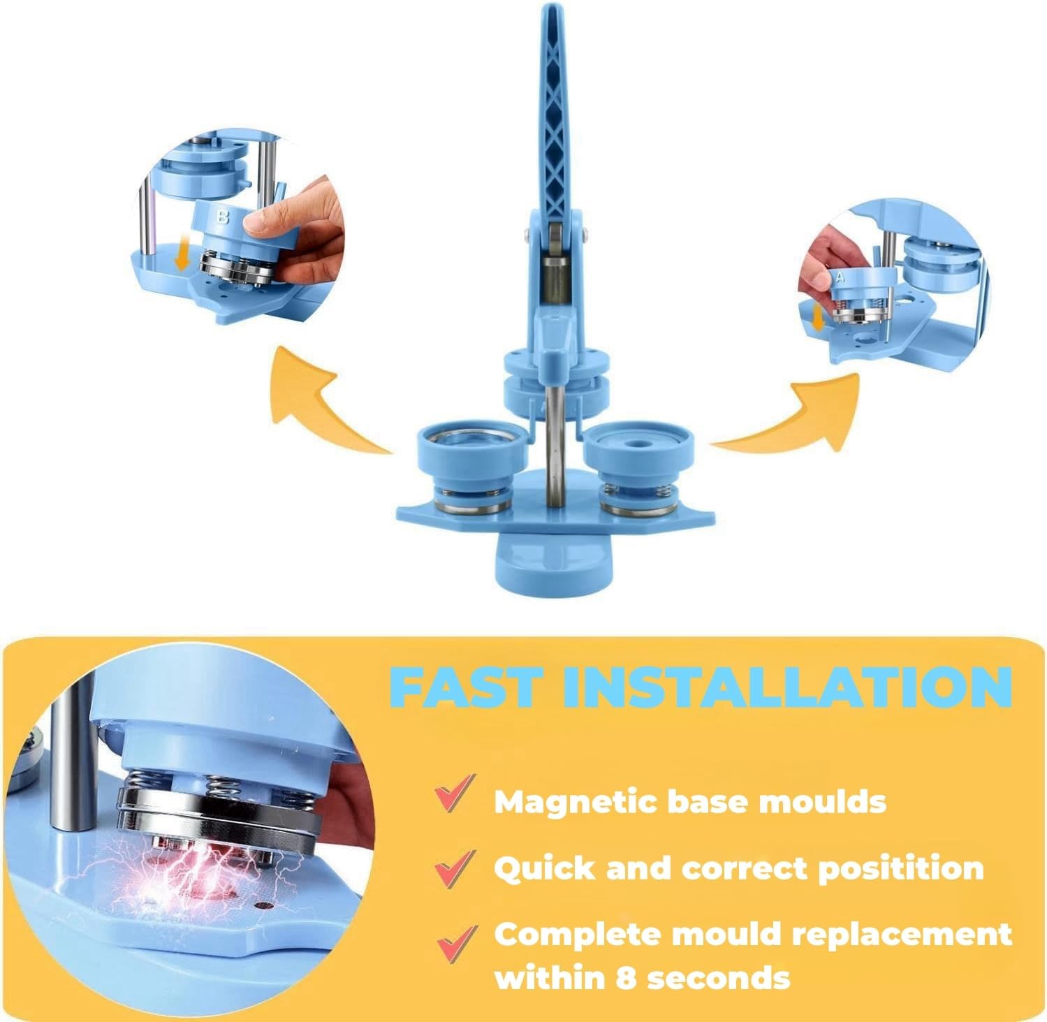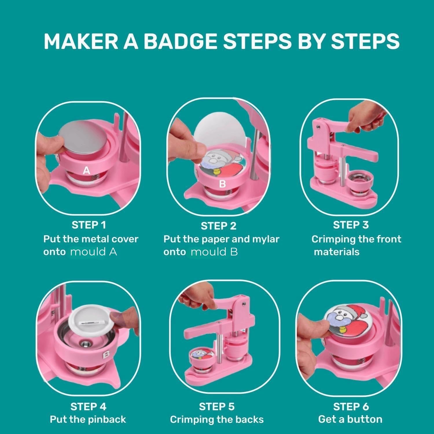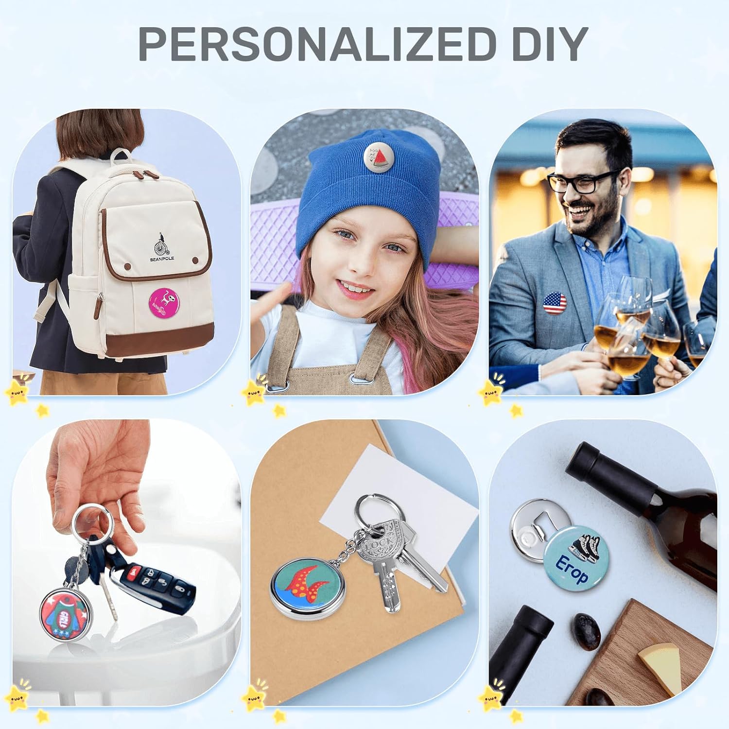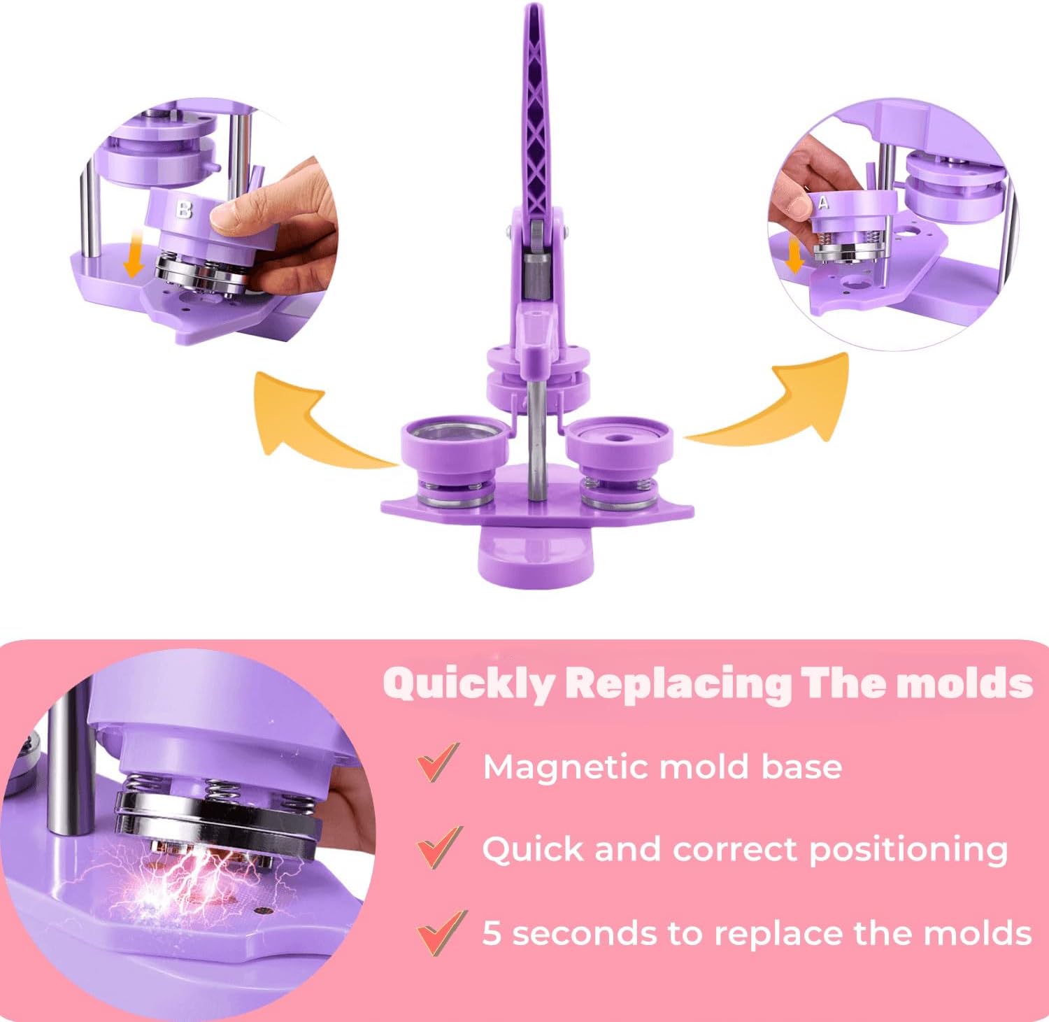 Button Maker Machine Multiple Sizes, 25mm+32mm+58mm Pin Maker Button Press Machine W/300 Pinback Making Supplies, 10 Keychain 10 Bottle Opener Badges