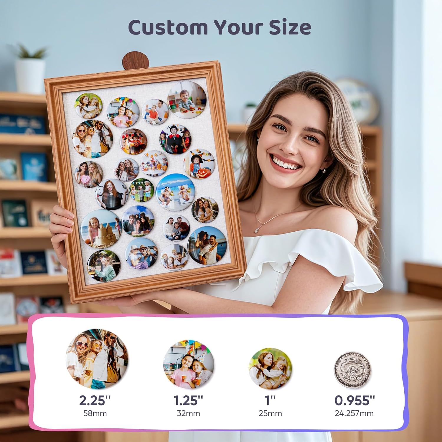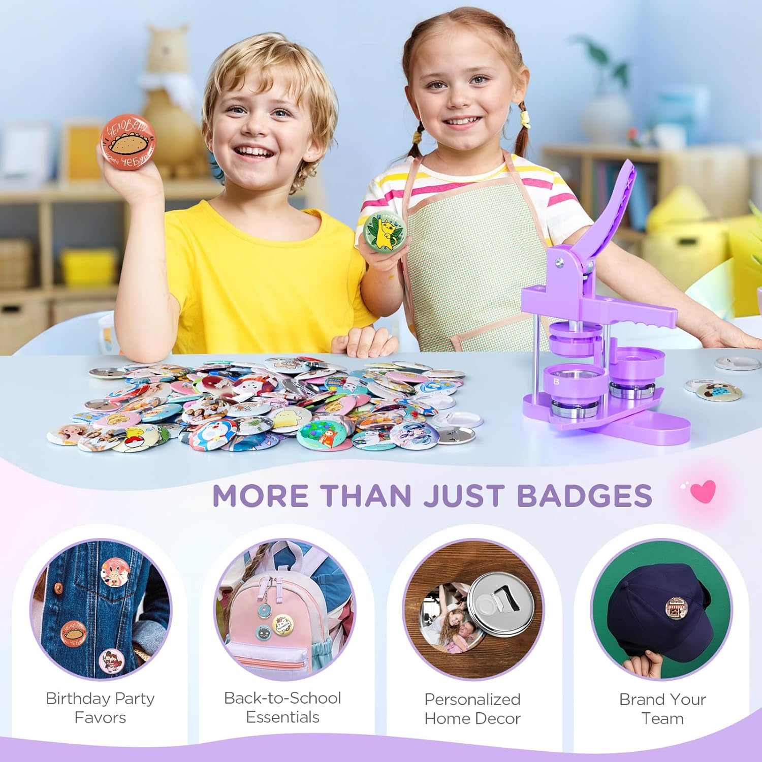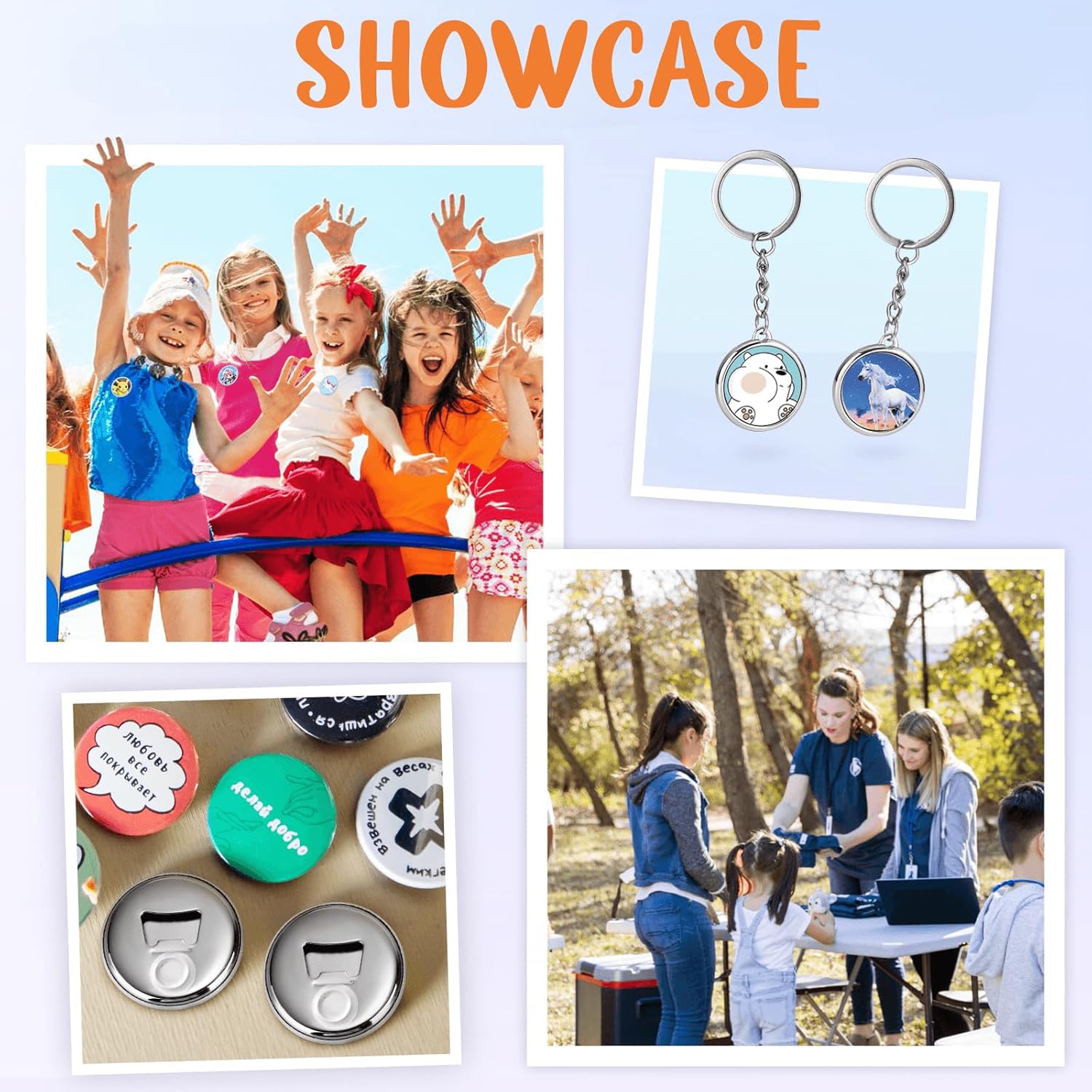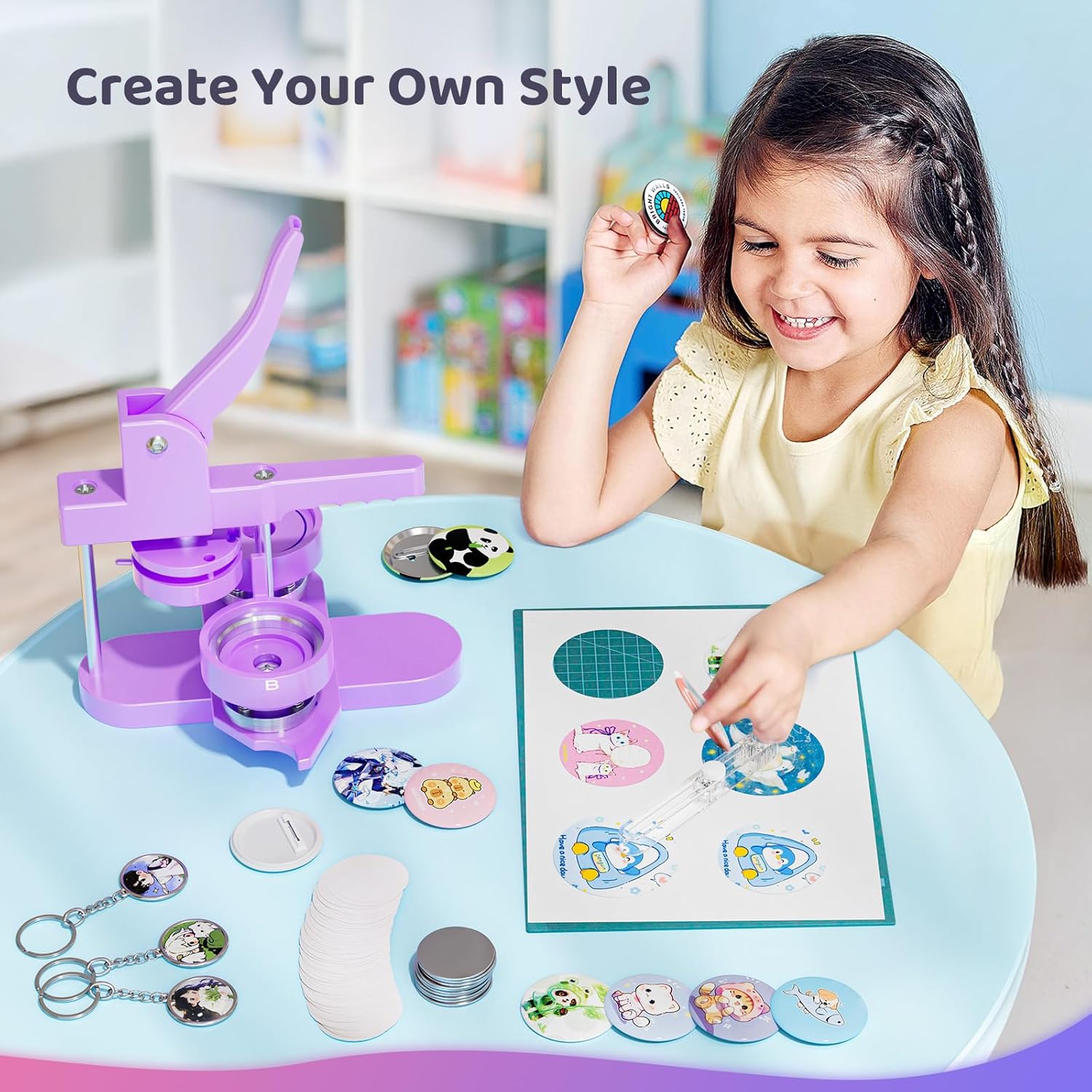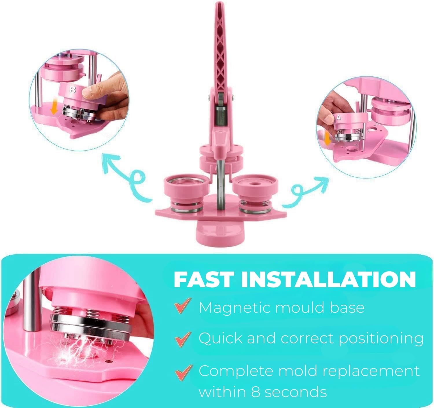 Button Maker Machine Multiple Sizes, 25mm+32mm+58mm Pin Maker Button Press Machine W/300 Pinback Making Supplies, 10 Keychain 10 Bottle Opener Badges