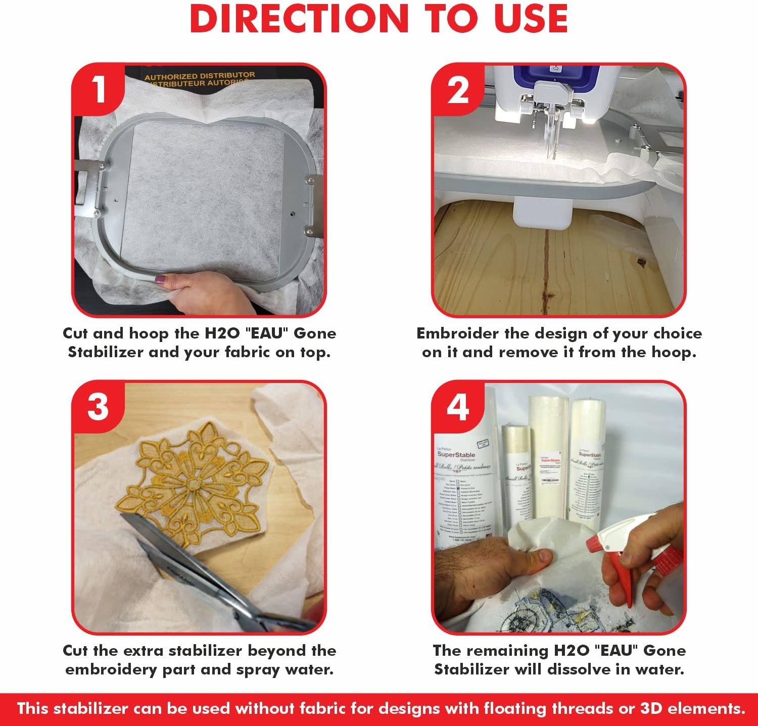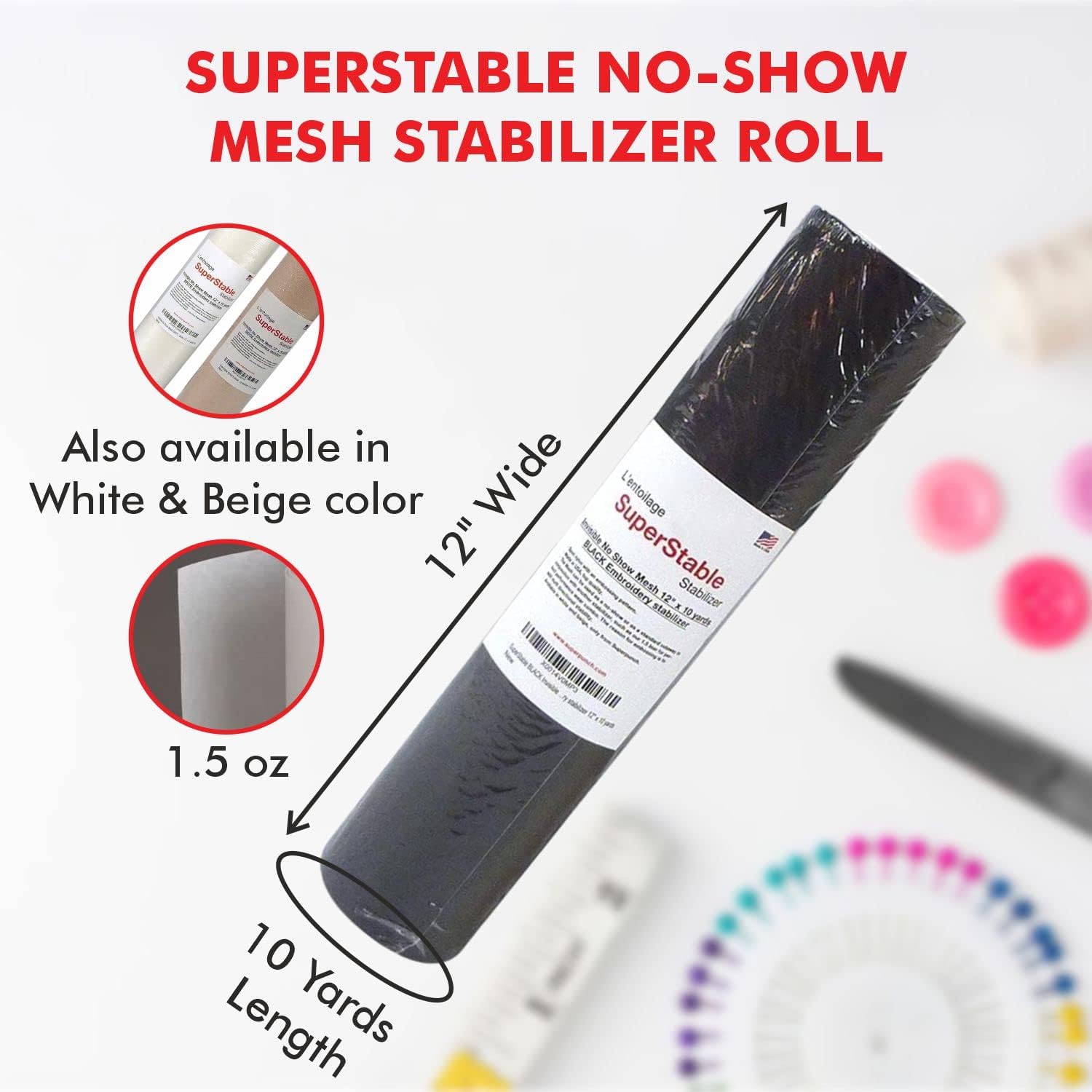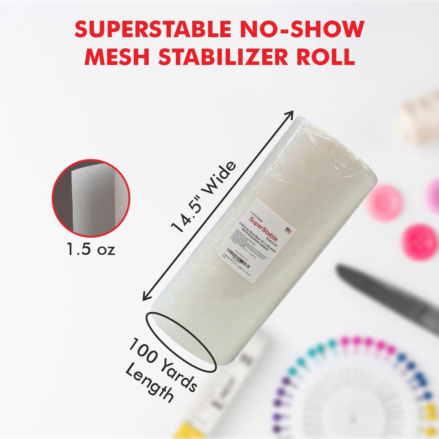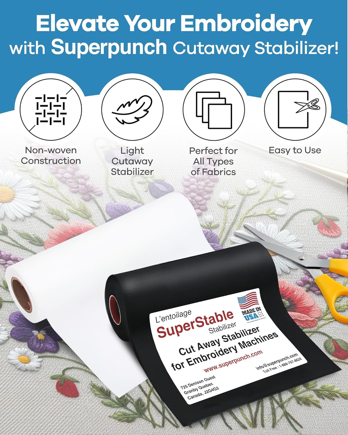 Superpunch Wash Away Stabilizer, SuperStable H2O "Eau" Gone White FSL 15 inch x 100 Yard Roll - Machine Embroidery Stabilizer Backing, Wash n Gone Wash Away for Free Standing Lace, Made in USA