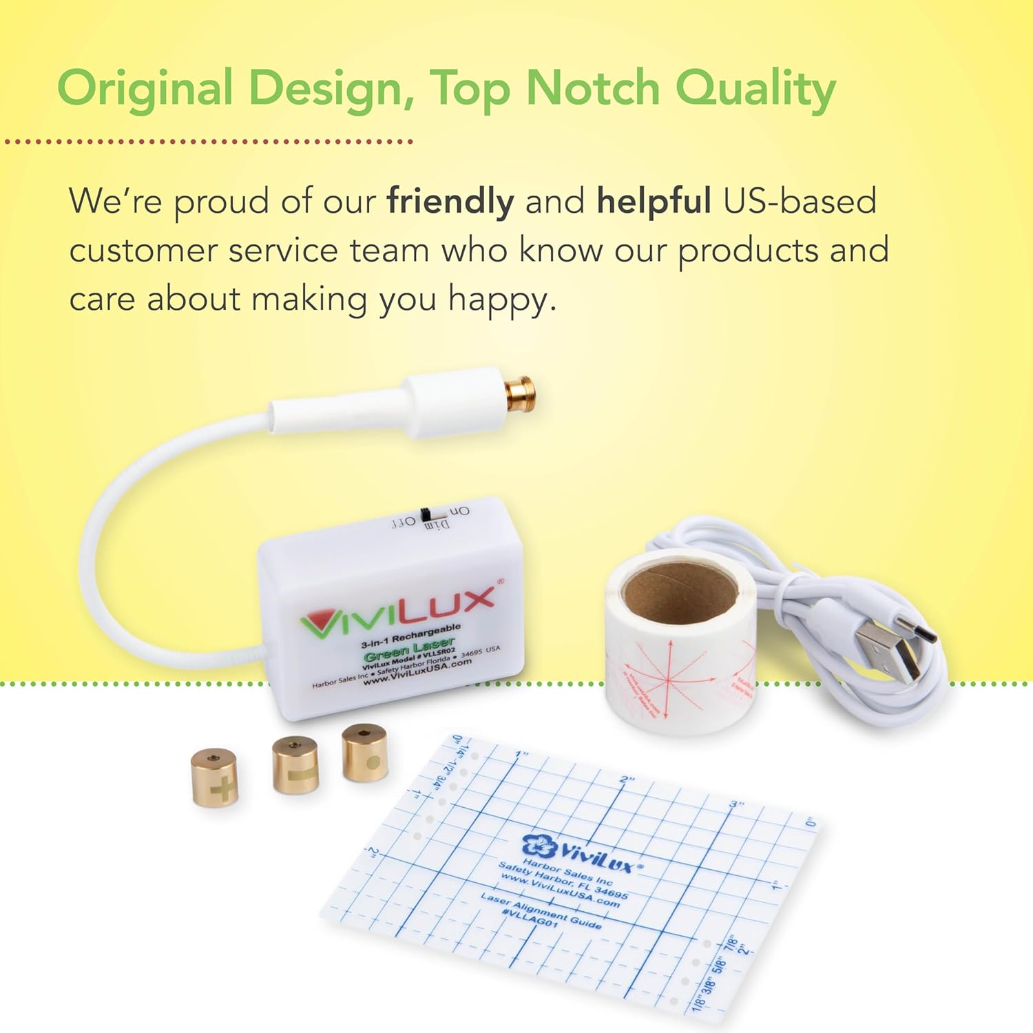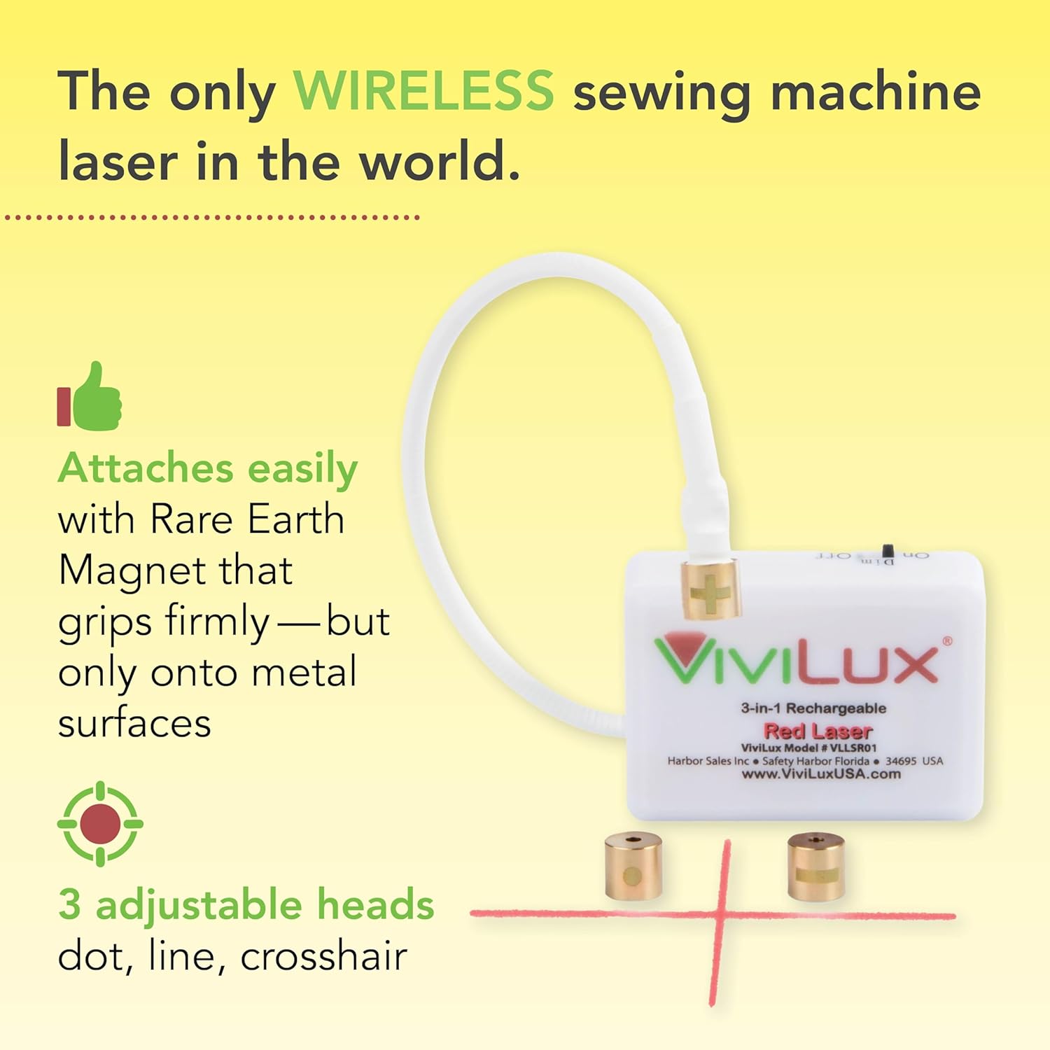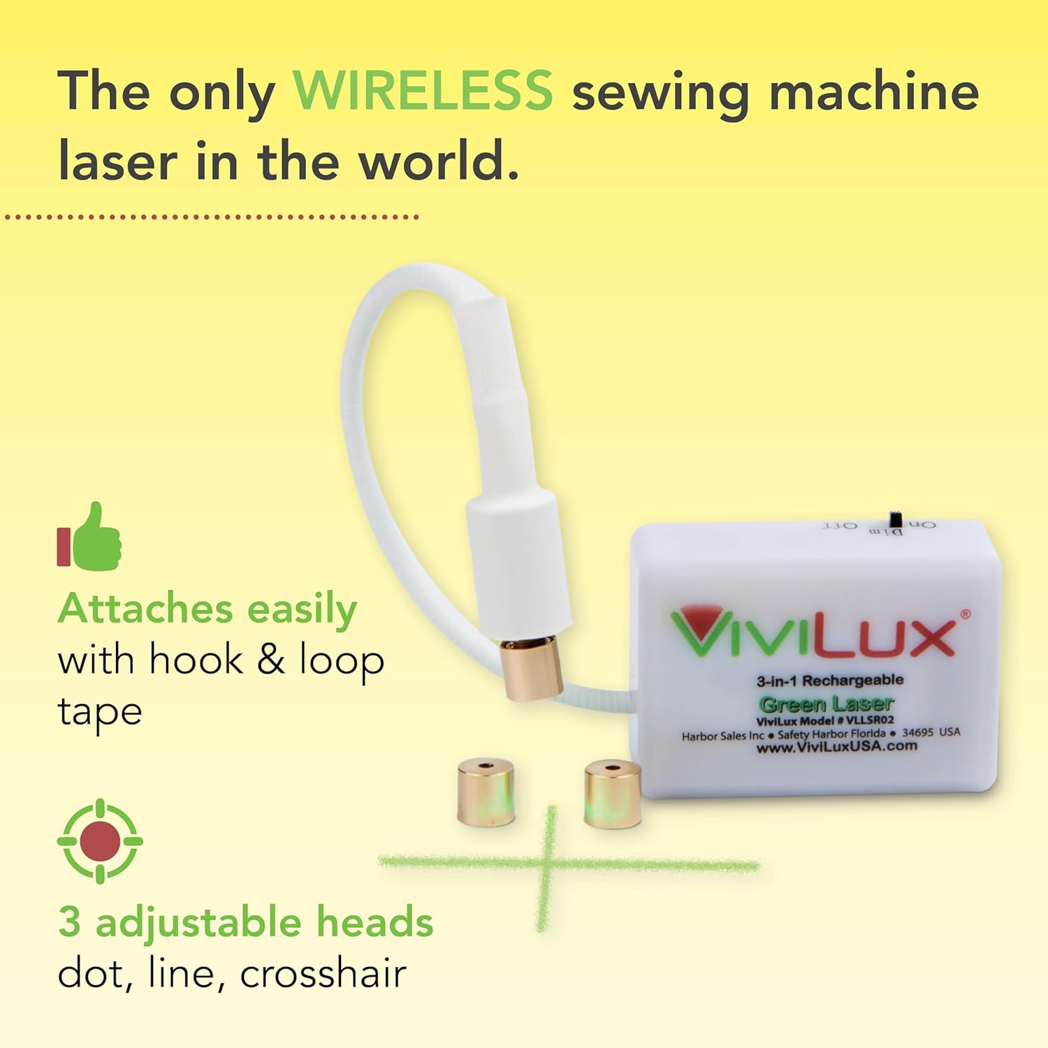 ViviLux 3-in-1 Rechargeable Green Laser System for Sewing & Quilting – Adjustable Line, Crosshair, and Dot Laser Heads, Secure Magnetic Mount – for Attachment to Metal Surfaces Only