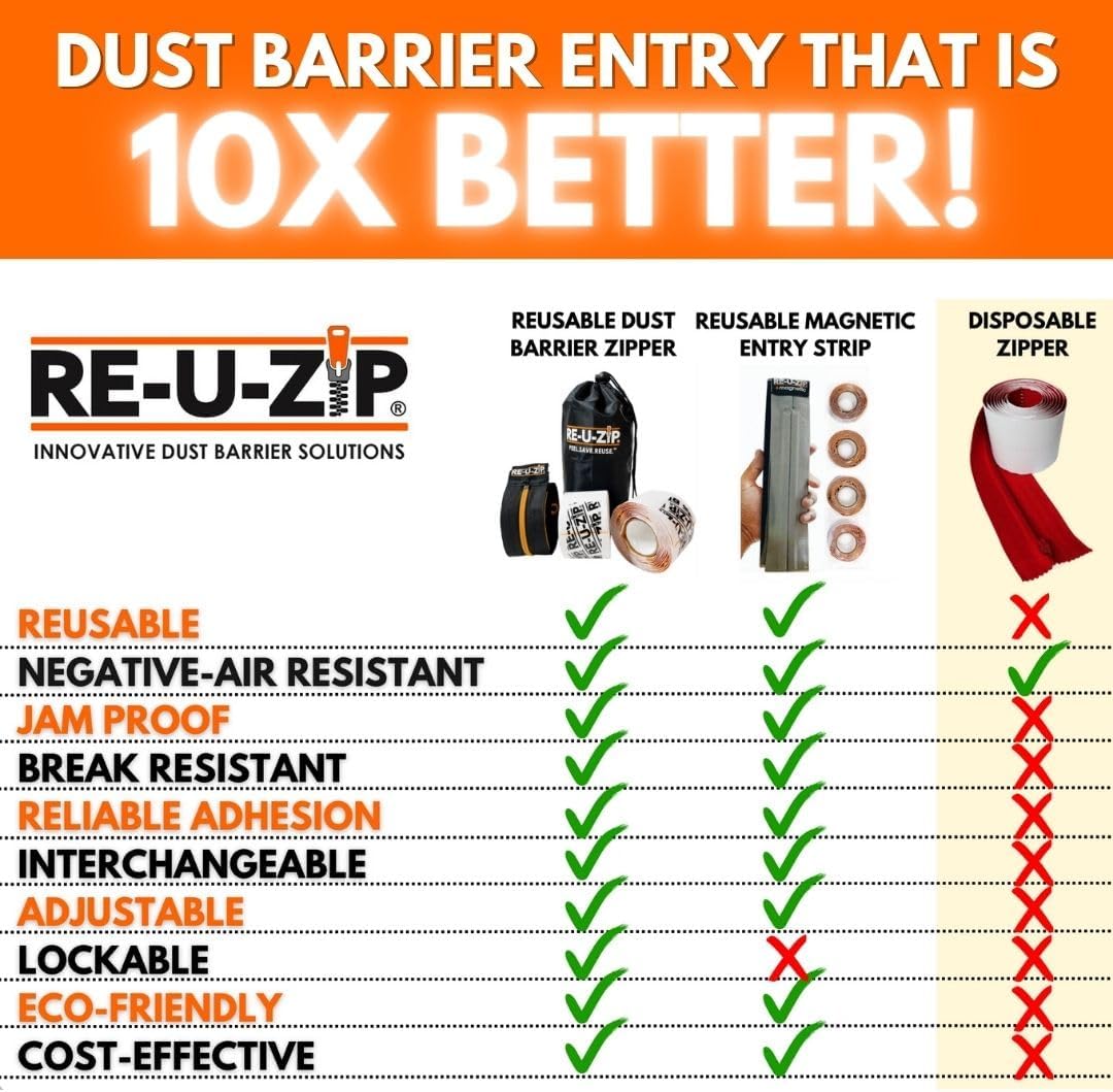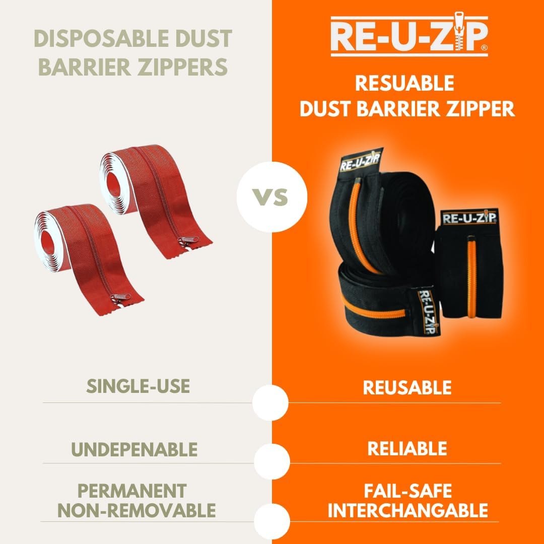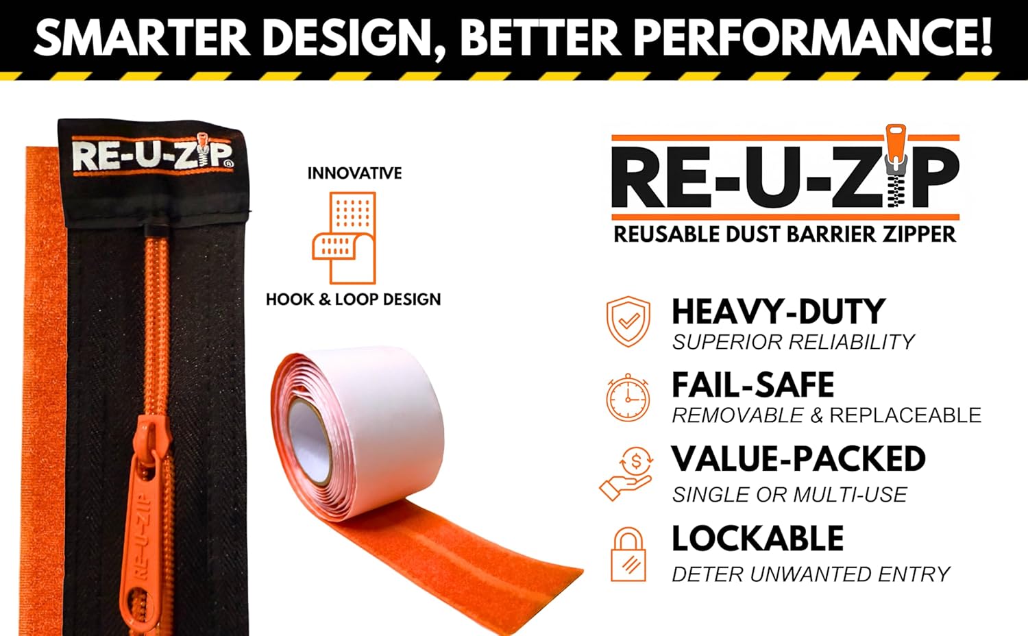 RE-U-ZIP® Heavy-Duty Reusable Dust Barrier Zipper | Pro Bundle | Patented Hook & Loop System | Cost-Effective & Reliable | Lockable Safety Feature