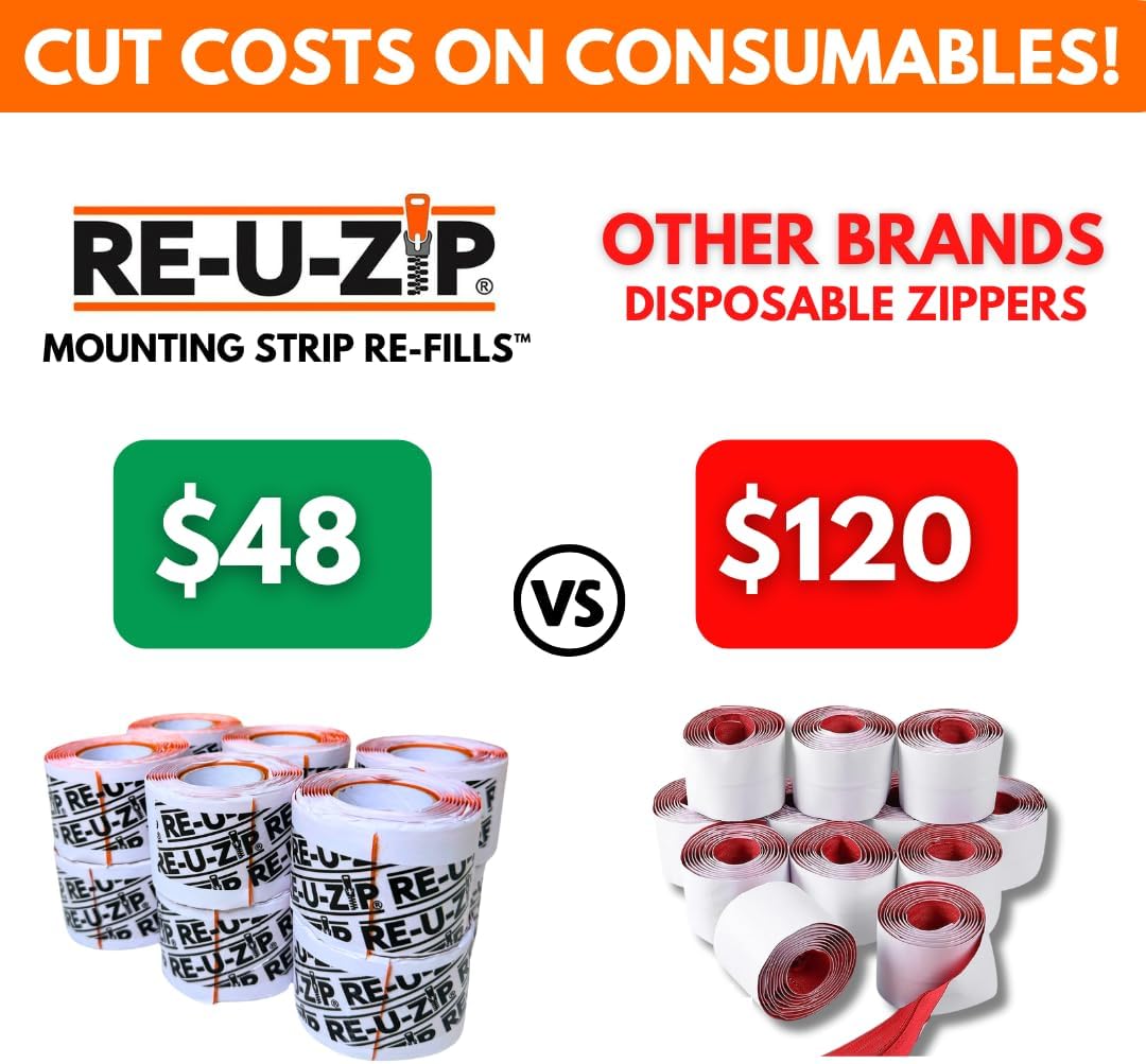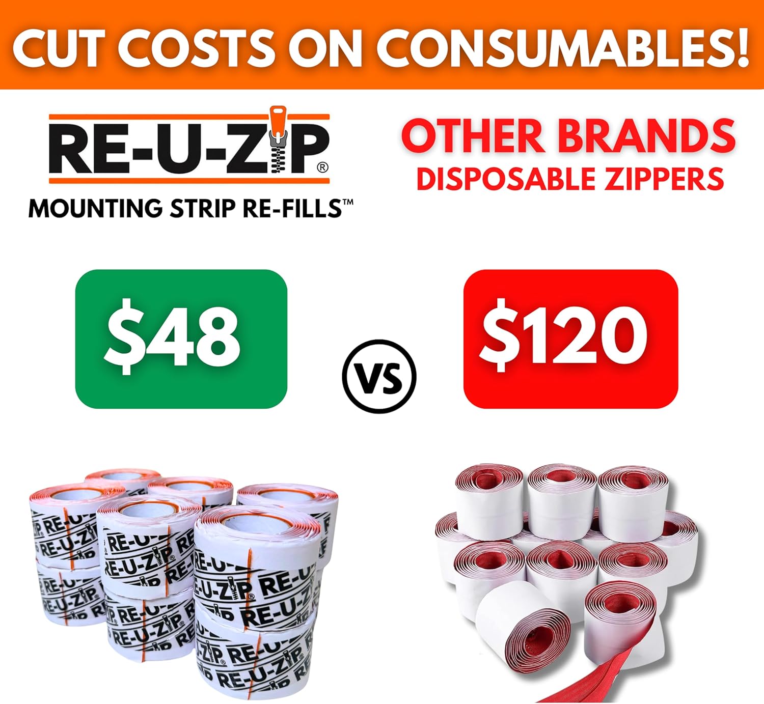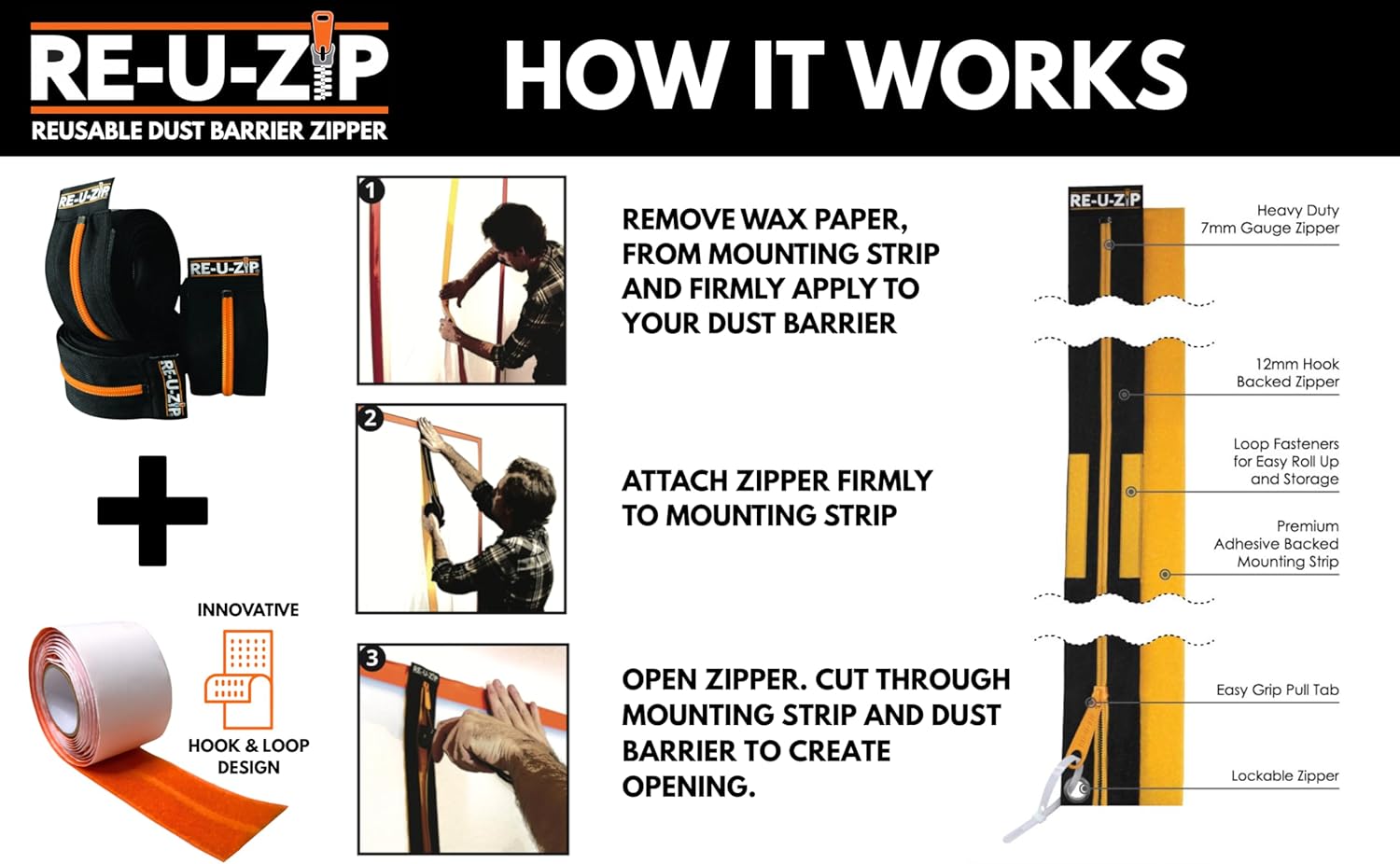RE-U-ZIP® Heavy-Duty Reusable Dust Barrier Zipper | Pro Bundle | Patented Hook & Loop System | Cost-Effective & Reliable | Lockable Safety Feature