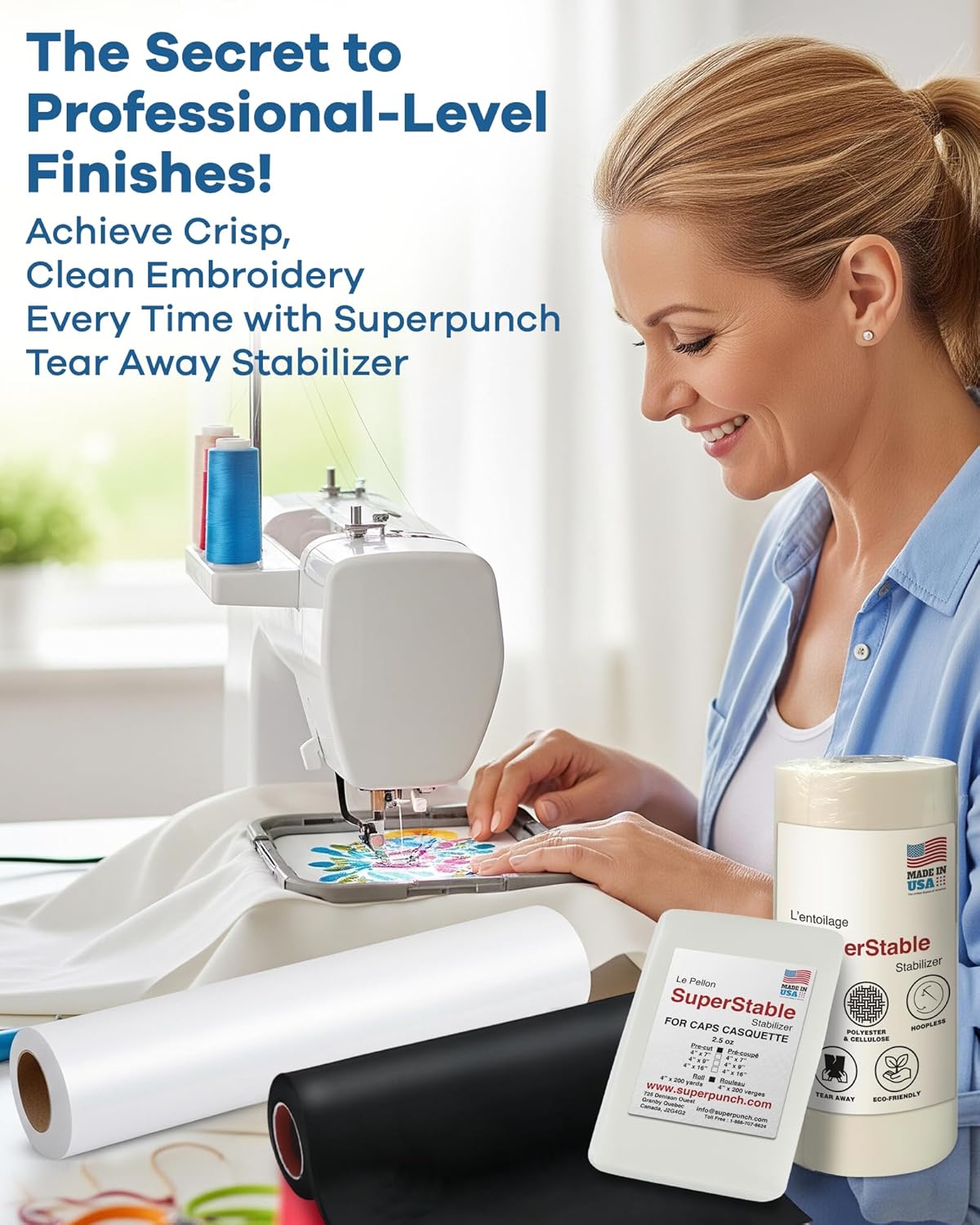 Superpunch White Adhesive Peel & Stick Tear Away Stabilizer - 20-inch x 25-Yard Roll, SuperStable Machine Embroidery Stabilizers Backing 2.0 oz for Hoop Less Embroidery, Made in USA