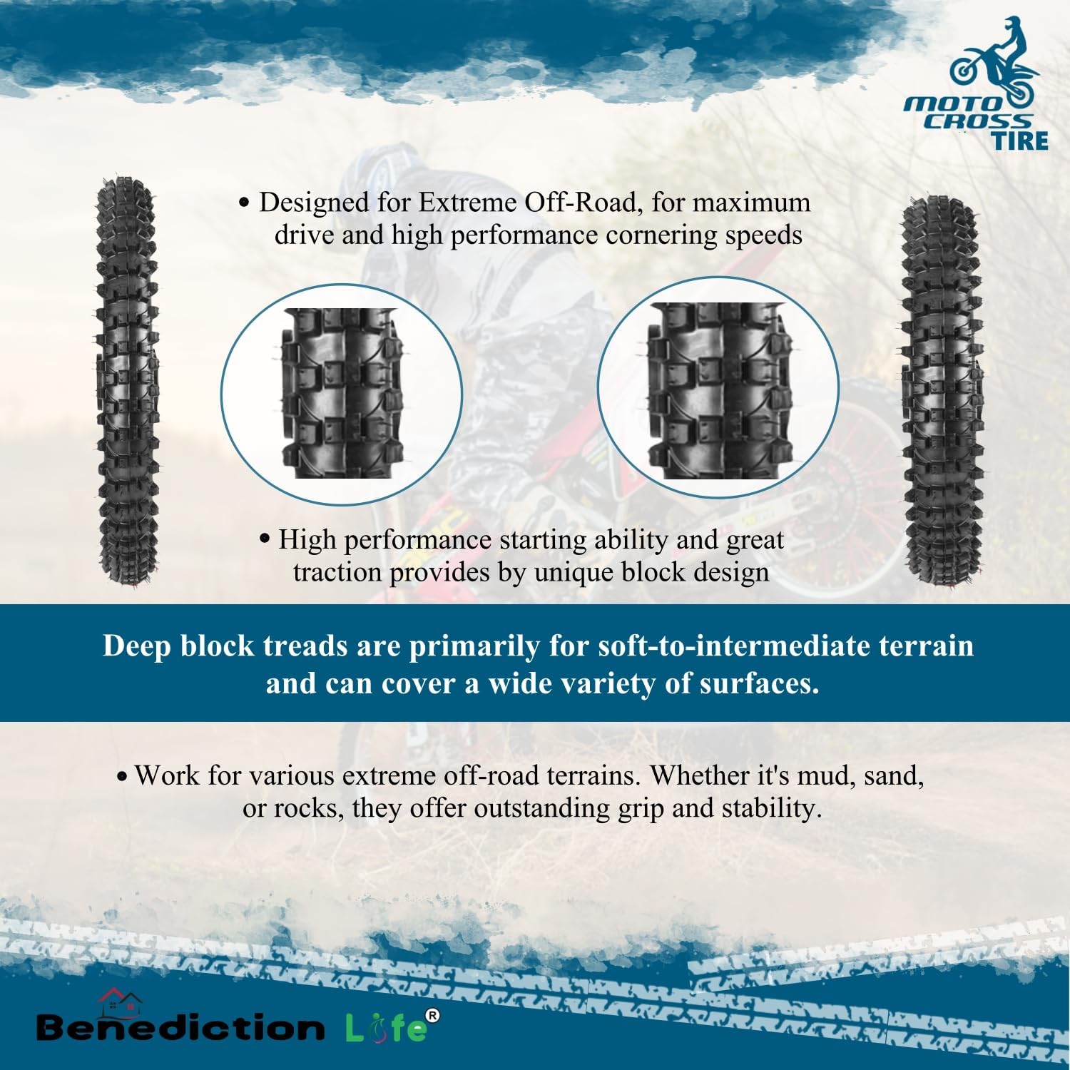 70/100-19" Front Tire and 90/100-16" Rear Tire with Tube Fit for 50cc-150cc Dirt Pit Bikes, Intermediate Terrain Motocross (US Stock)