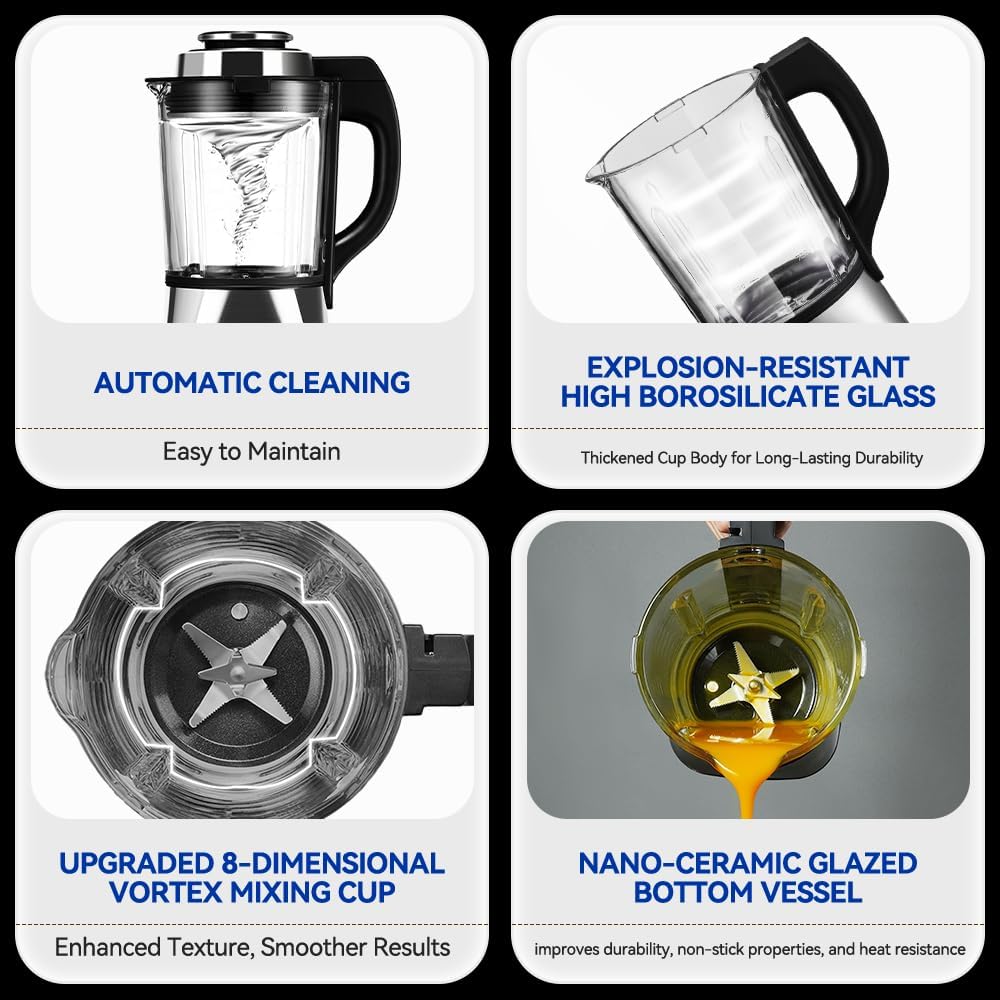 Glass Blenders for Kitchen 59oz, Stainless Steels Professional Blenders 1200W, Countertop Blender Glass Jar Food Processor Combo, 14 Preset Programs+9 Speeds, Soups, Nut Milk, Hot & Cold Blending