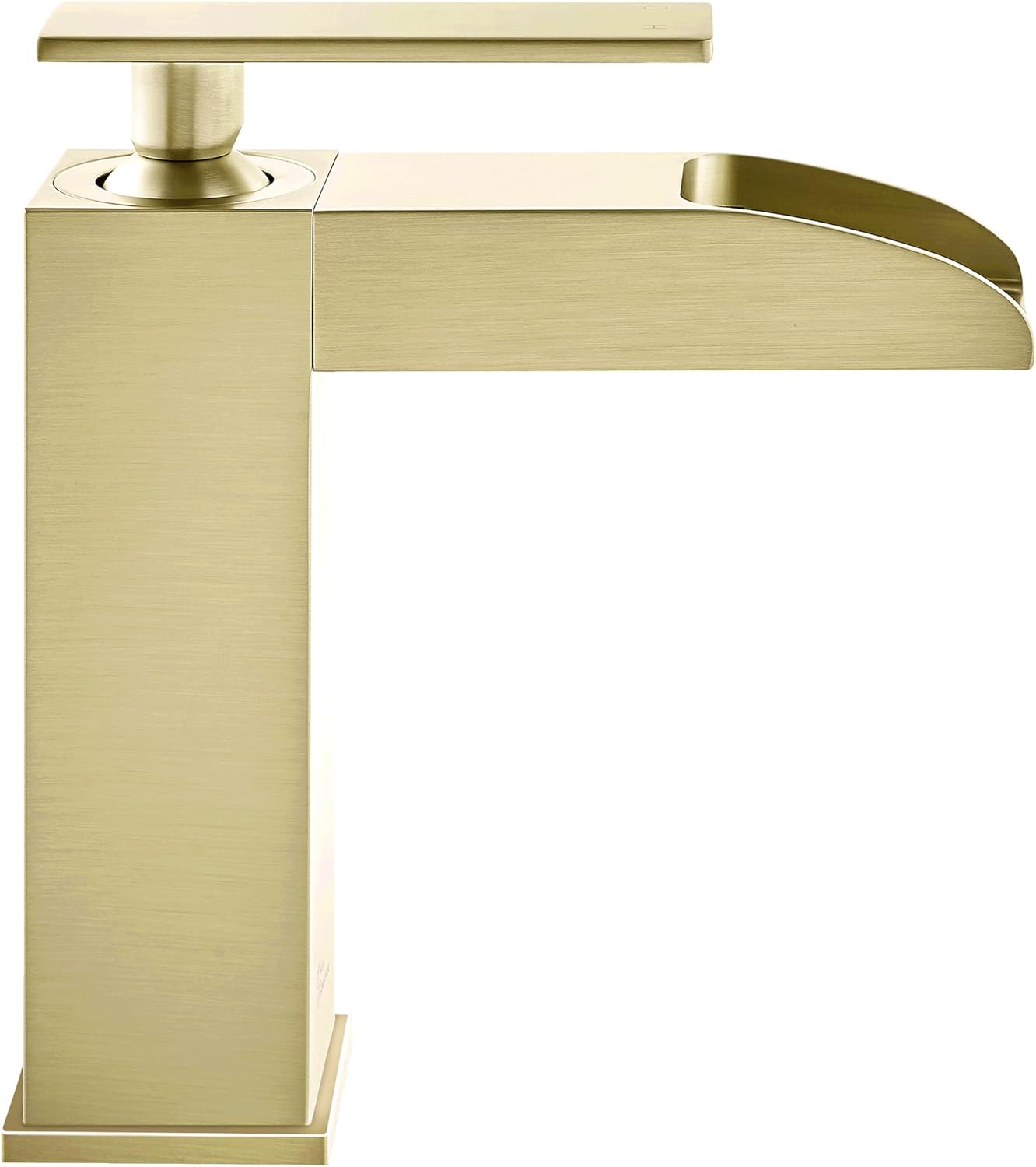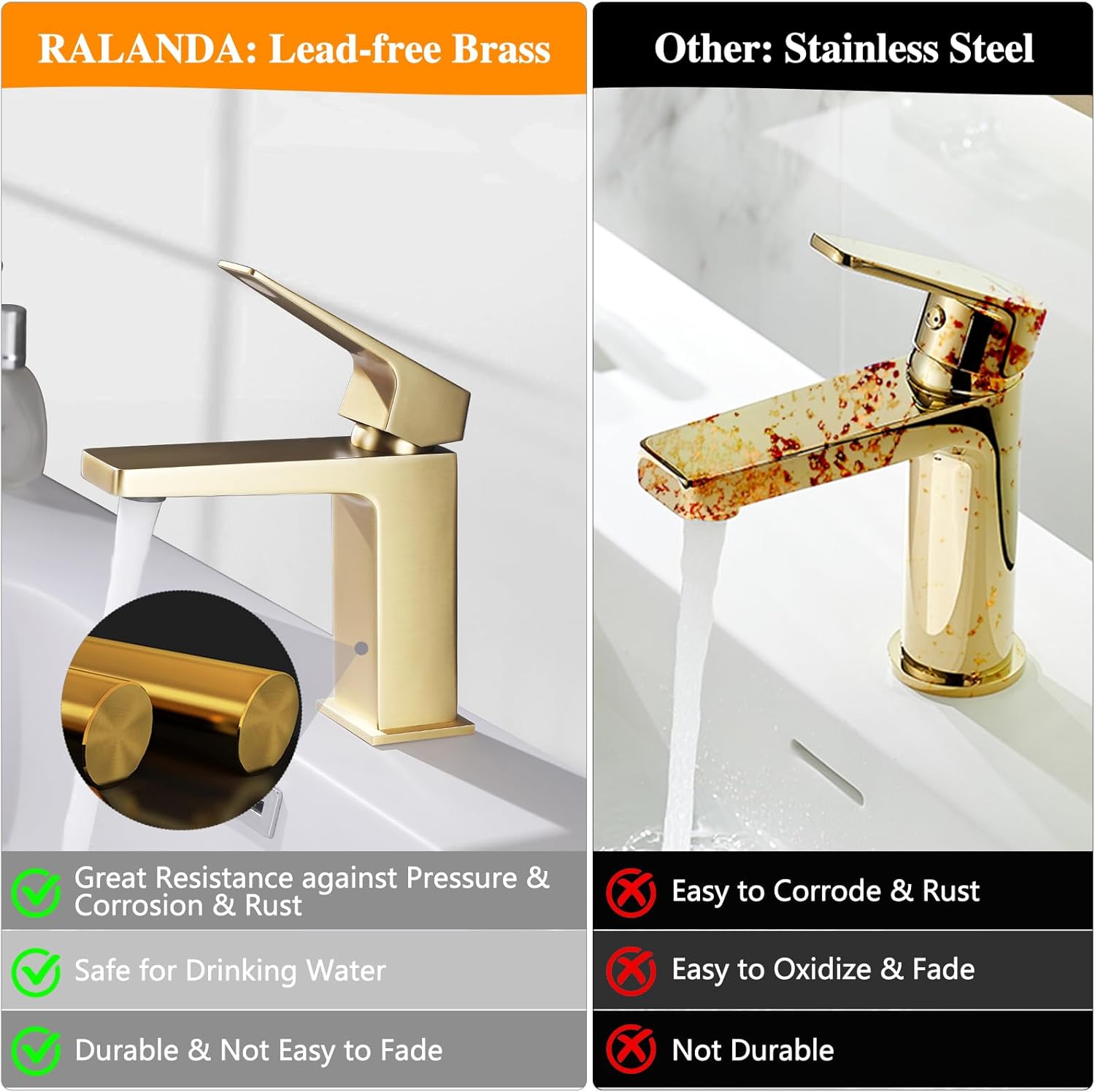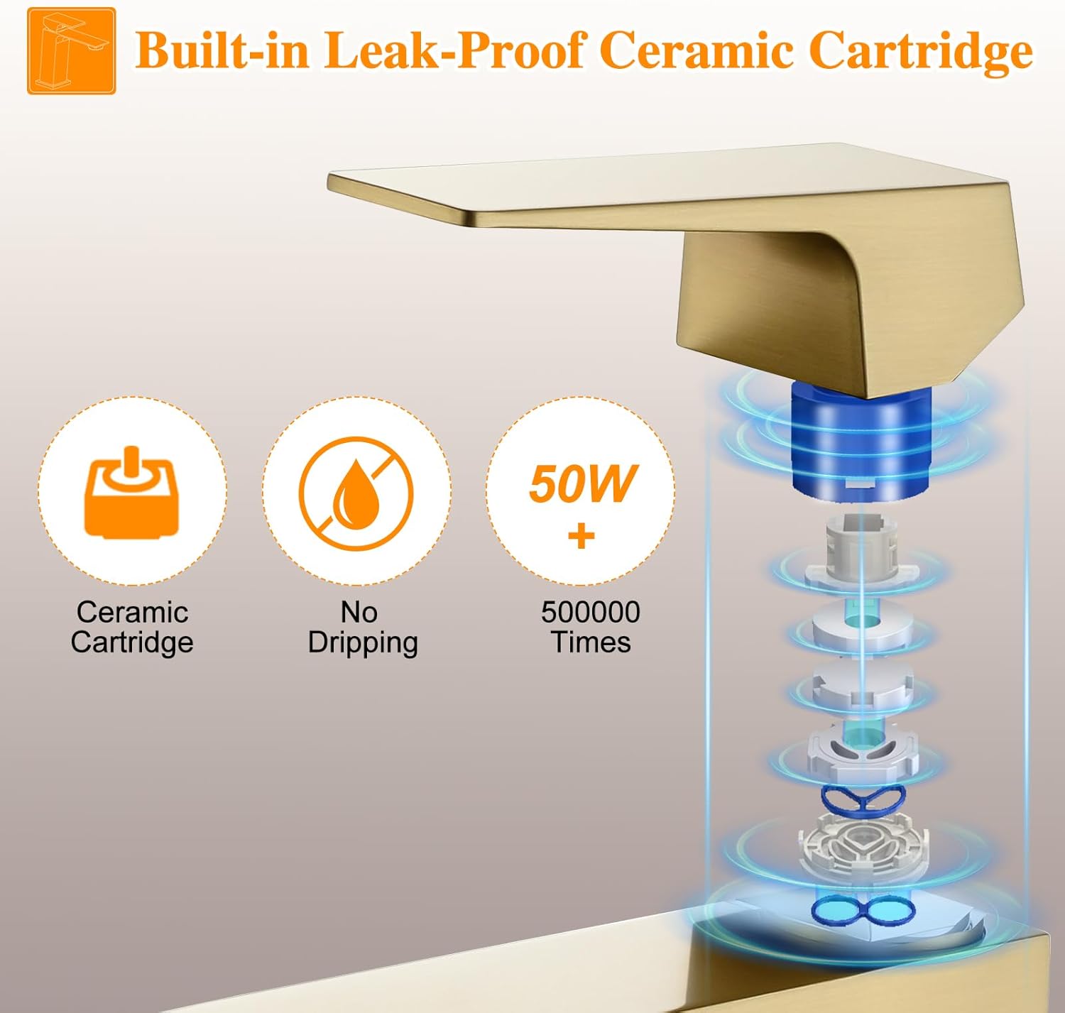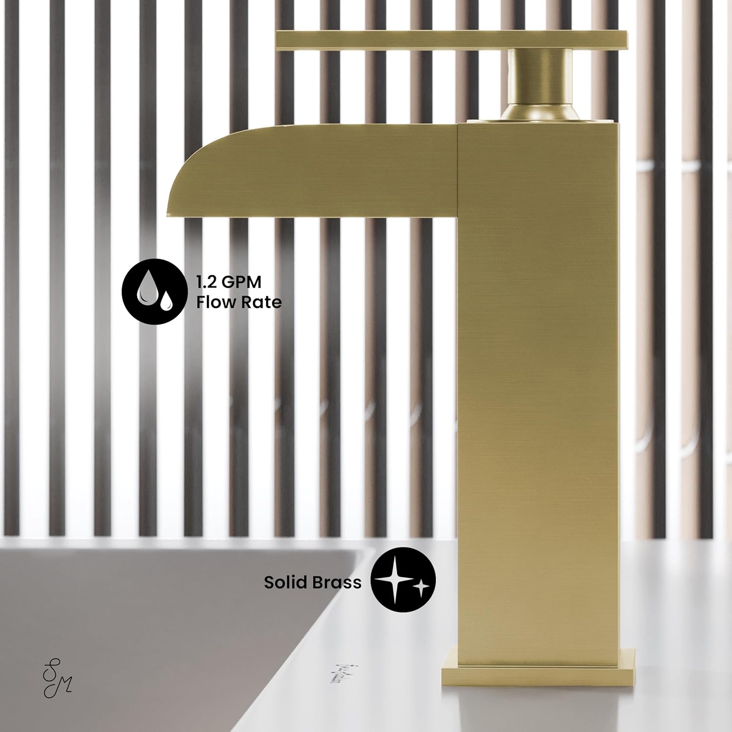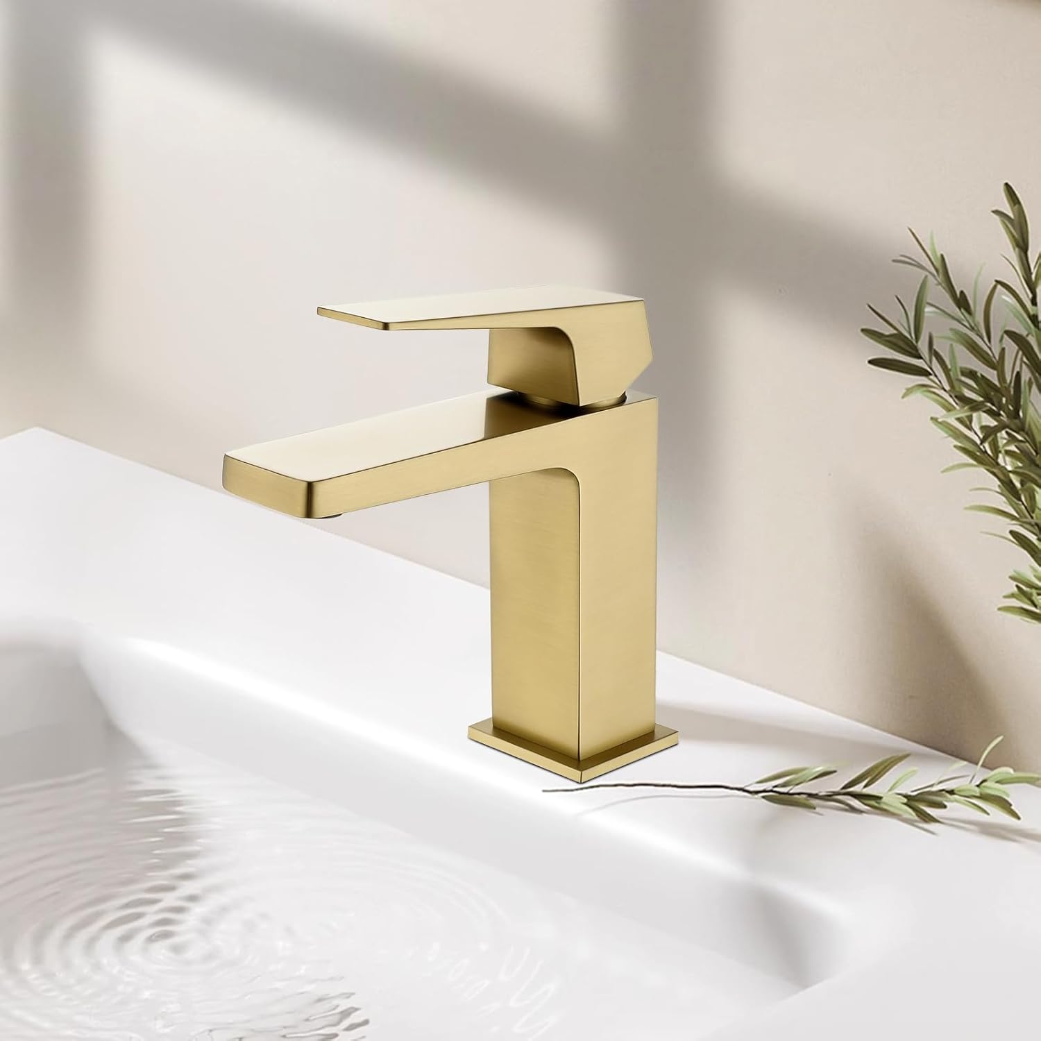 Gold Bathroom Faucets, 6 Inch Small Single Handle Bathroom Sink Faucet 1.8GPM High Pressure Vanity Faucet 1 Hole with Supply Hose Solid Brass Construction Without Pop Up Drain