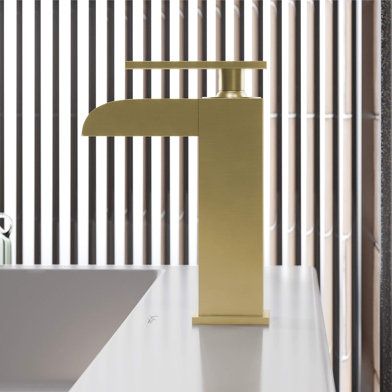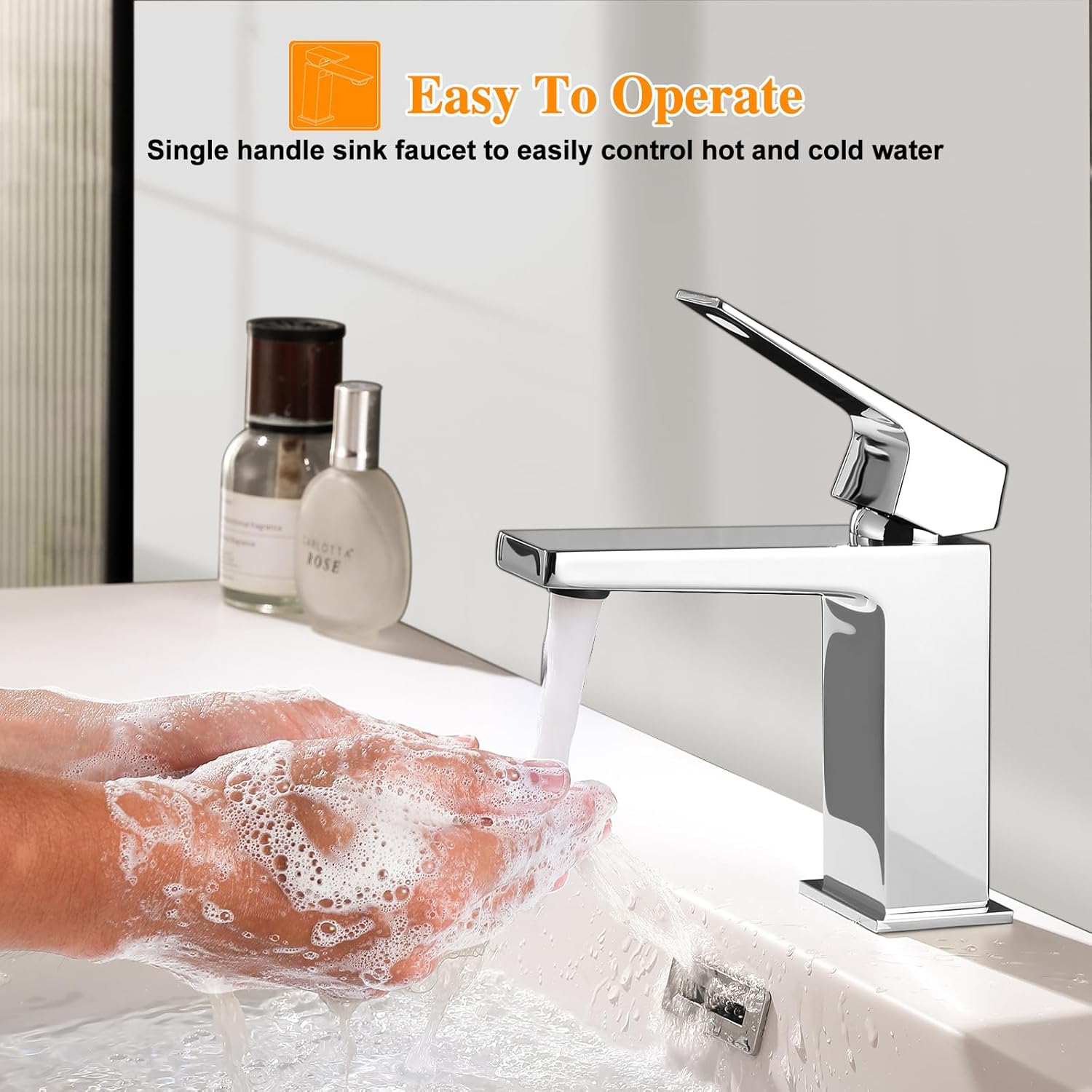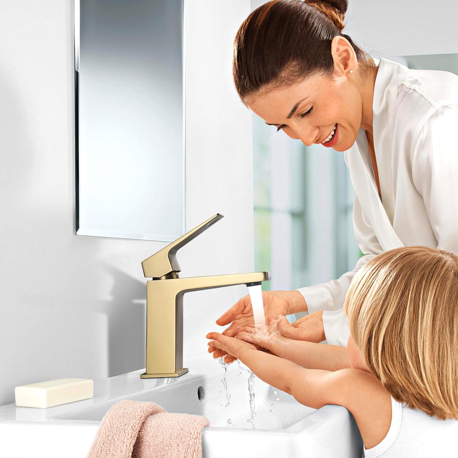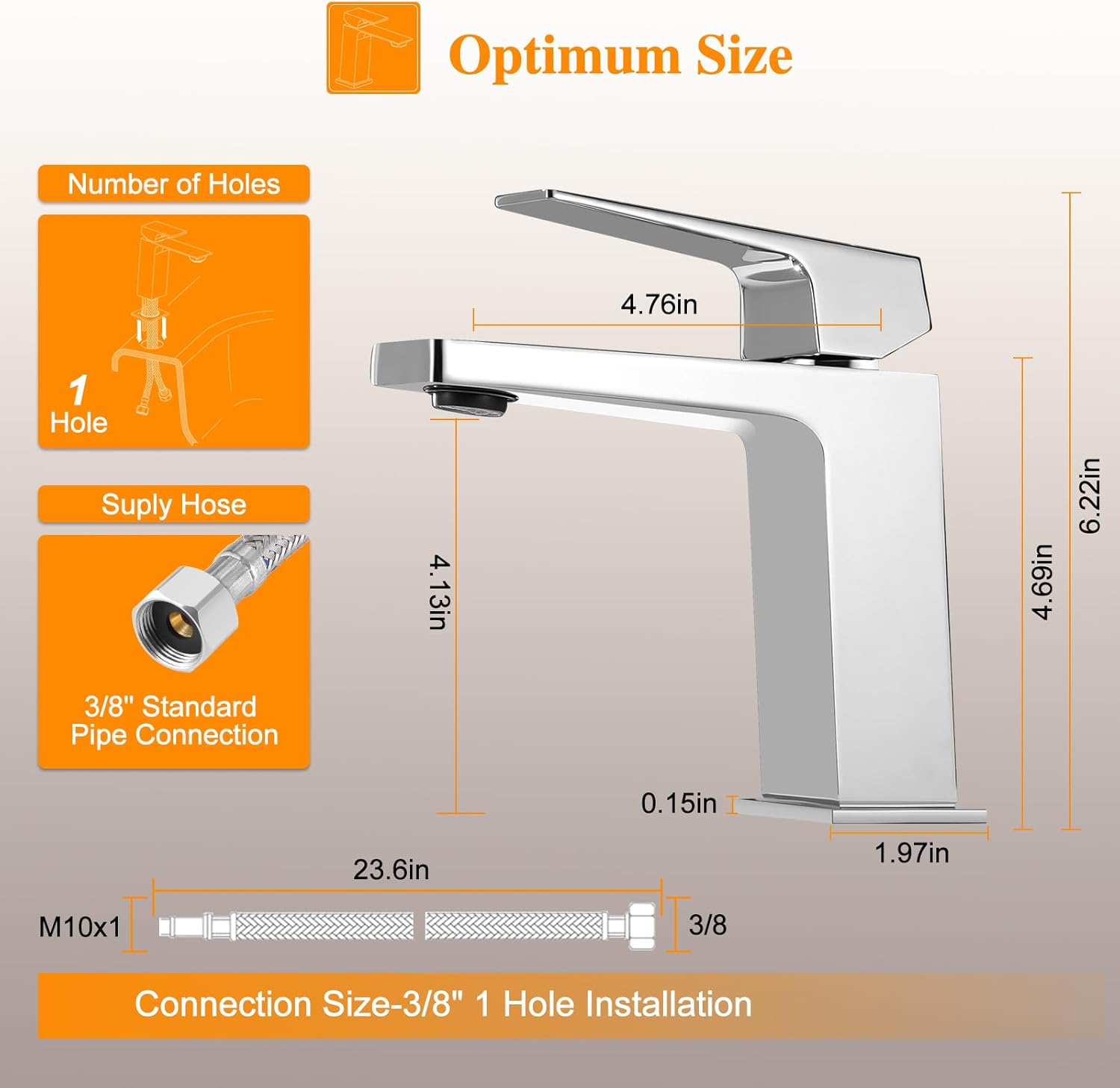 Gold Bathroom Faucets, 6 Inch Small Single Handle Bathroom Sink Faucet 1.8GPM High Pressure Vanity Faucet 1 Hole with Supply Hose Solid Brass Construction Without Pop Up Drain