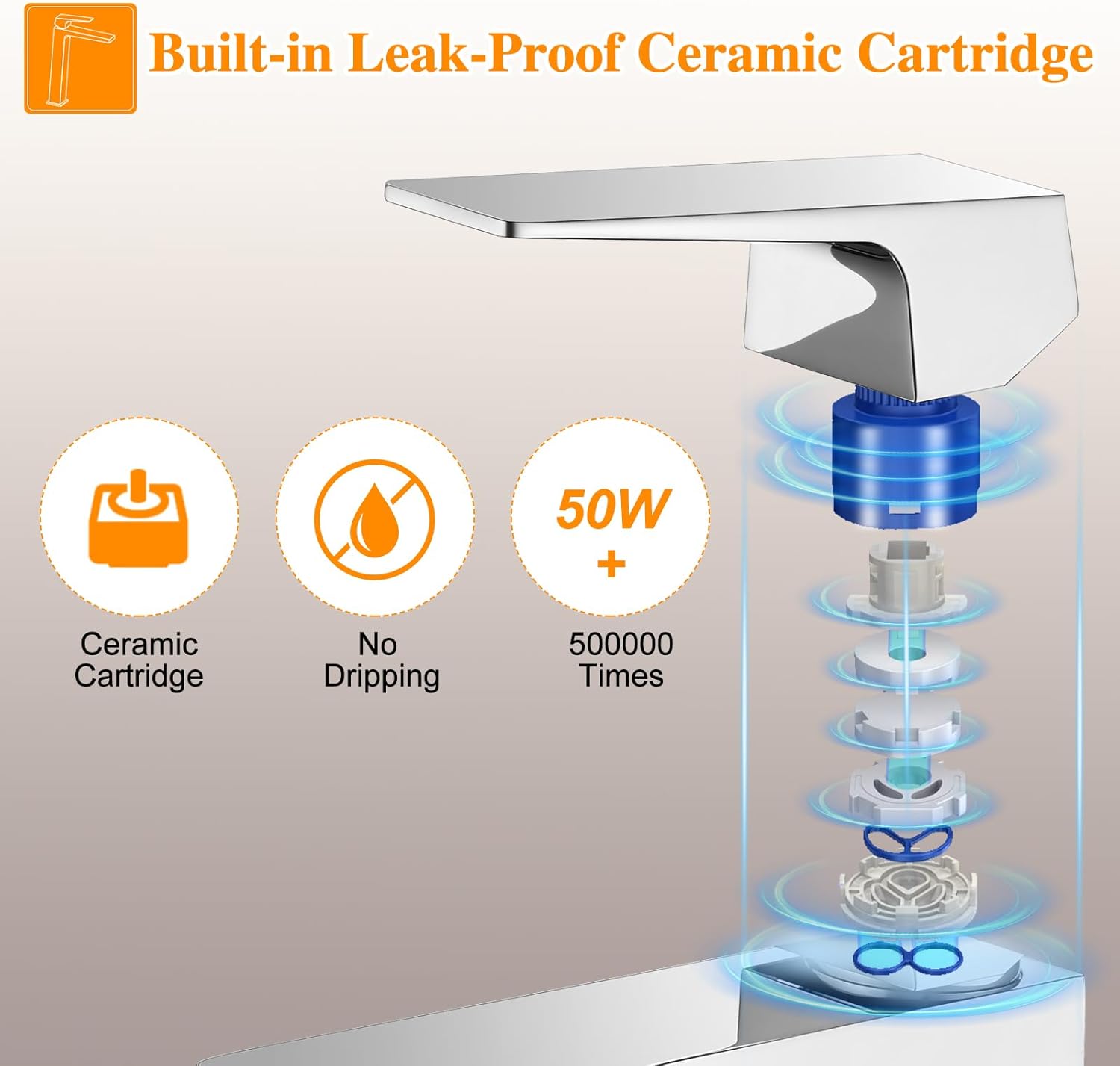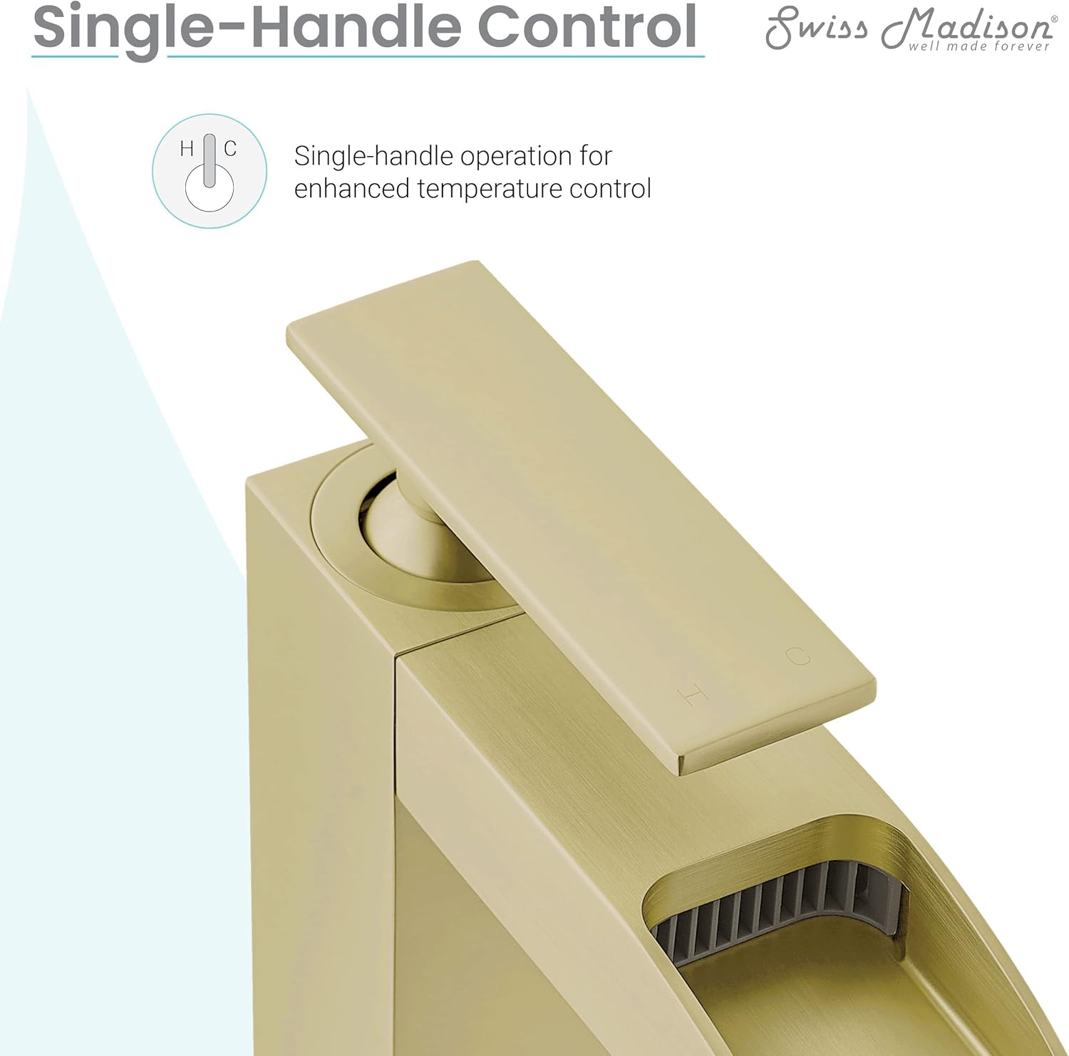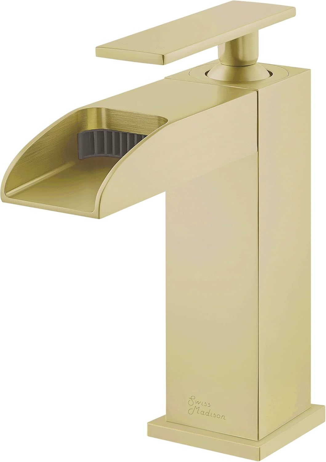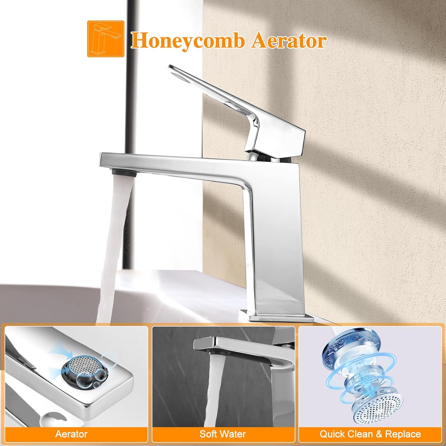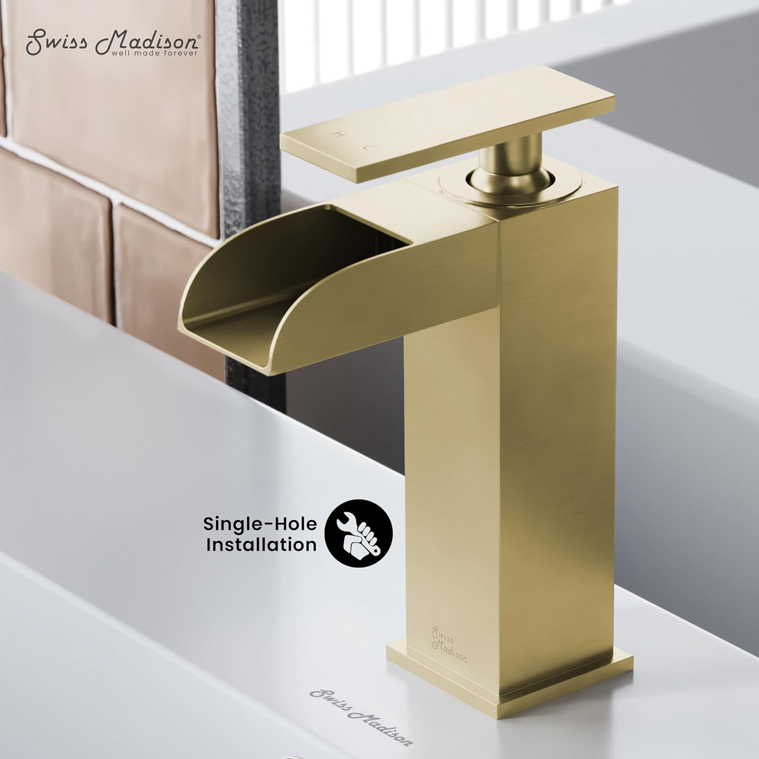 Gold Bathroom Faucets, 6 Inch Small Single Handle Bathroom Sink Faucet 1.8GPM High Pressure Vanity Faucet 1 Hole with Supply Hose Solid Brass Construction Without Pop Up Drain