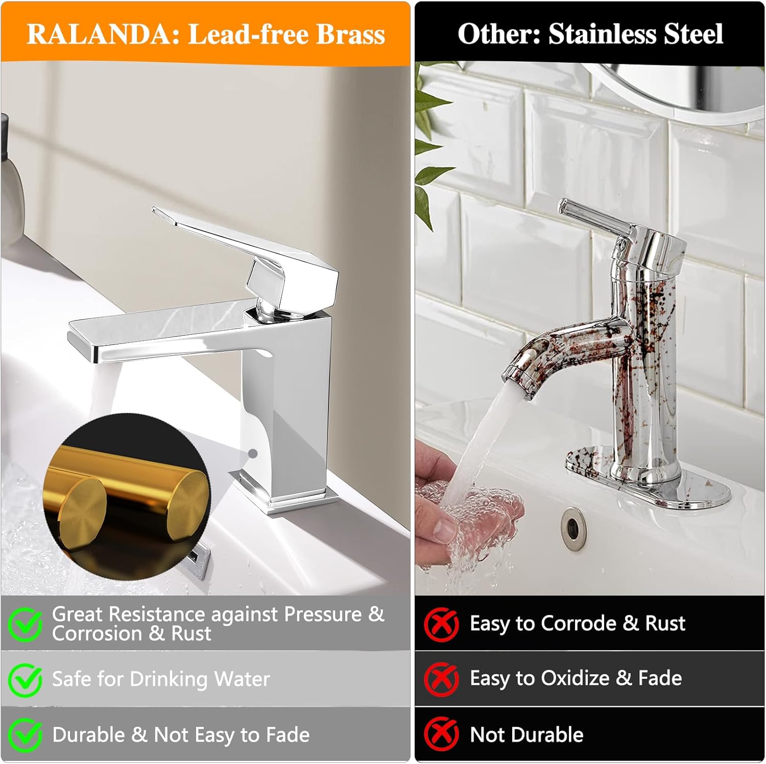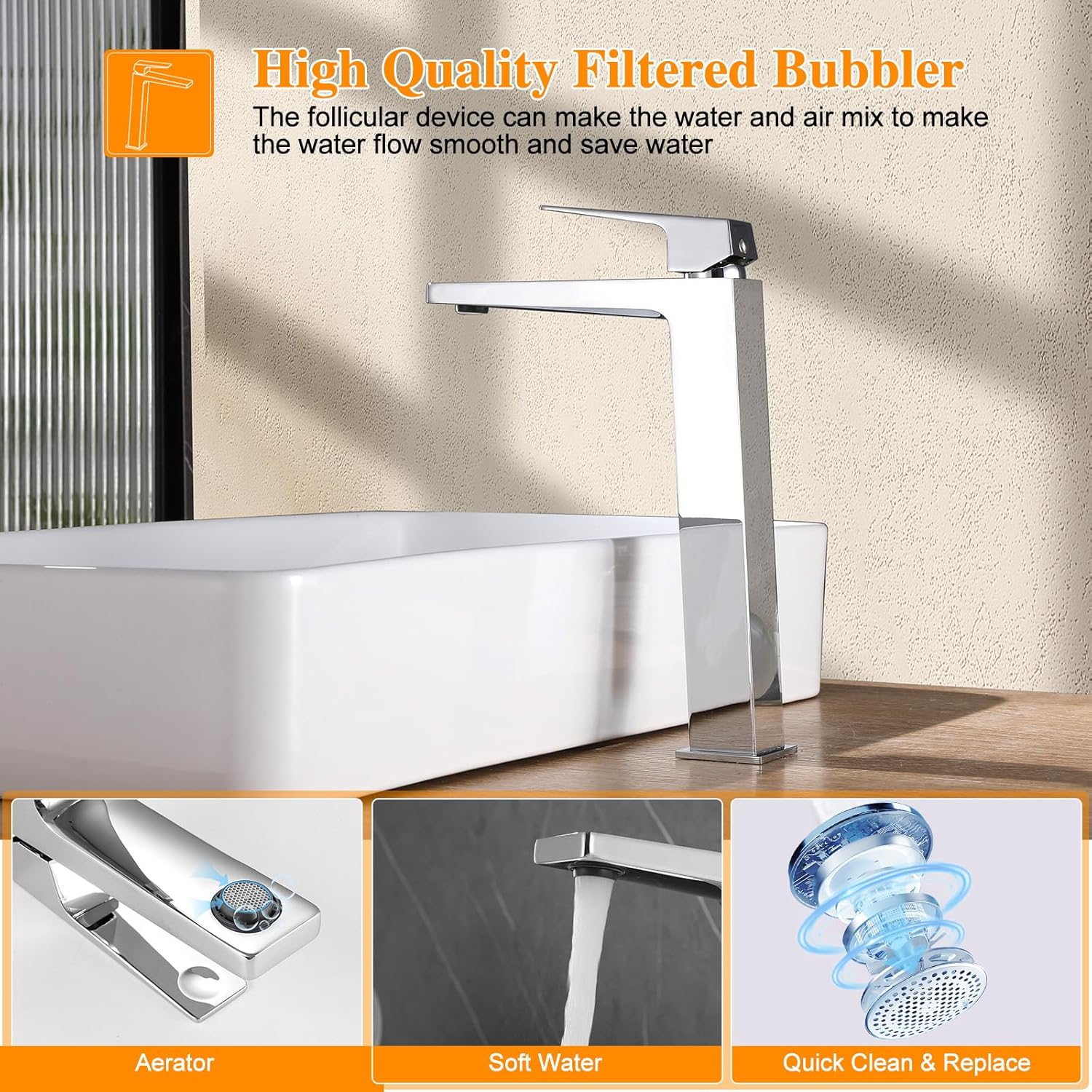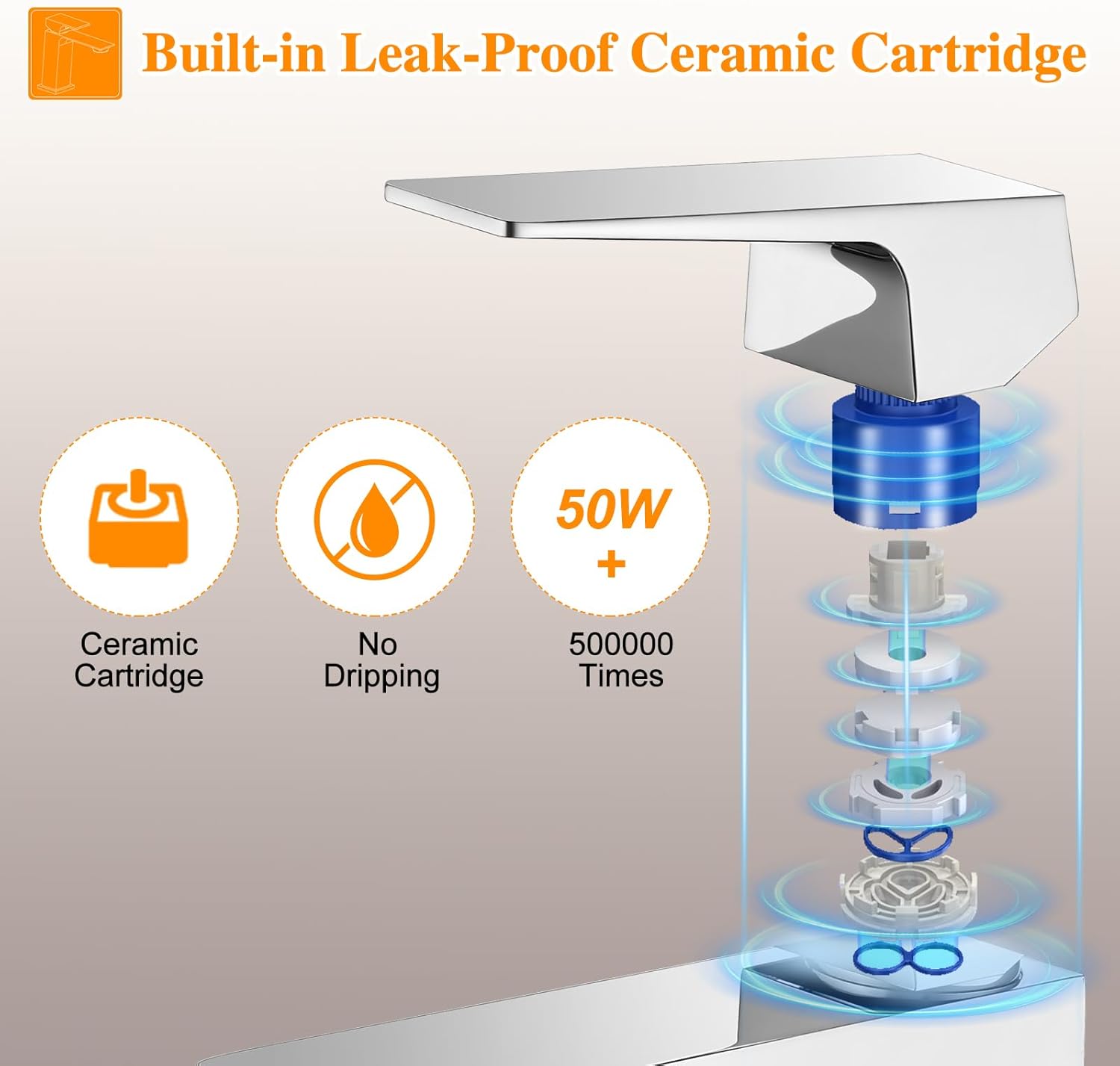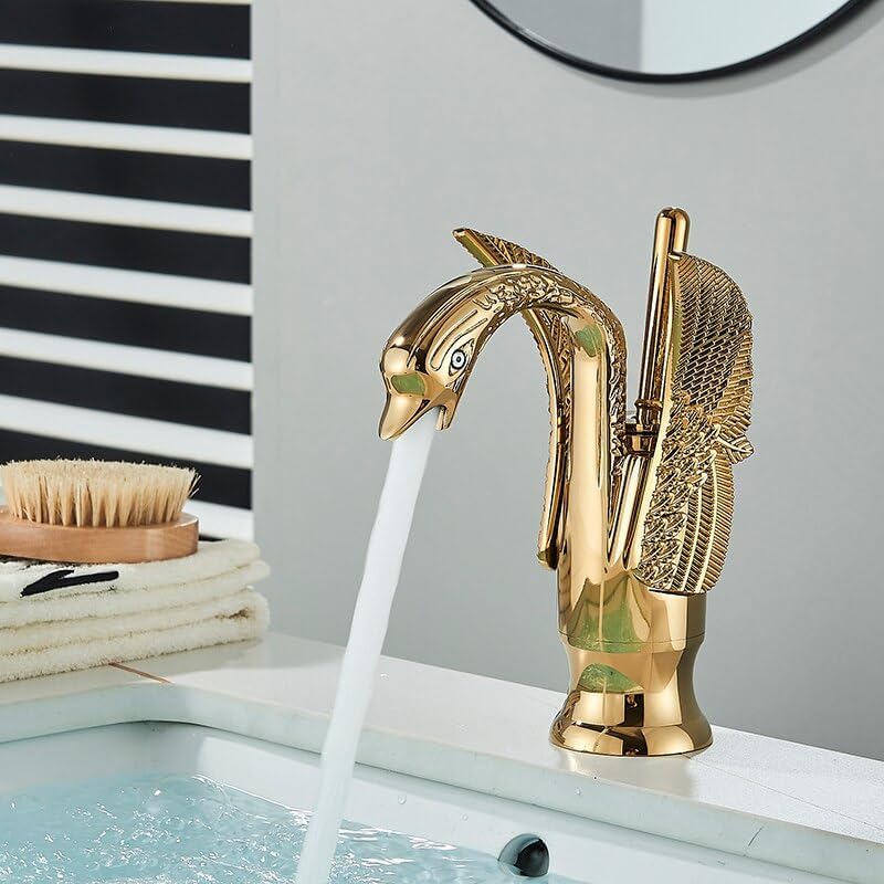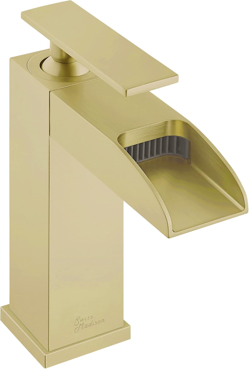 Gold Bathroom Faucets, 6 Inch Small Single Handle Bathroom Sink Faucet 1.8GPM High Pressure Vanity Faucet 1 Hole with Supply Hose Solid Brass Construction Without Pop Up Drain