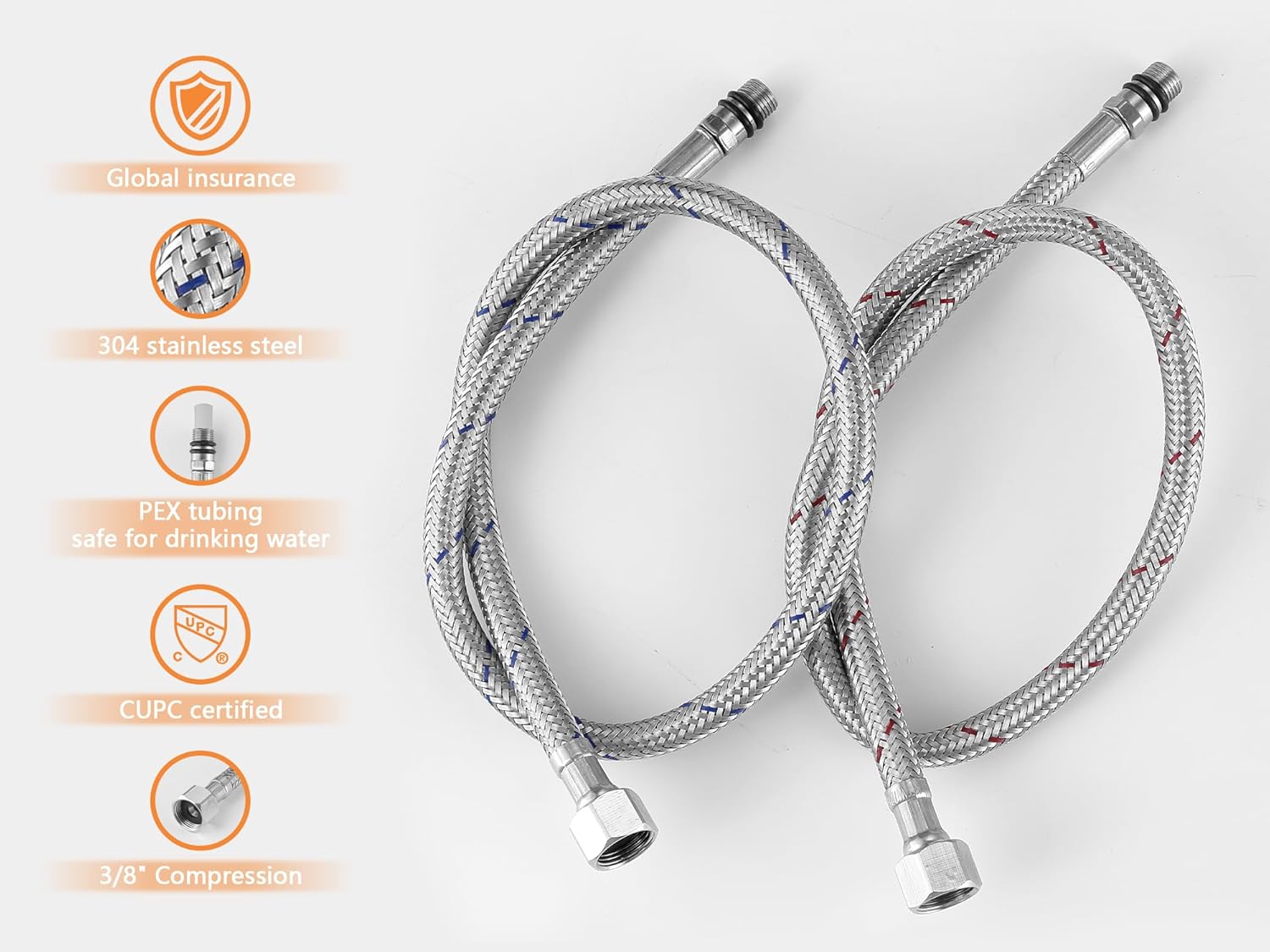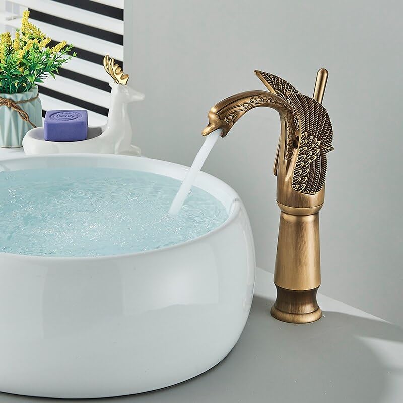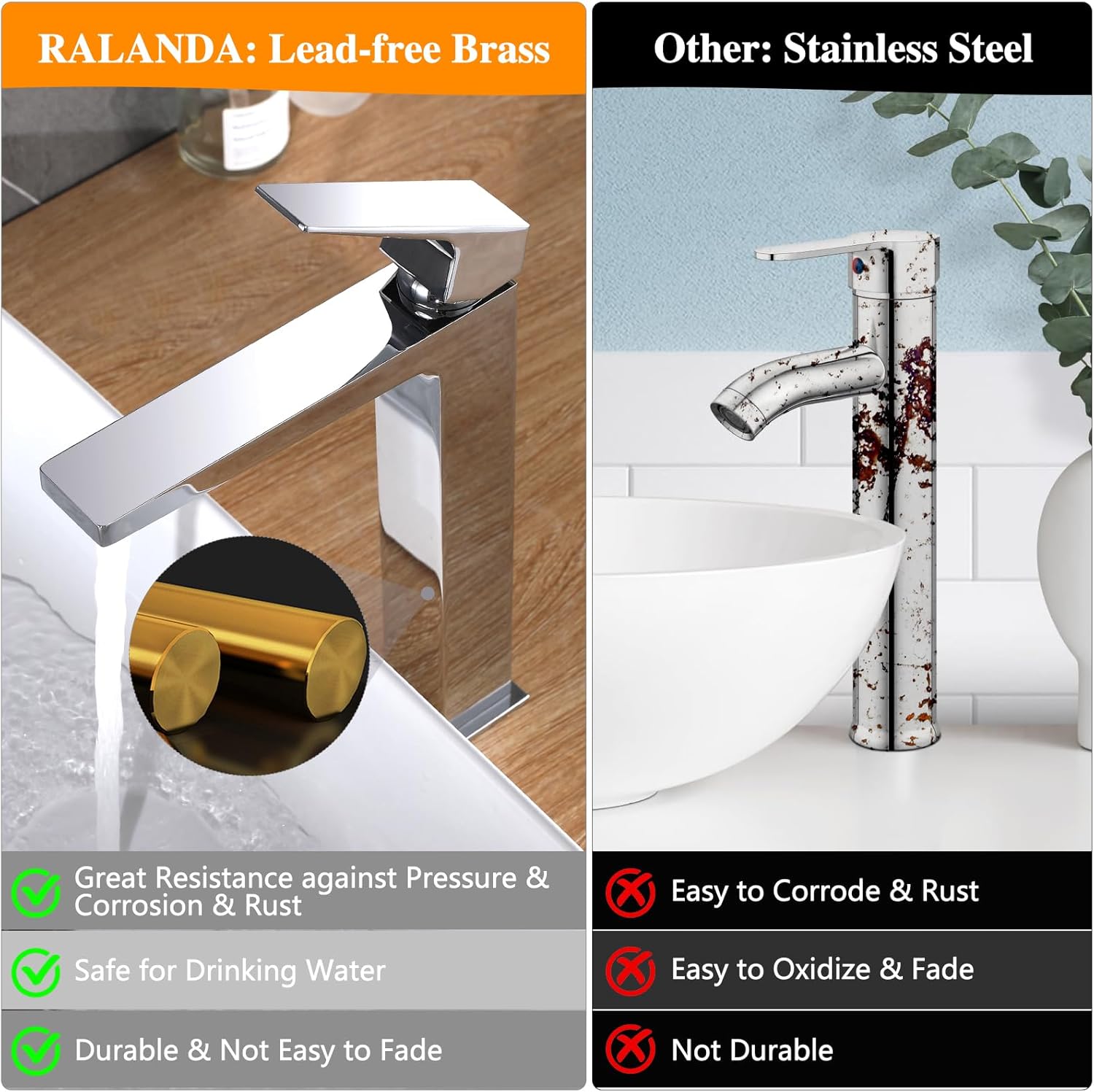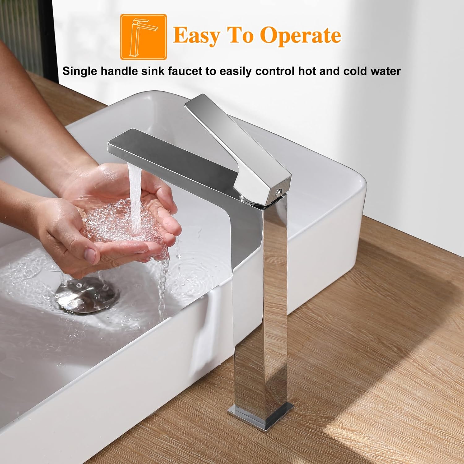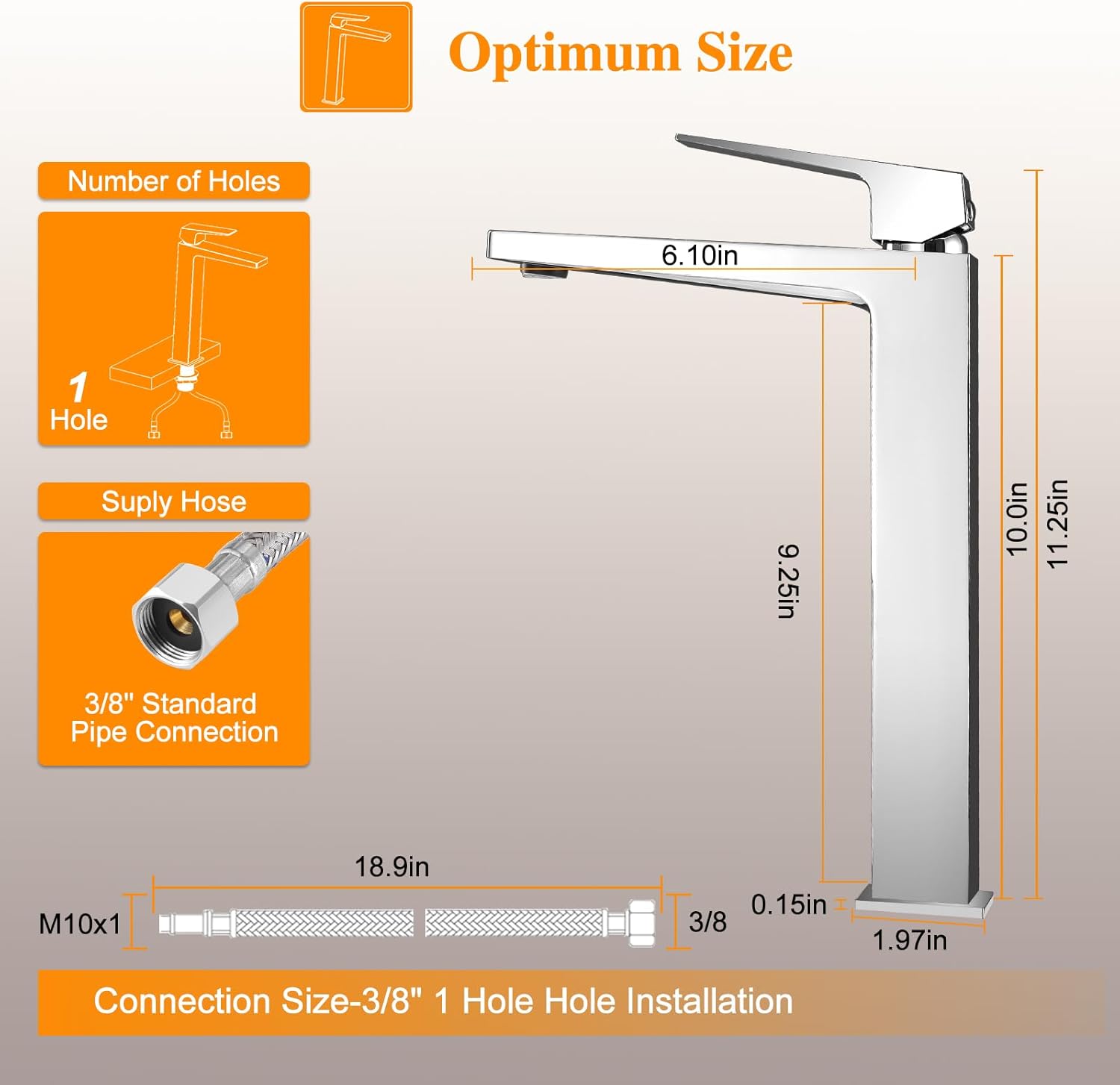 Gold Bathroom Faucets, 6 Inch Small Single Handle Bathroom Sink Faucet 1.8GPM High Pressure Vanity Faucet 1 Hole with Supply Hose Solid Brass Construction Without Pop Up Drain