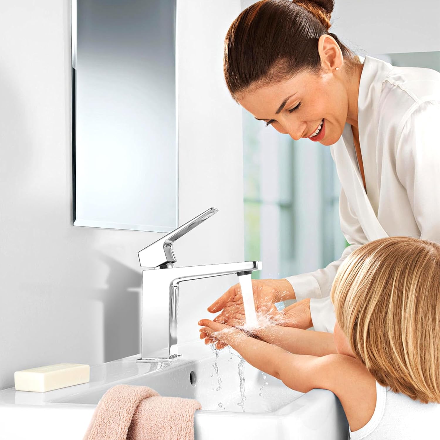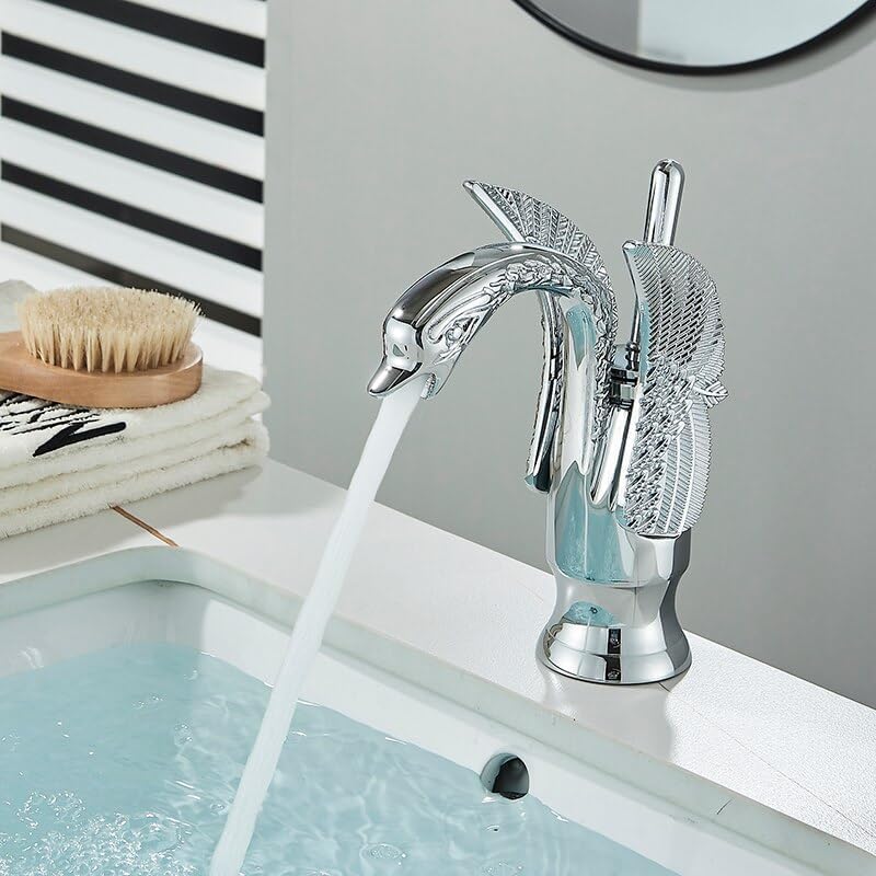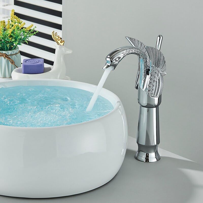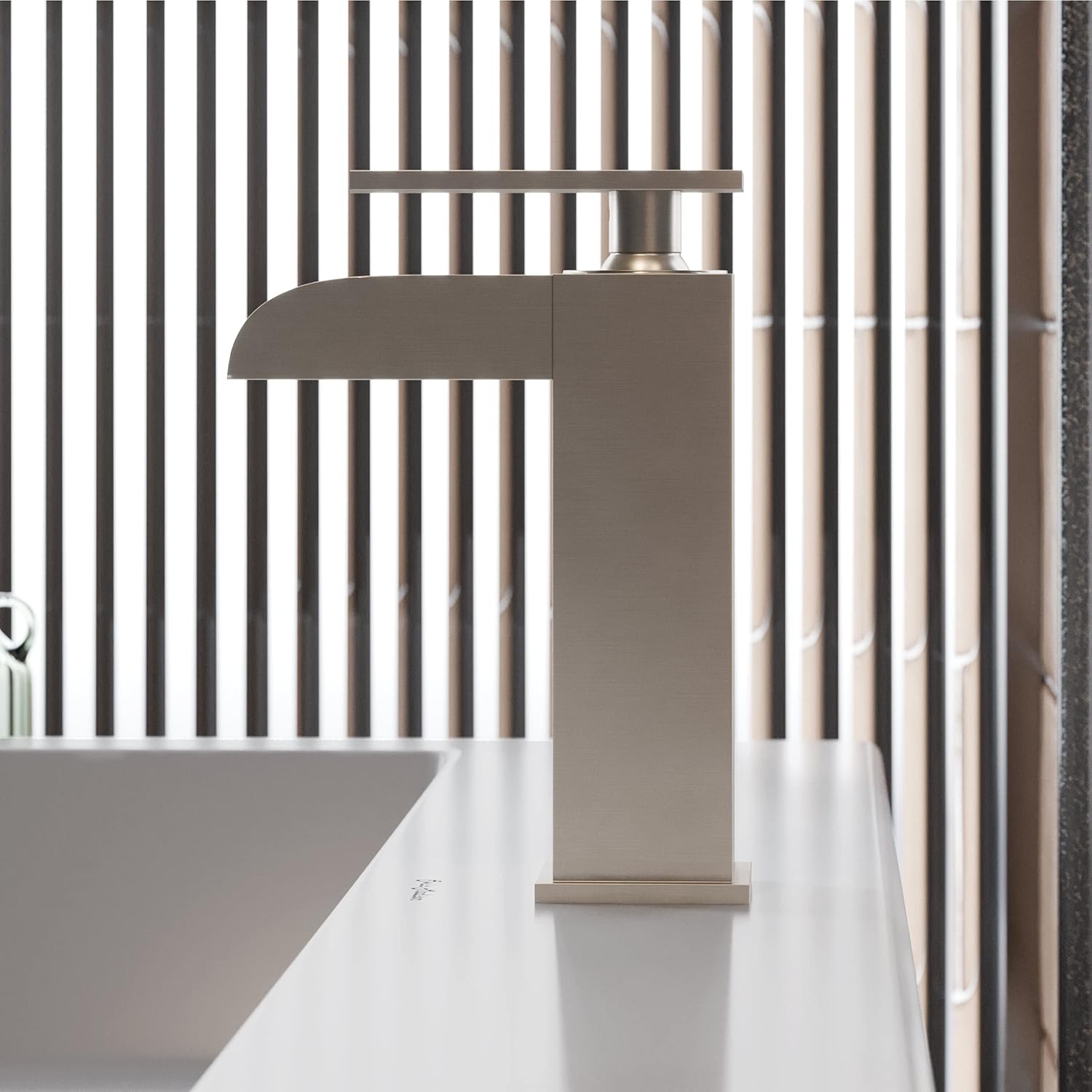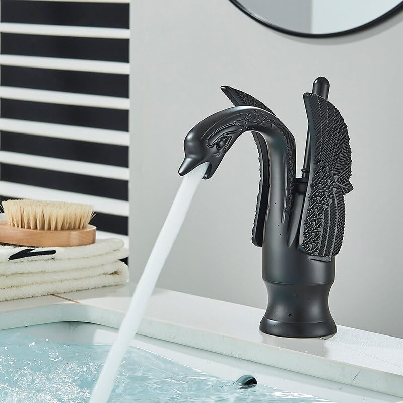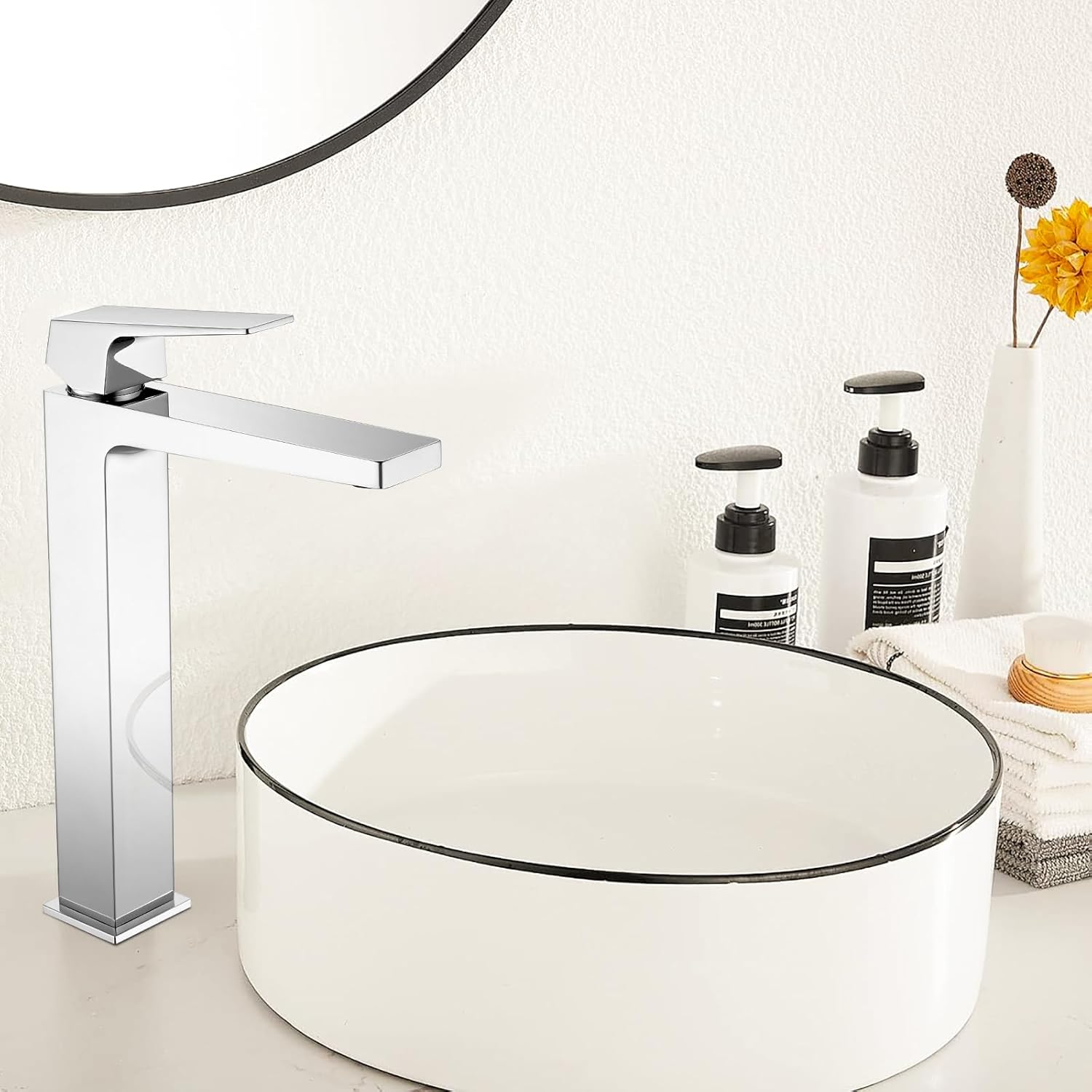 Gold Bathroom Faucets, 6 Inch Small Single Handle Bathroom Sink Faucet 1.8GPM High Pressure Vanity Faucet 1 Hole with Supply Hose Solid Brass Construction Without Pop Up Drain