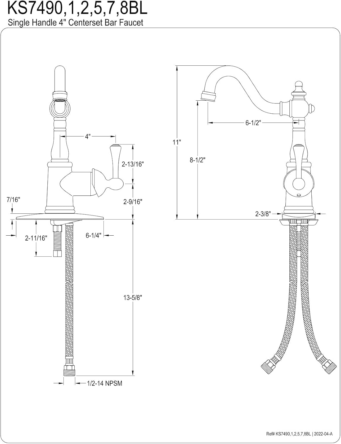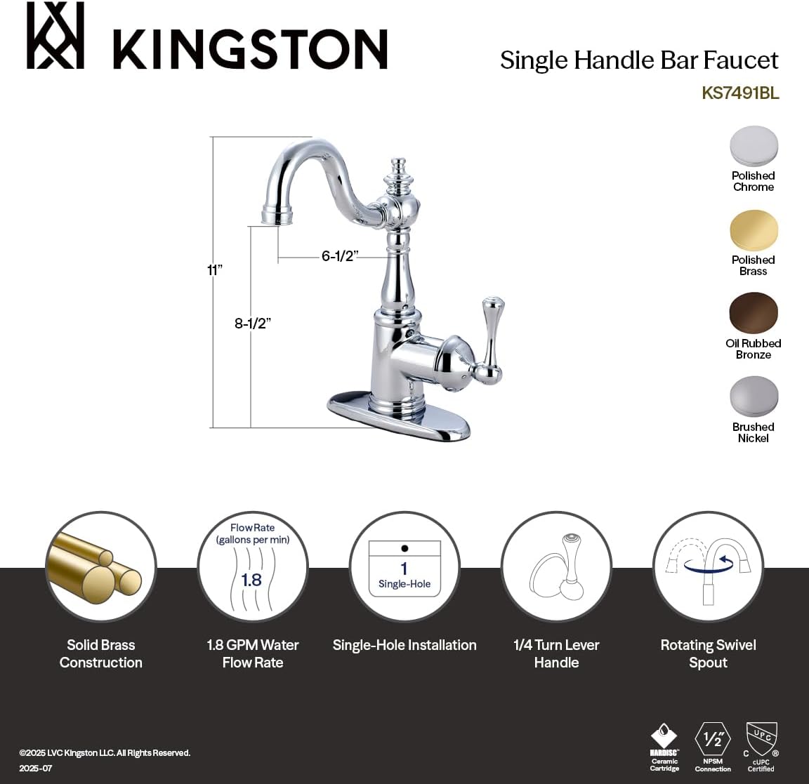 Kingston Brass KS7491BL English Vintage Bar Faucet, Polished Chrome, 11.06 x 6.25 x 2.38