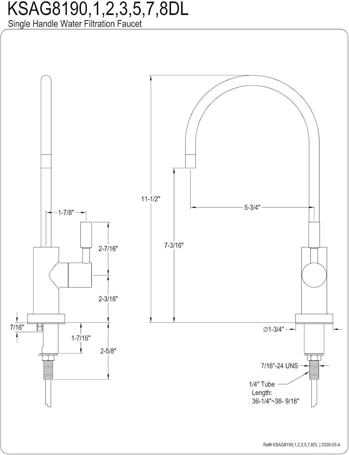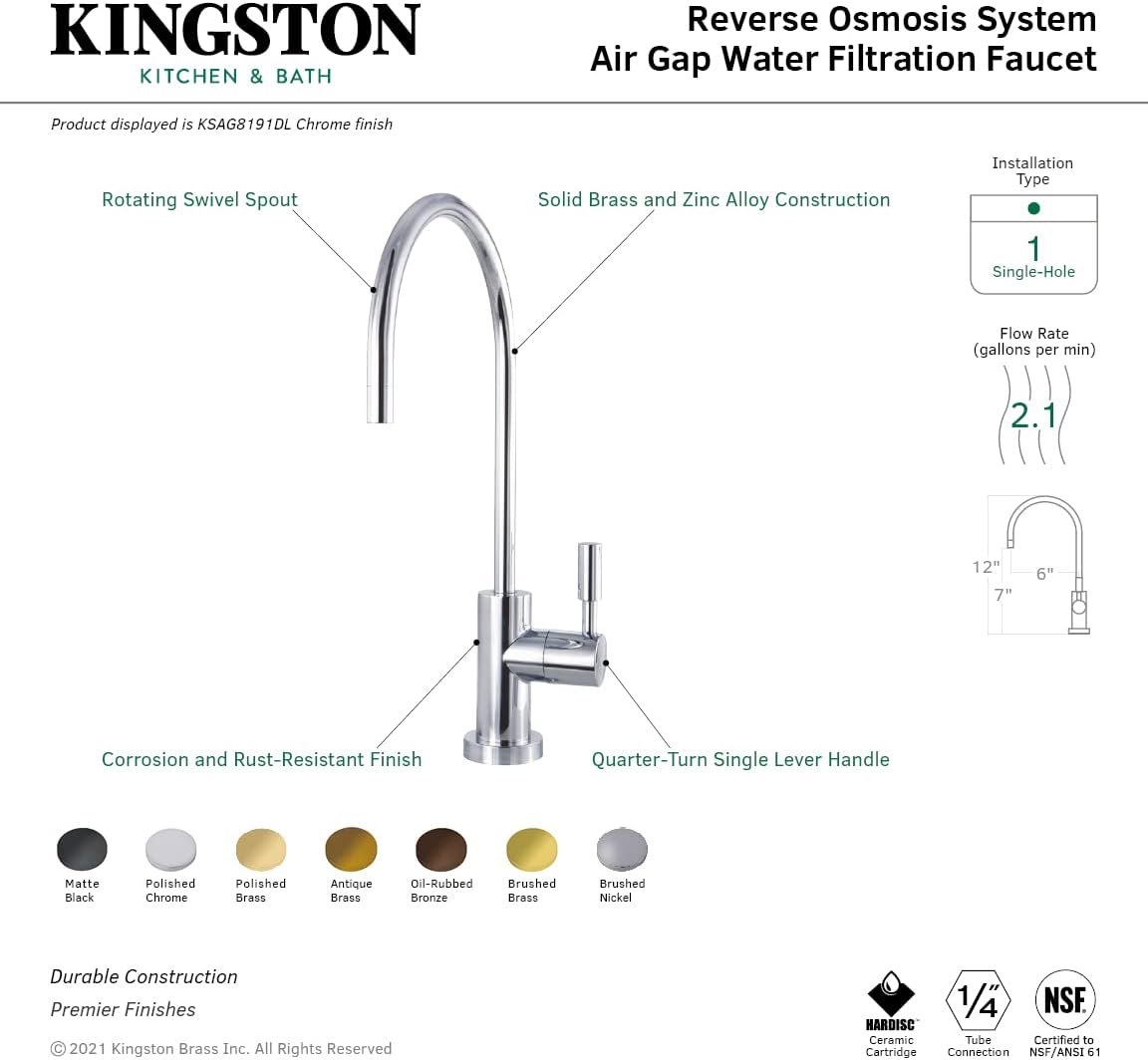 Kingston Brass KSAG8195DL Concord Cold‑Water Filtration Faucet, Oil Rubbed Bronze, 5‑3/4 in. Spout Reach