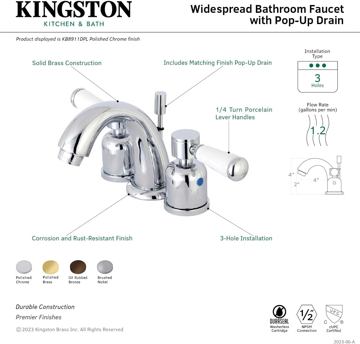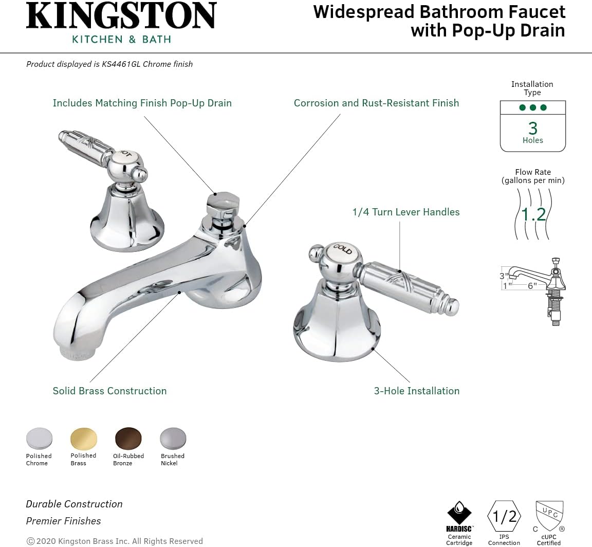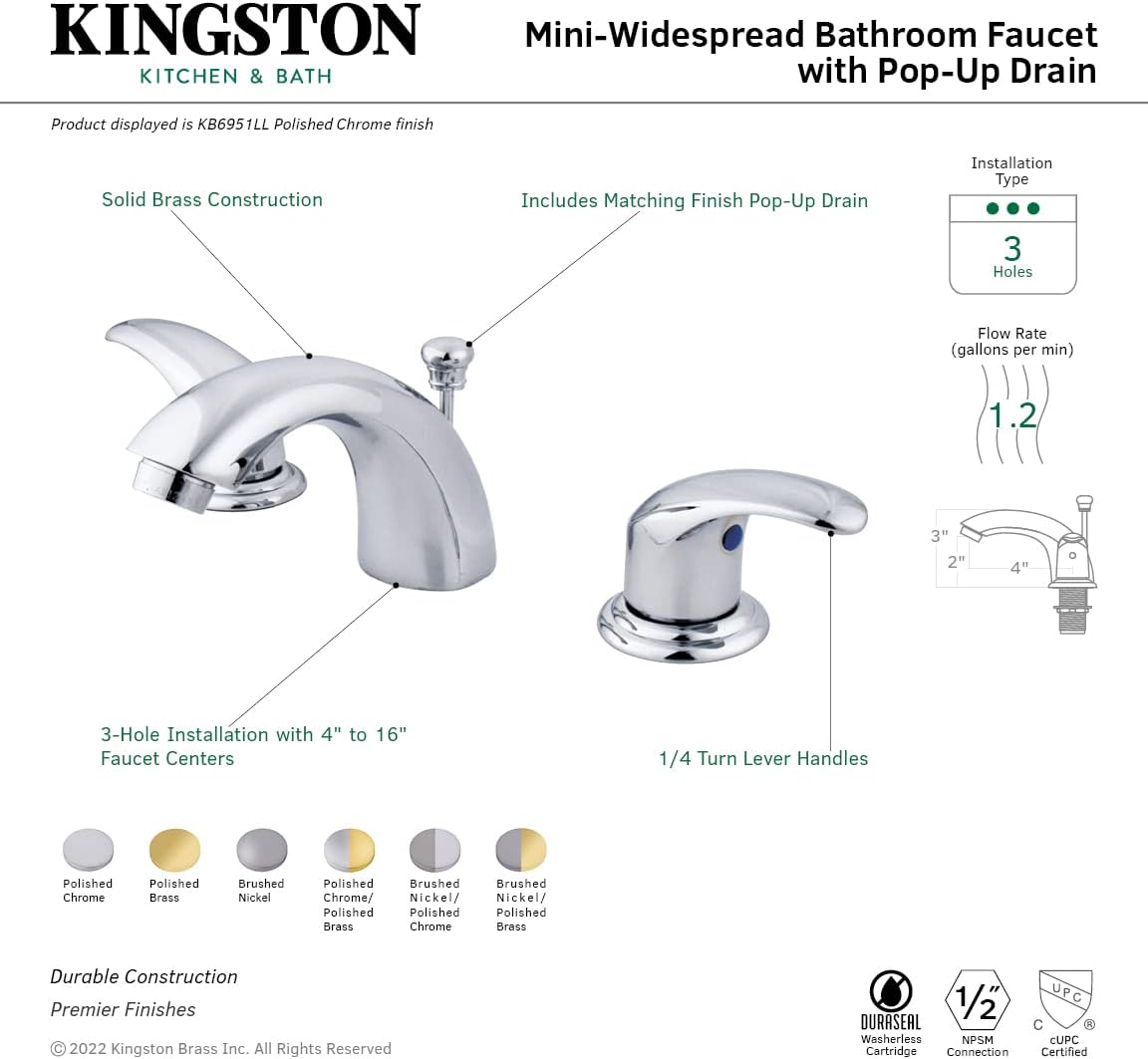 Kingston Brass KB6954LL Legacy Mini Widespread Lavatory Faucet with Pop-Up, Polished Chrome and Polished Brass
