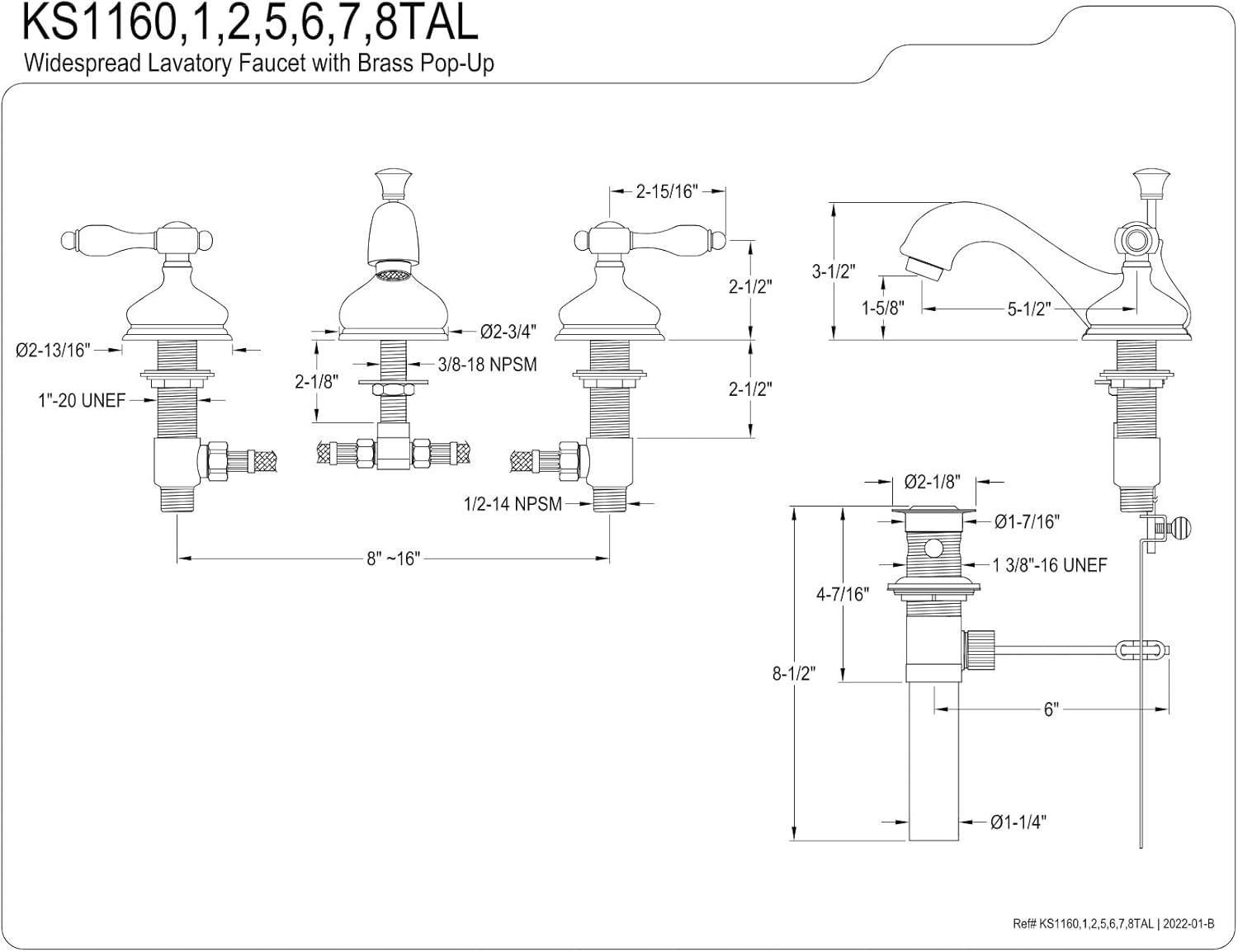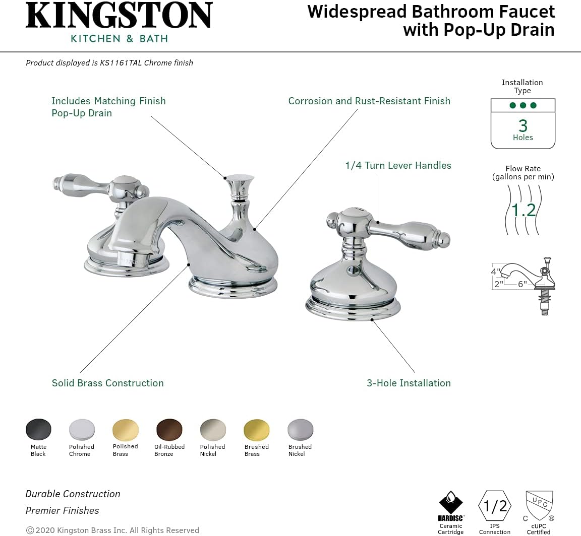 Kingston Brass KS1161TAL 8 in. Widespread Bathroom Faucet, Polished Chrome