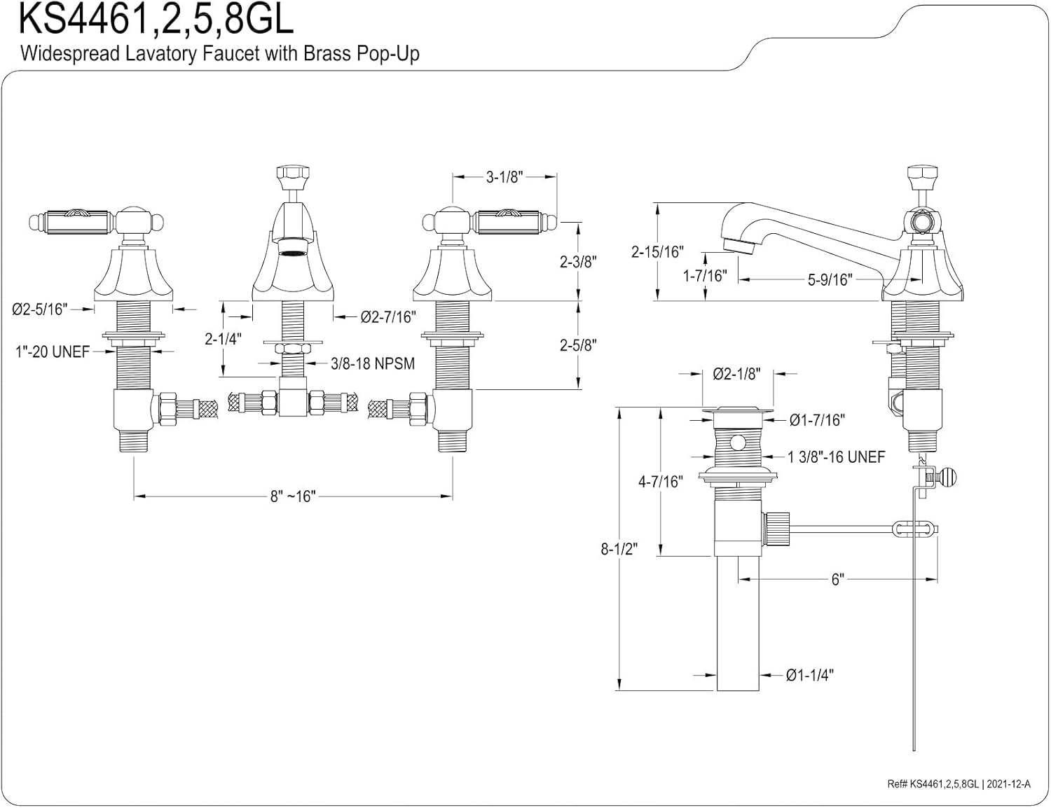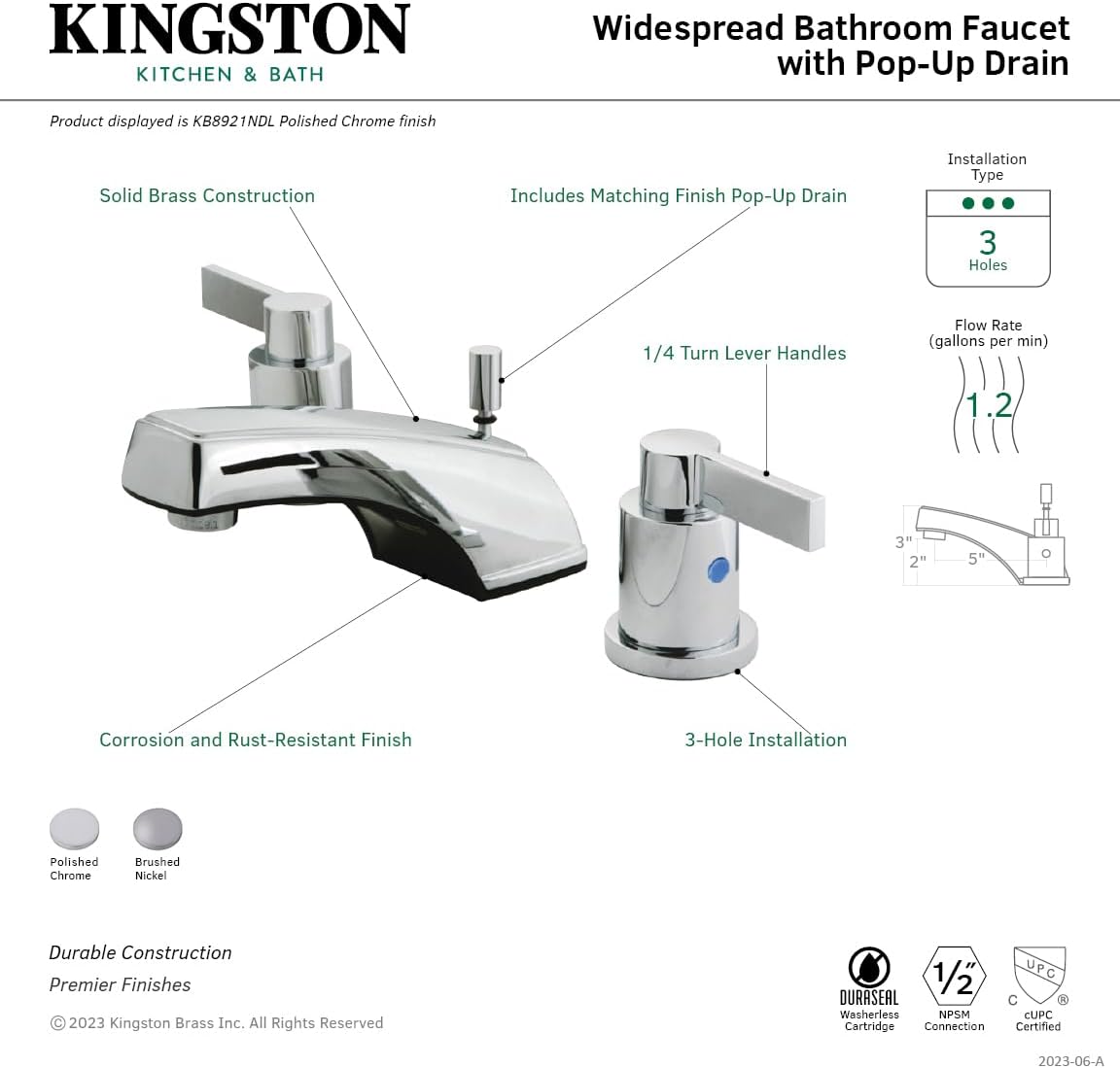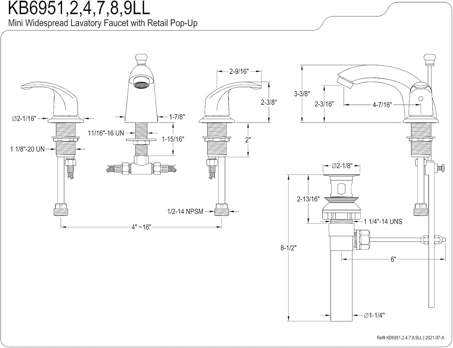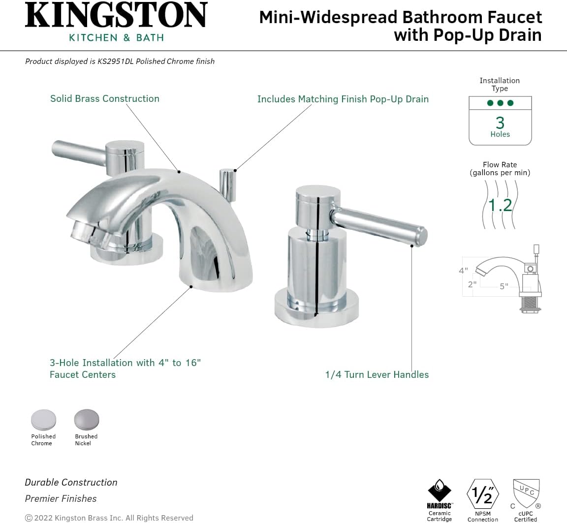 Kingston Brass KB6959LL Legacy Mini Widespread Lavatory Faucet with Pop-Up, Brushed Nickel and Polished Brass