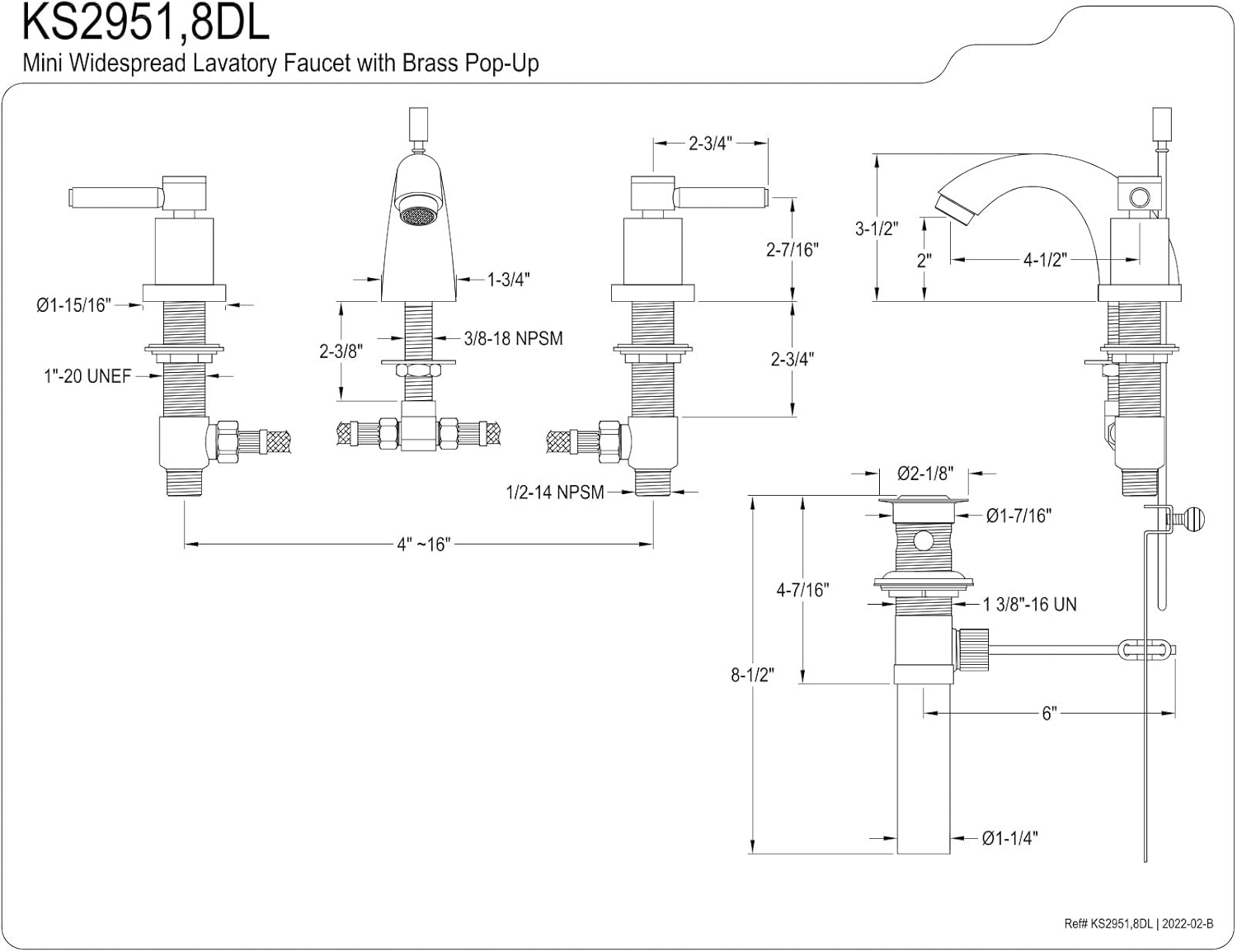 Kingston Brass KB8918DPL Paris 4 to 8" Mini Widespread Lavatory Faucet with Retail Pop-up, Brushed Nickel