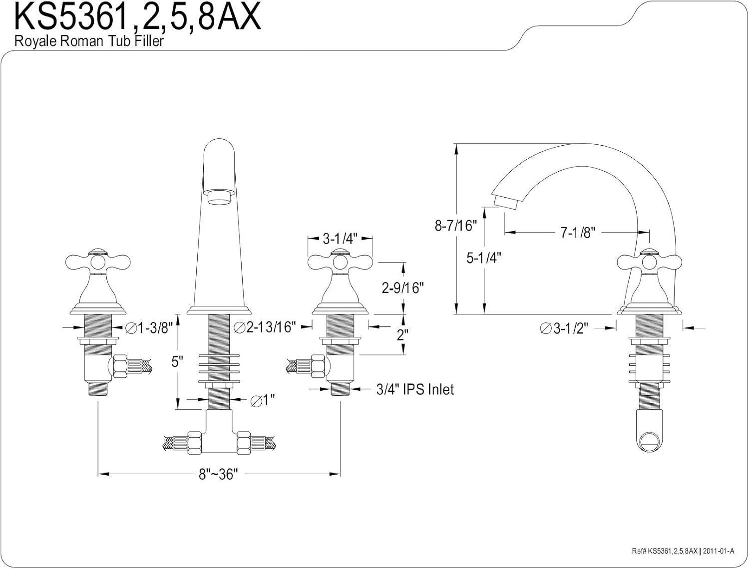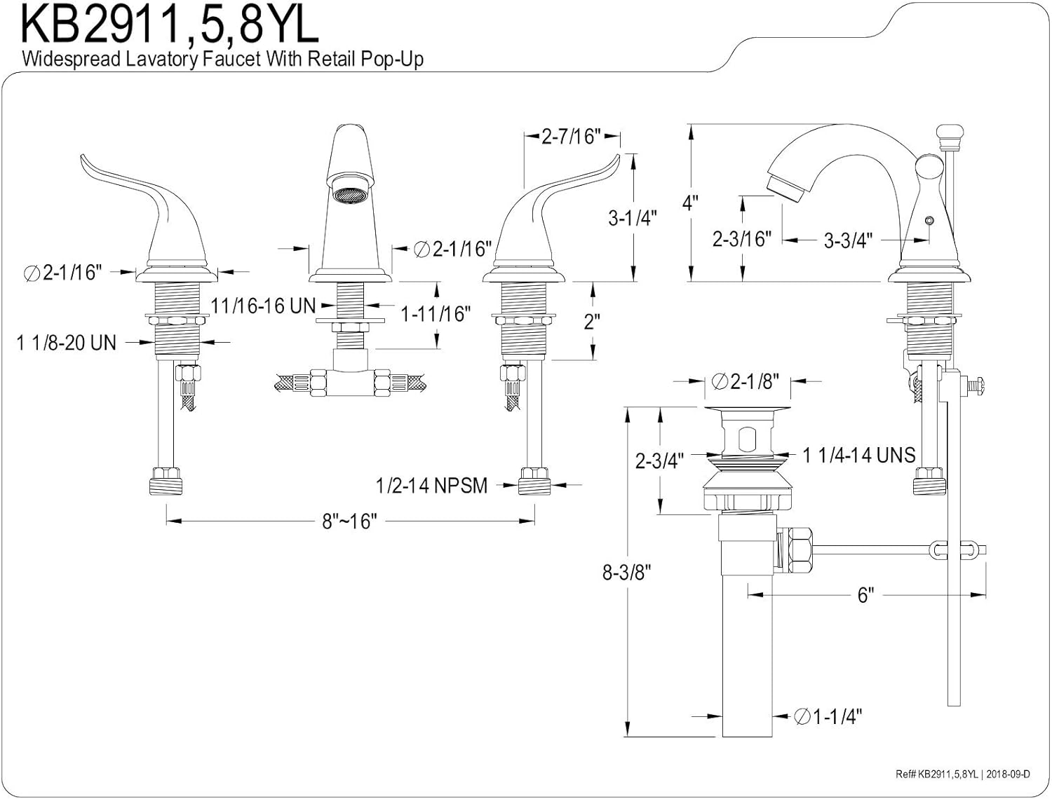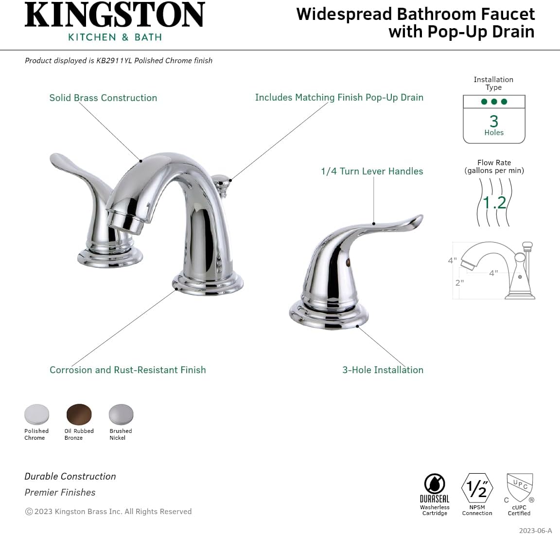 Kingston Brass KB2911YL Yosemite Mini Widespread Two Handle Lavatory Faucet, Polished Chrome, 3-3/4 inch in Spout Reach, Polished Chrome