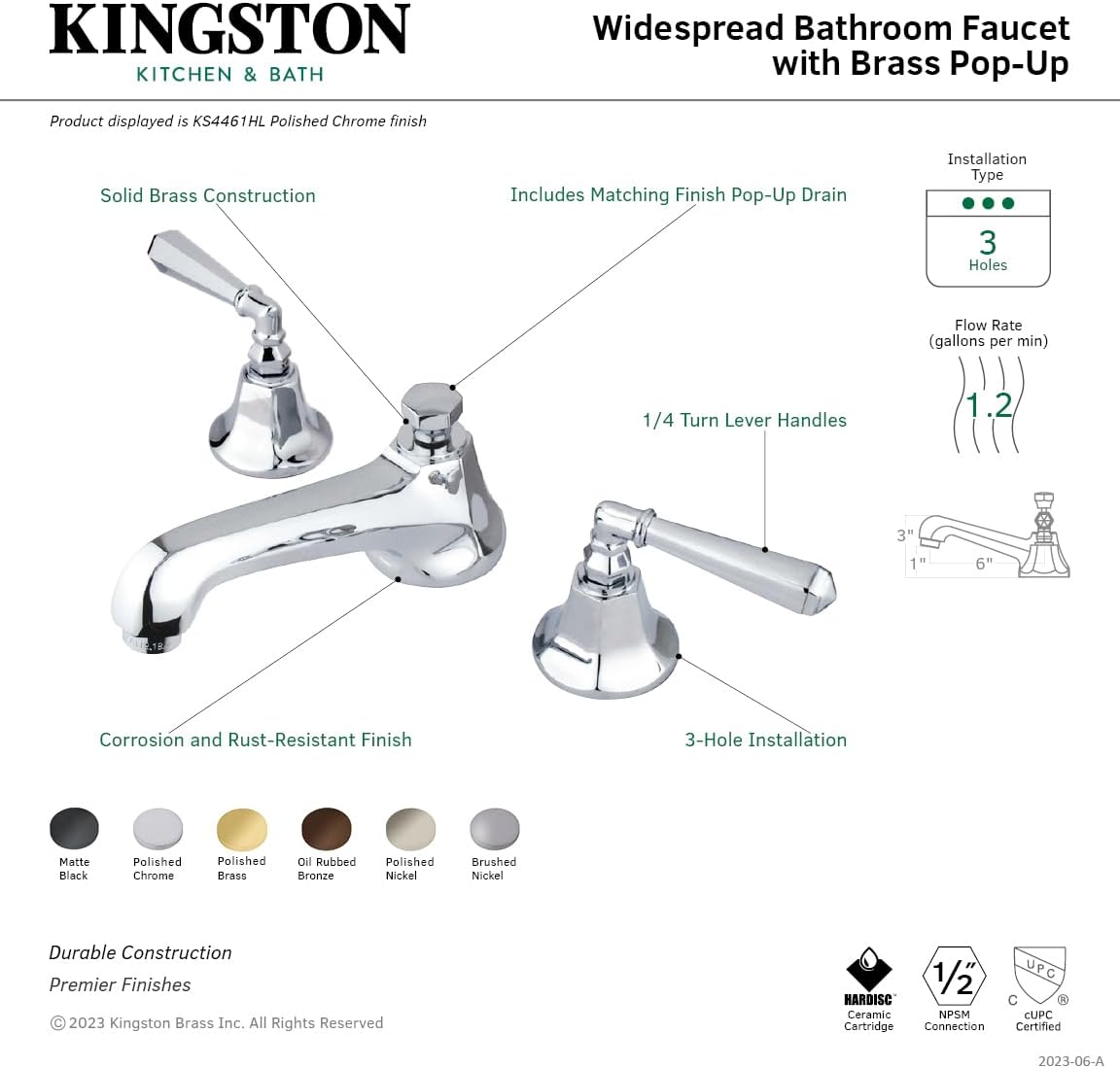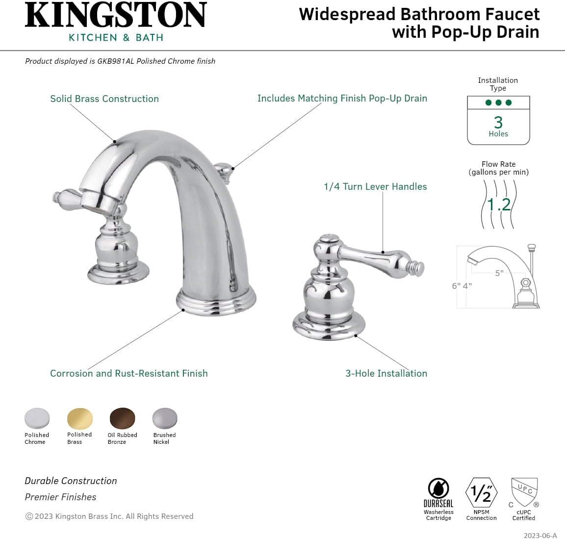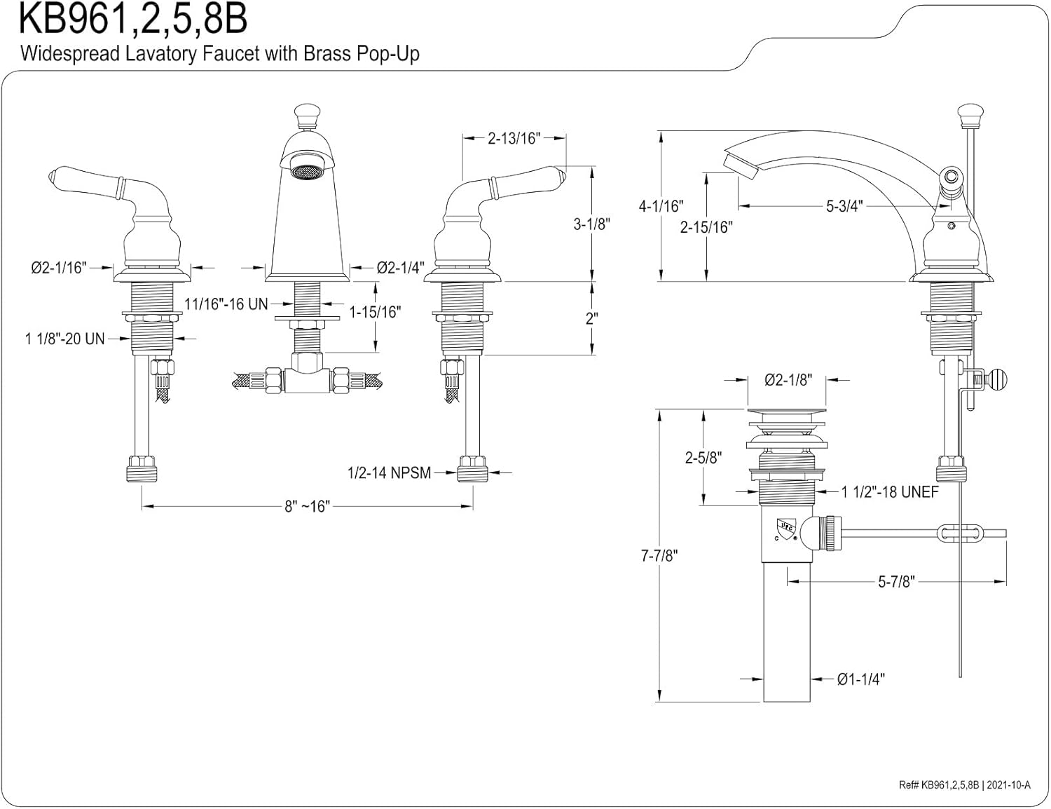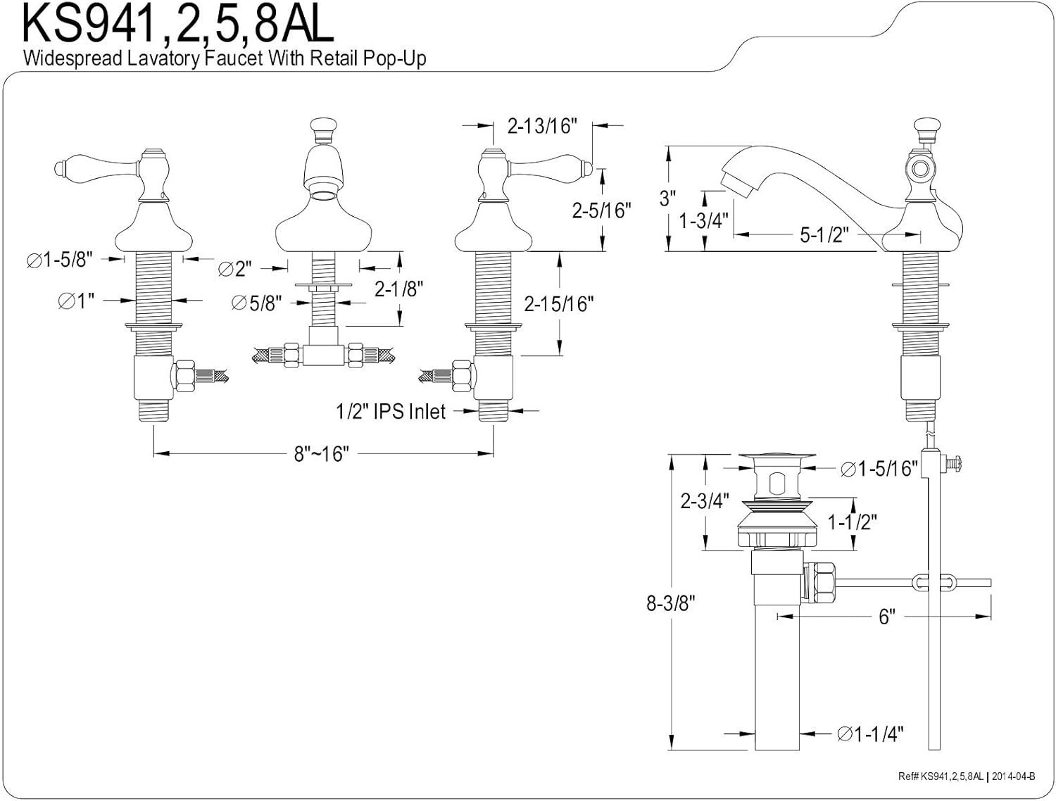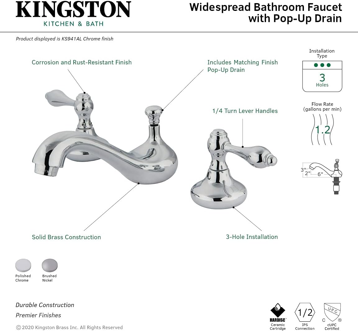 Kingston Brass GKB981AL Victorian 8-Inch Widespread Lavatory Faucet with Retail Pop-Up, 5-1/4 inch in Spout Reach, Polished Chrome