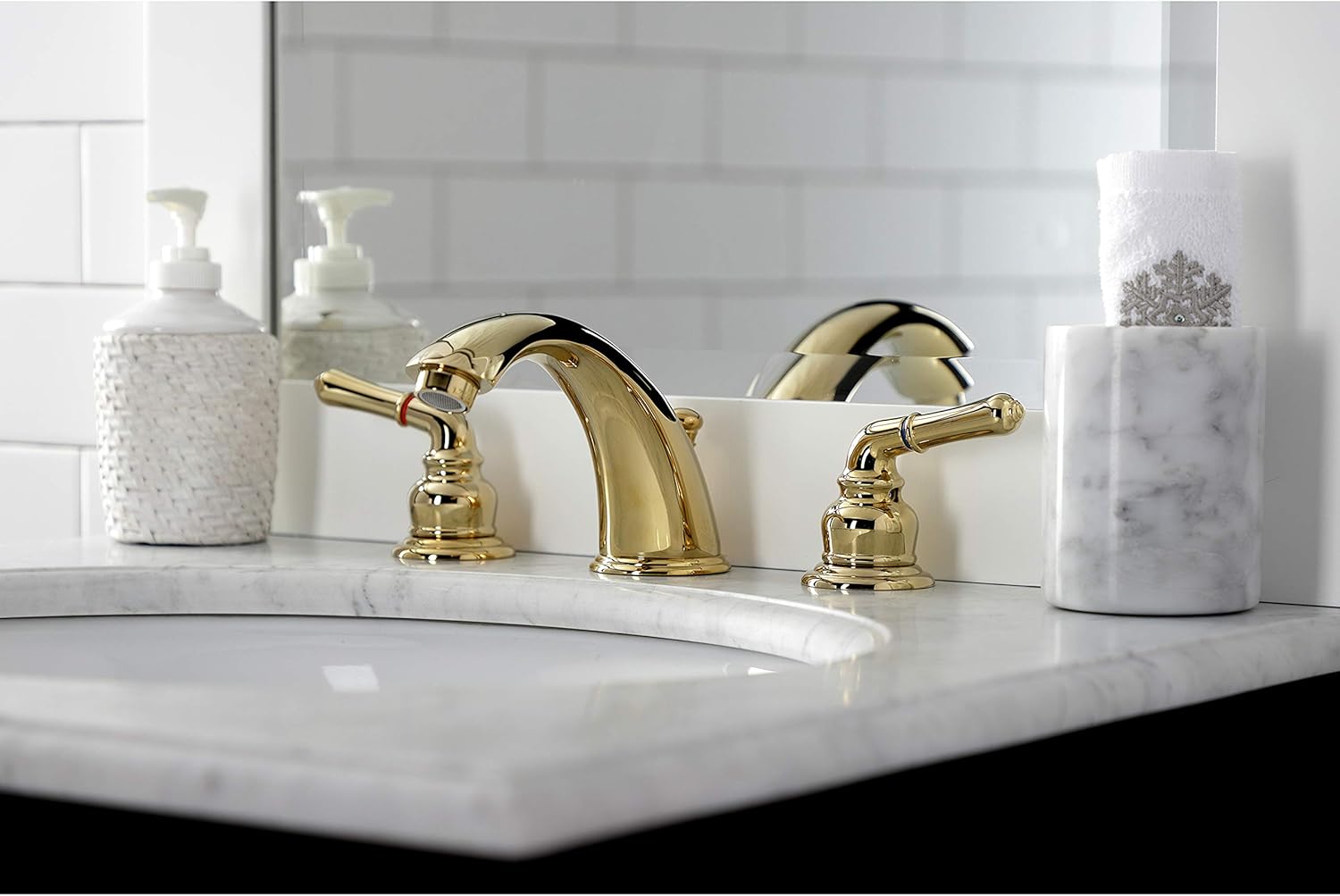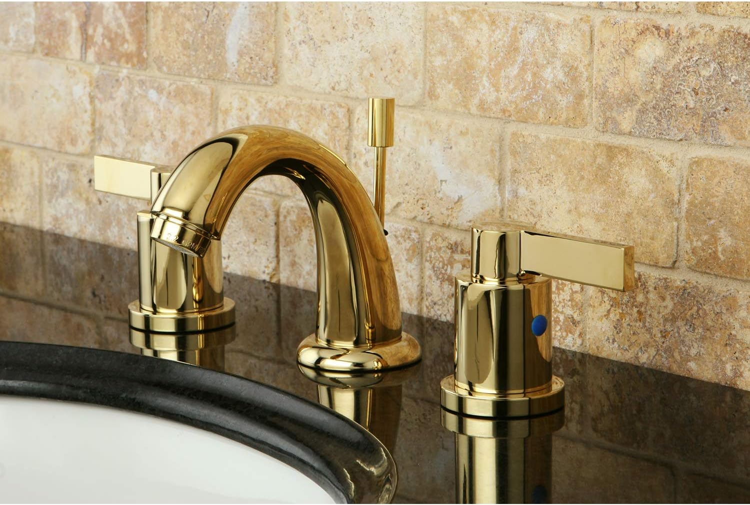 Kingston Brass GKB982AL Victorian 8-Inch Widespread Lavatory Faucet with Retail Pop-Up, 5-1/4 inch in Spout Reach, Polished Brass