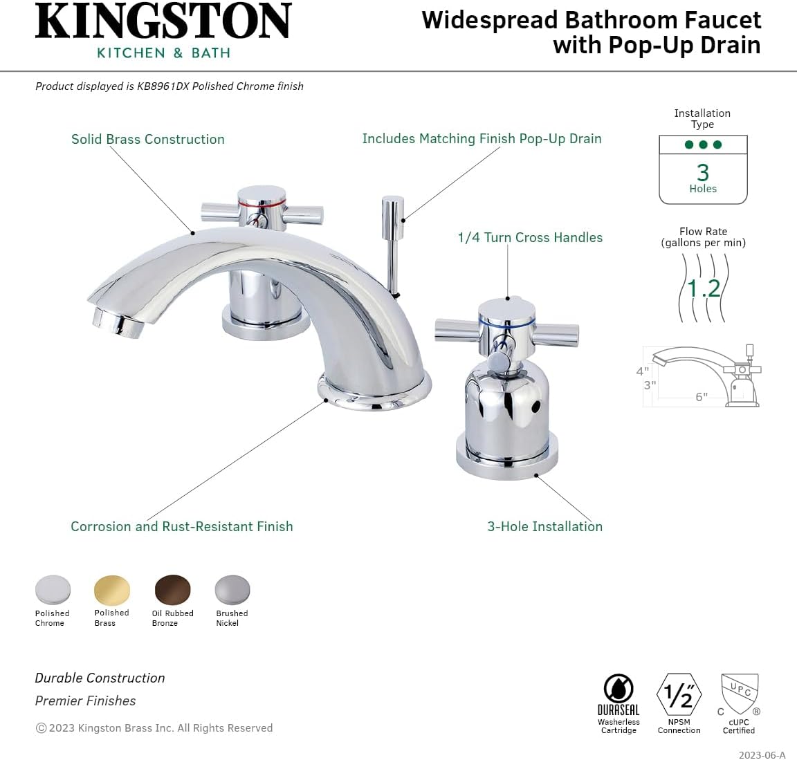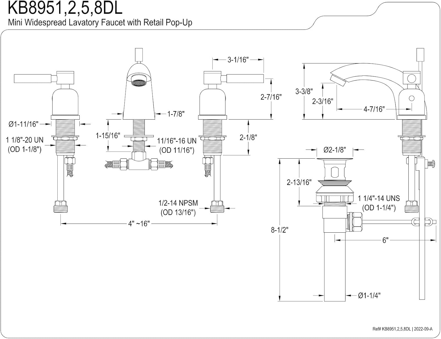 Kingston Brass KB8958DL Concord 4 to 8" Mini Widespread Lavatory Faucet with Retail Pop-up, Brushed Nickel