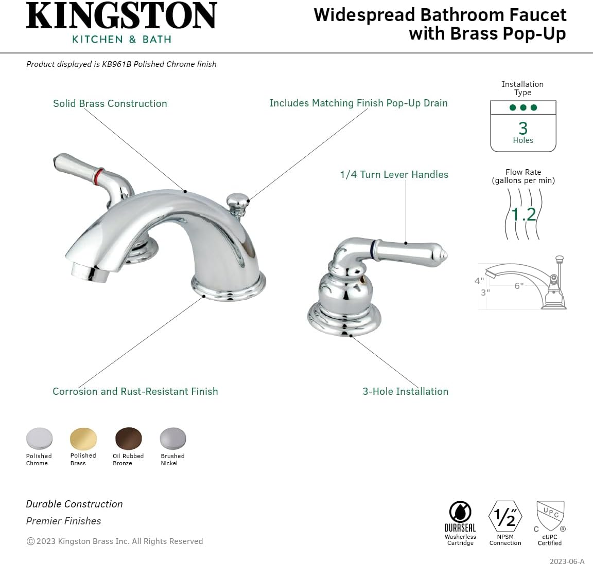 Kingston Brass KB961B Magellan Widespread Bathroom Faucet, 5-3/4 inch in Spout Reach, Polished Chrome