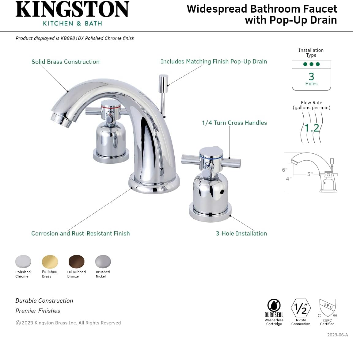 Kingston Brass KB8988DX Concord 8" Widespread Lavatory Faucet with Retail Pop-up, Brushed Nickel
