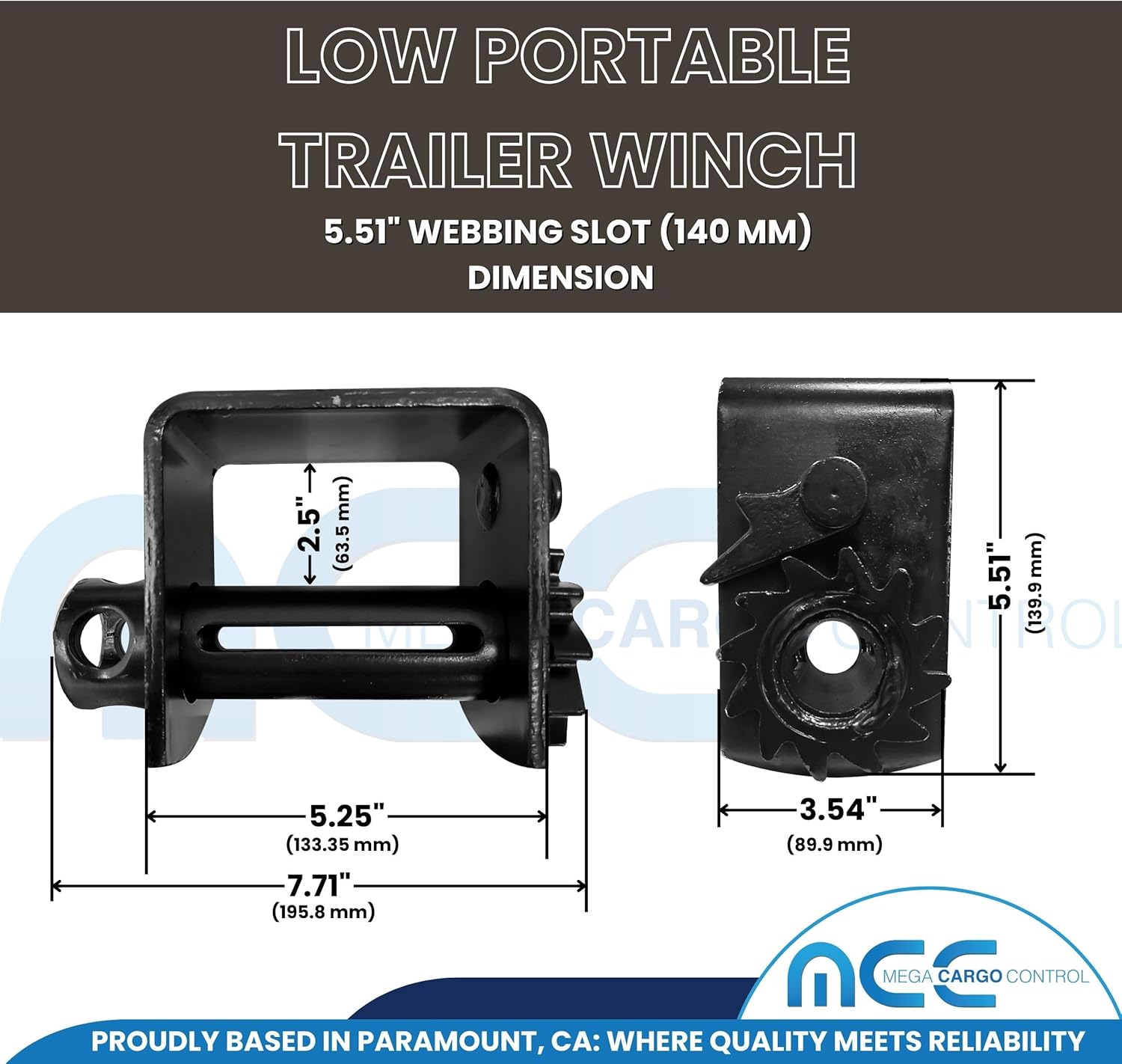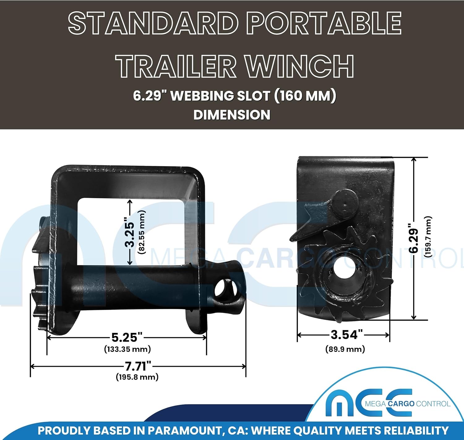 Mega Cargo Control Standard Weld On Trailer Winch - 5,000 LBS Working Load Limit, 6.29" Webbing Slot (160 MM) 4 - Pack