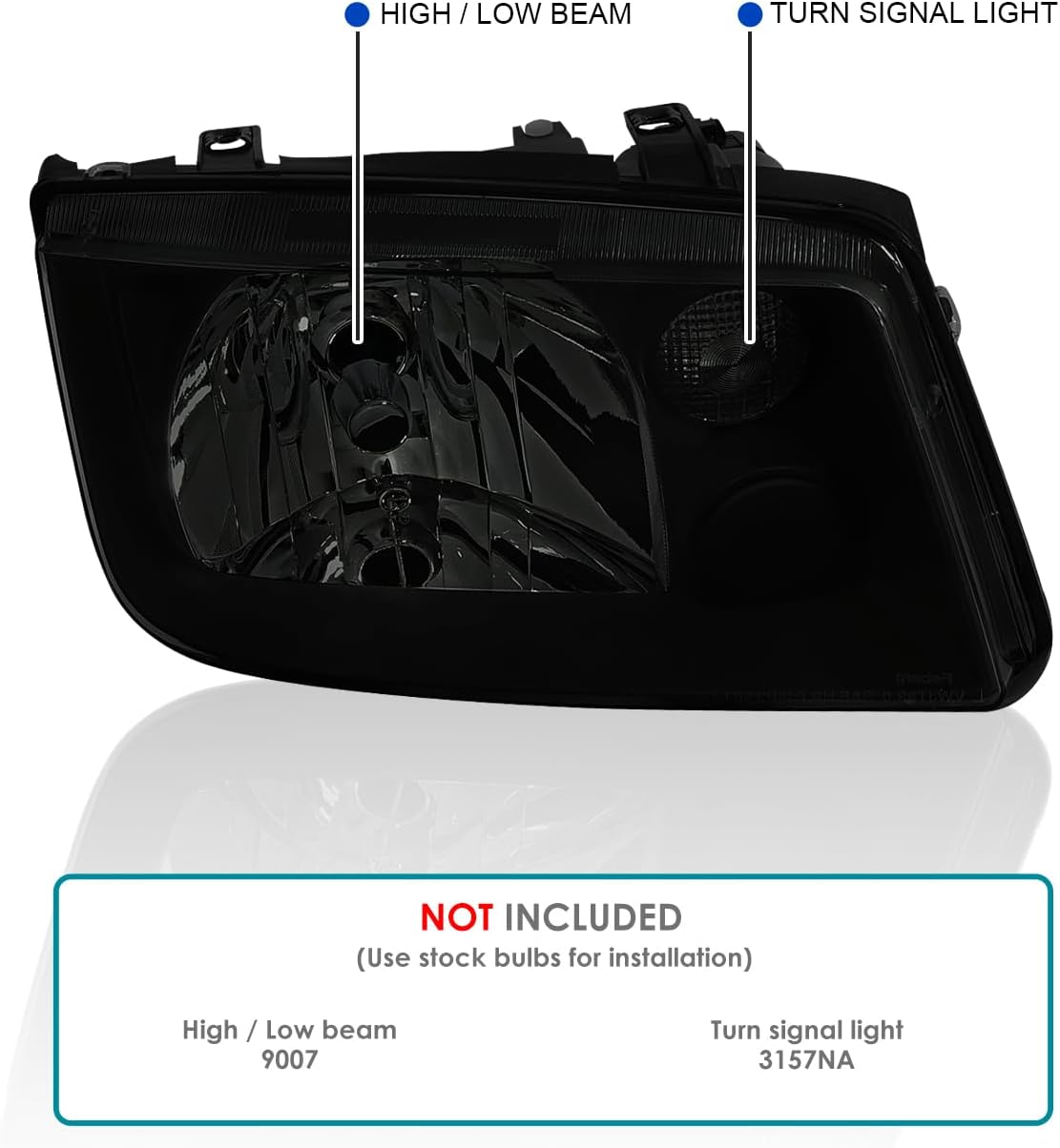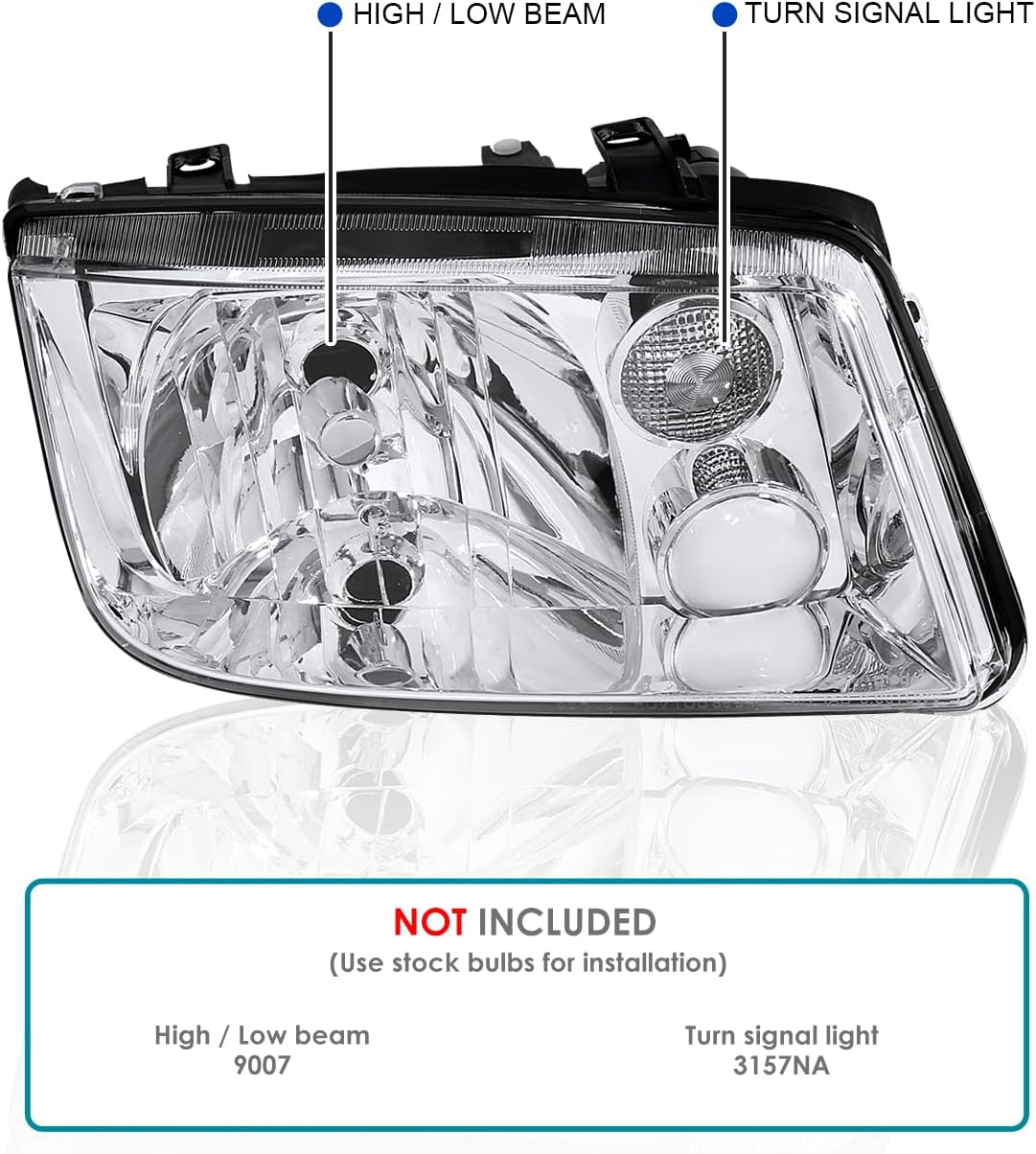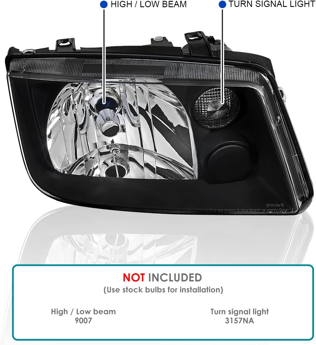 SPEC-D TUNING Clear w/o Built-in Fog Lights Compatible with 1999-2005 Volkswagen Jetta Bora Mk4 L+R Pair Head Light Lamp Assembly