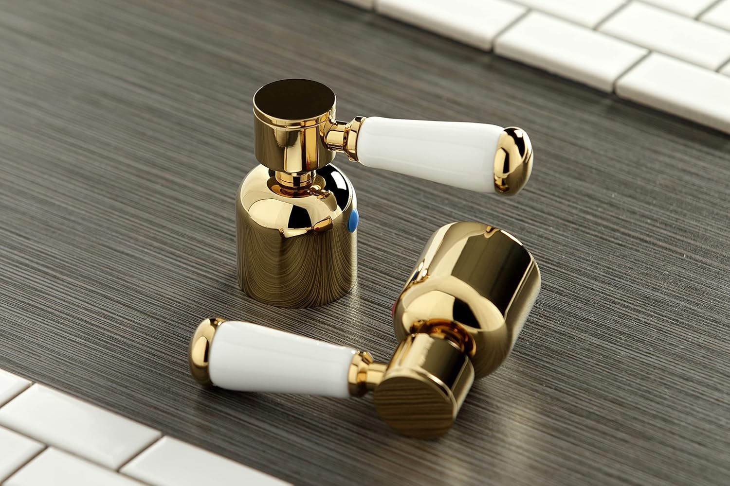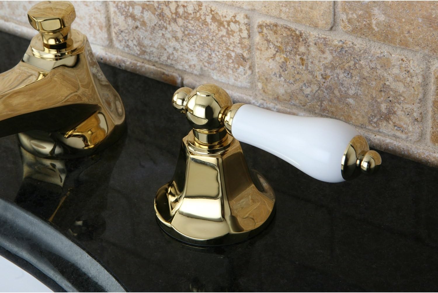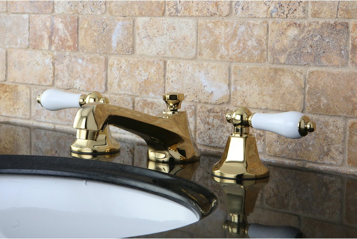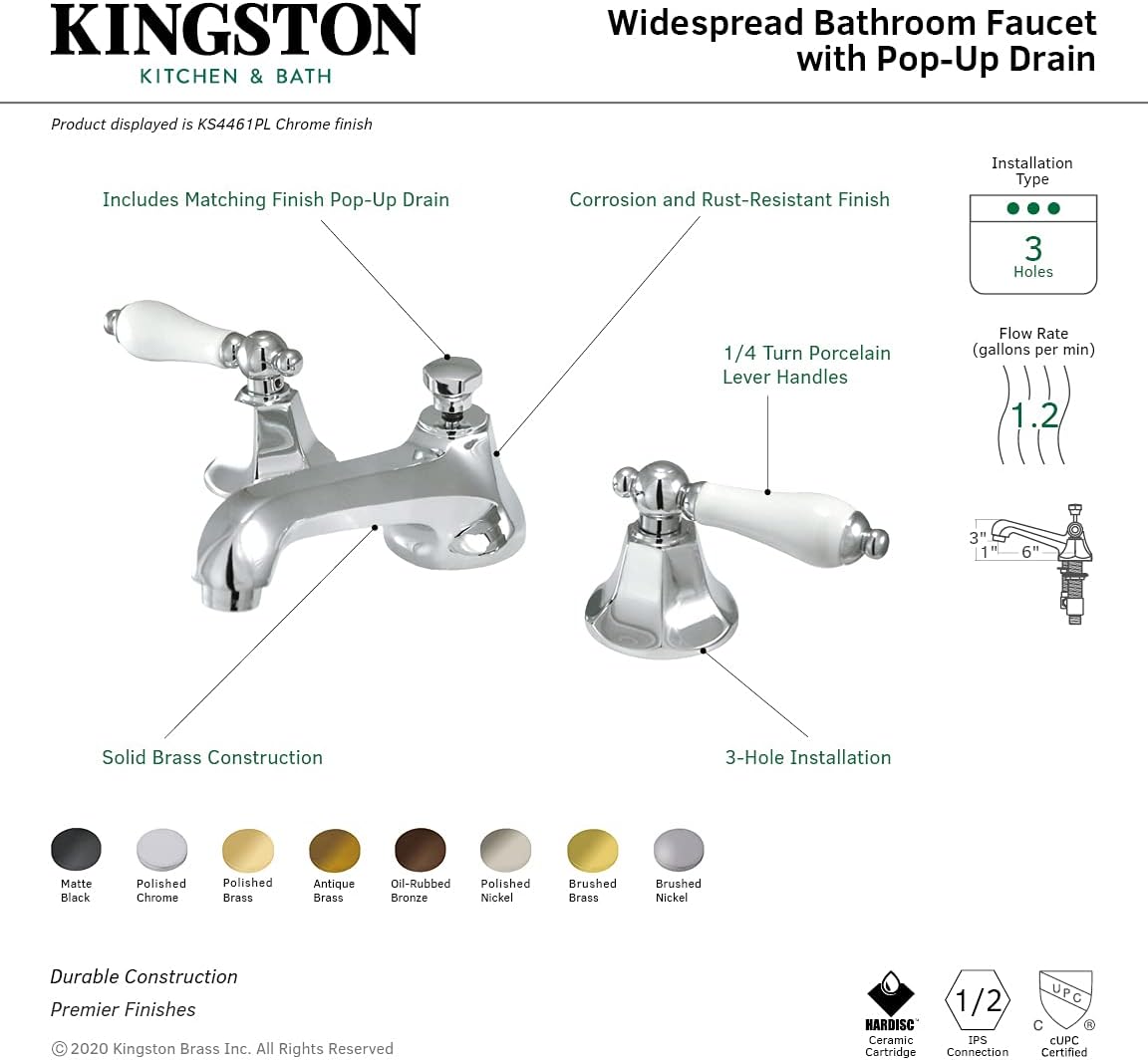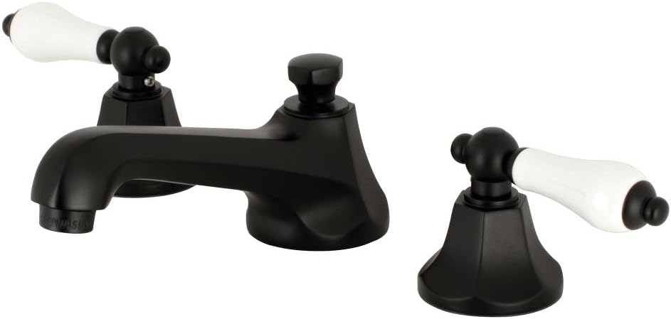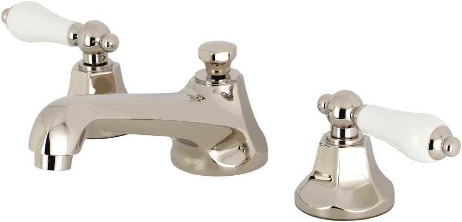Kingston Brass KS4462PL Metropolitan Widespread Lavatory Faucet with Porcelain Lever Handle, Polished Brass, 8-Inch Adjustable Center