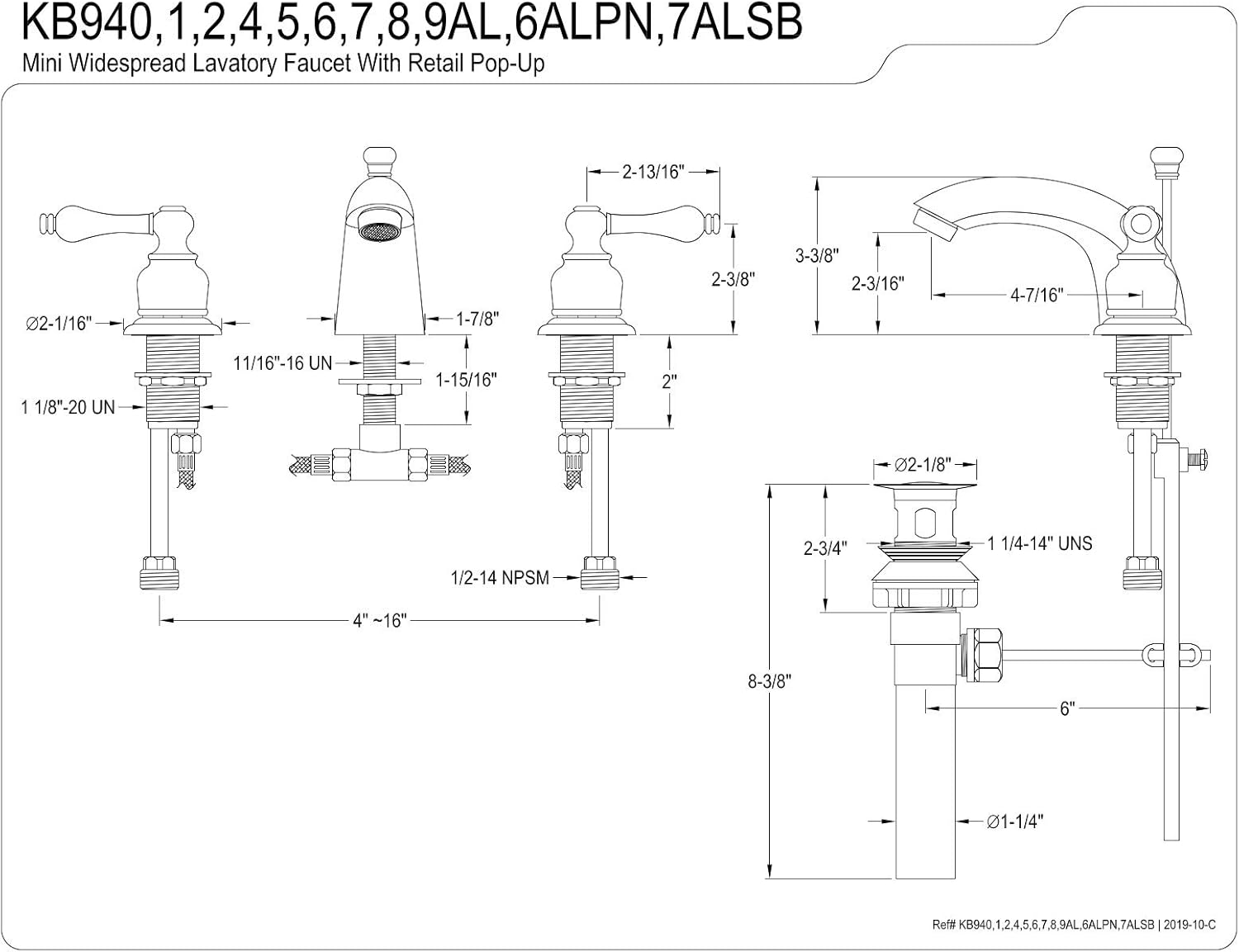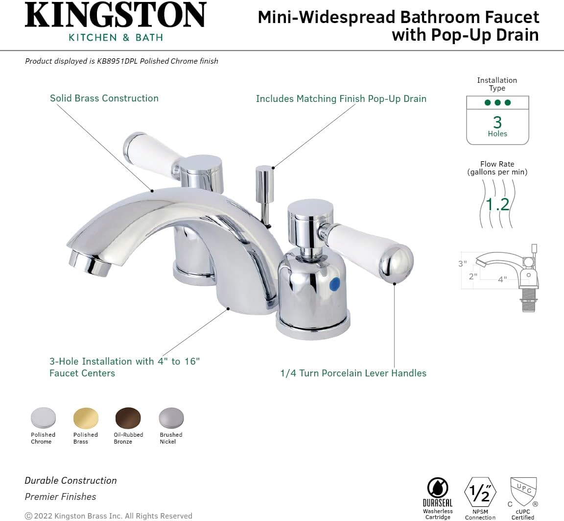 Kingston Brass KB947AL Victorian Mini Widespread Lavatory Faucet, Brushed Nickel and Polished Chrome