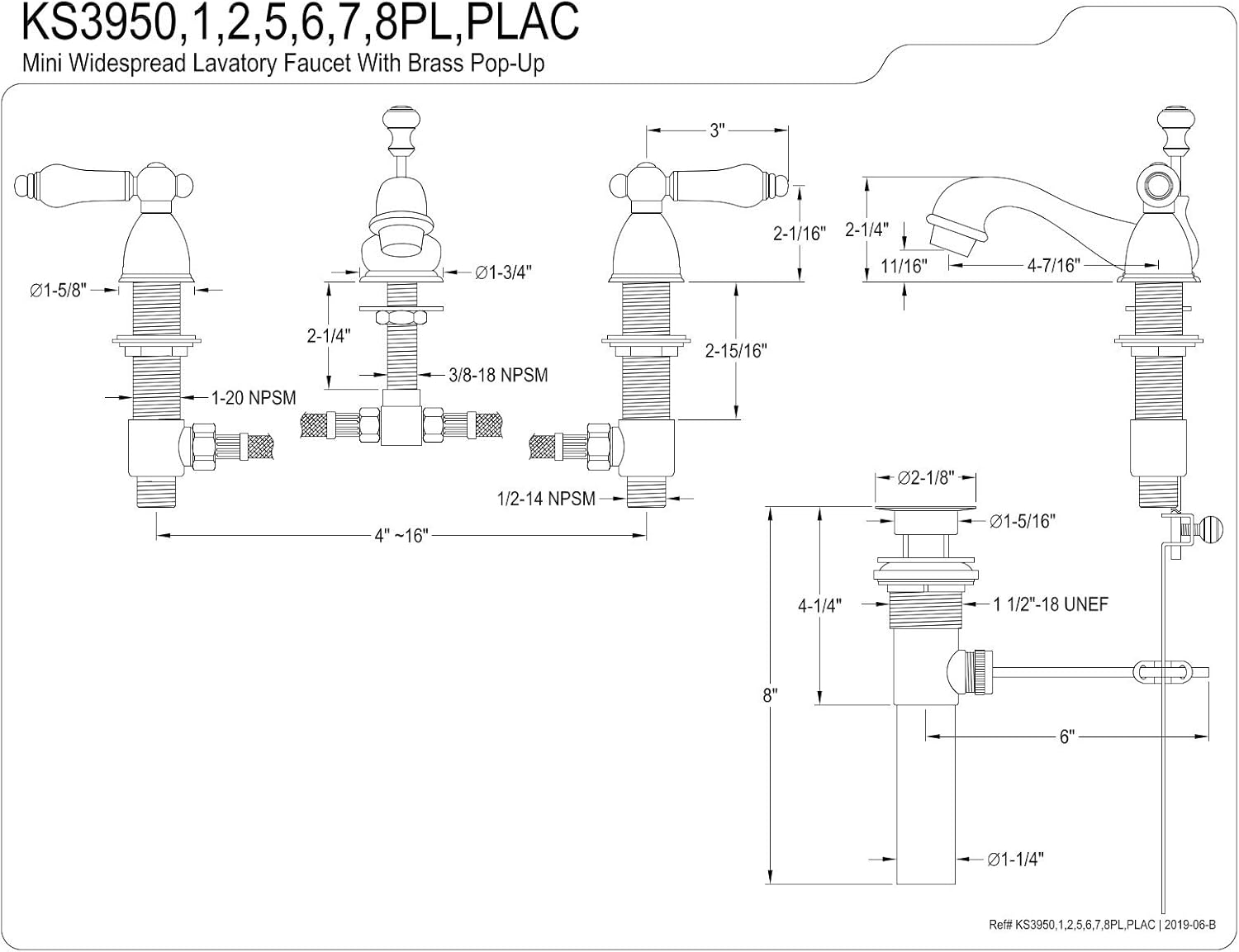 Kingston Brass KB8958DPL Paris 4 to 8" Mini Widespread Lavatory Faucet with Retail Pop-up, Brushed Nickel