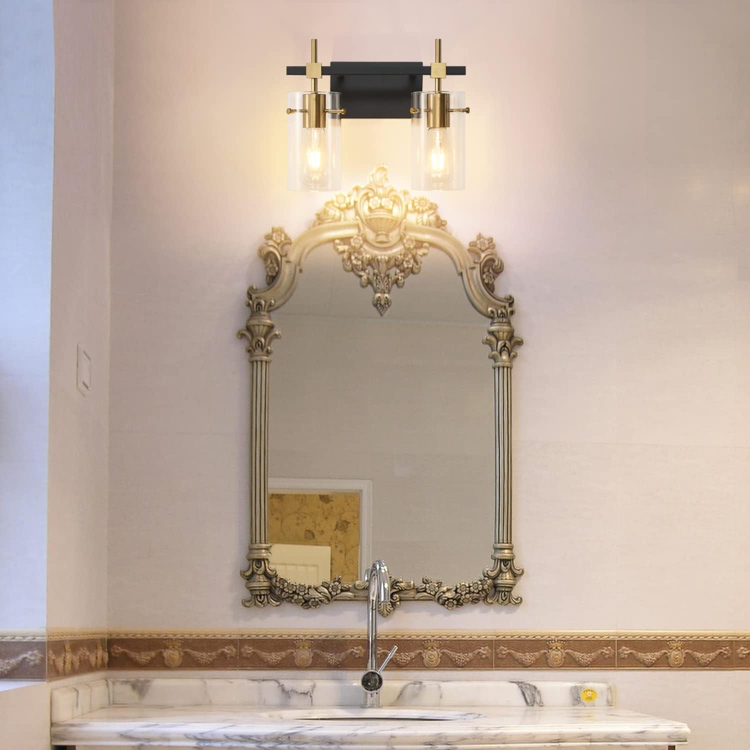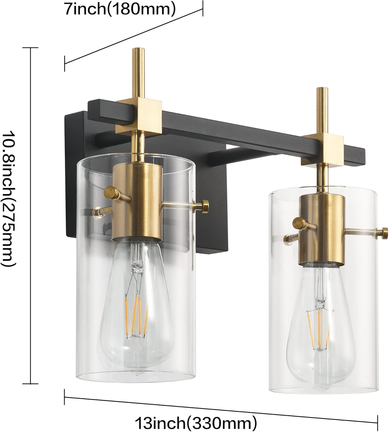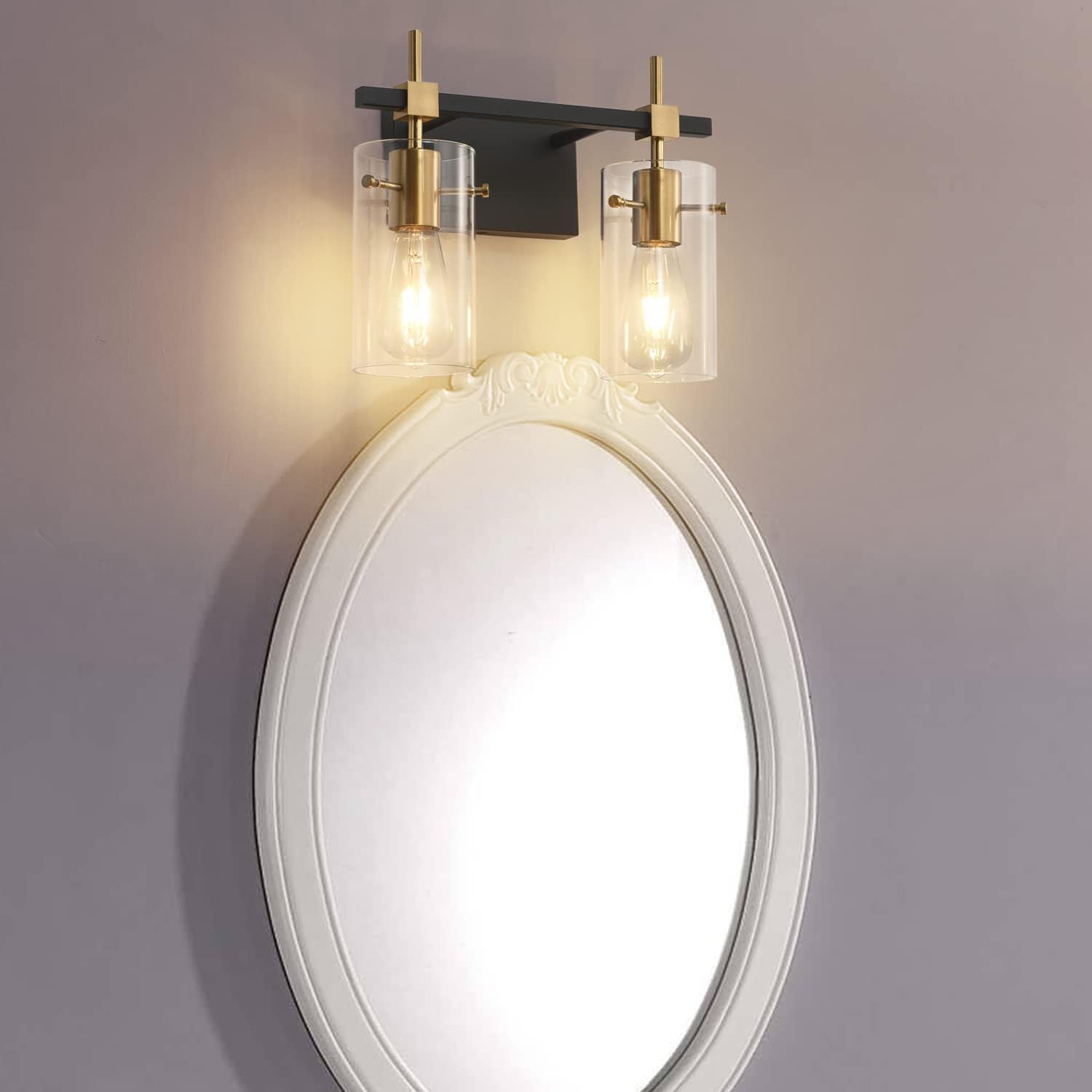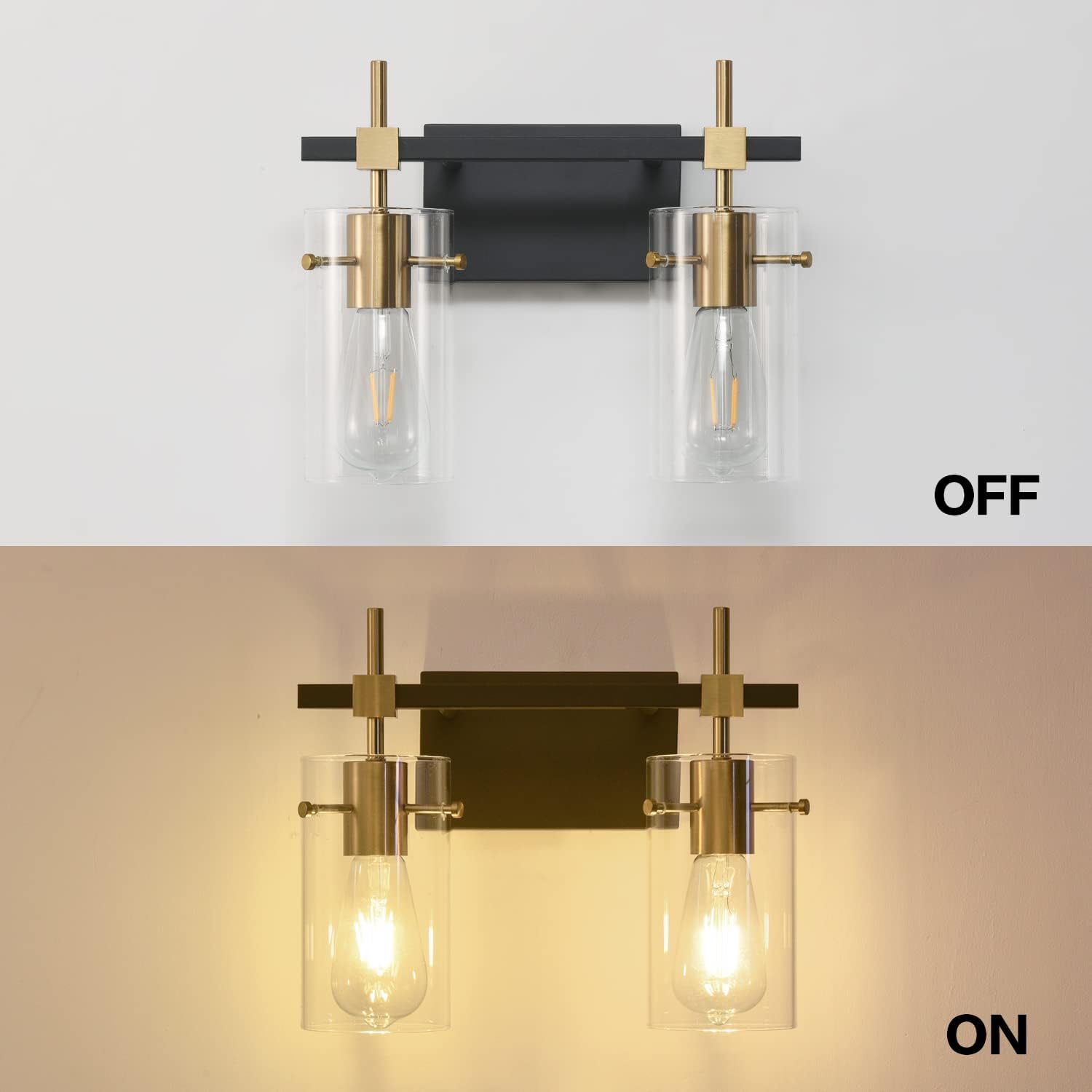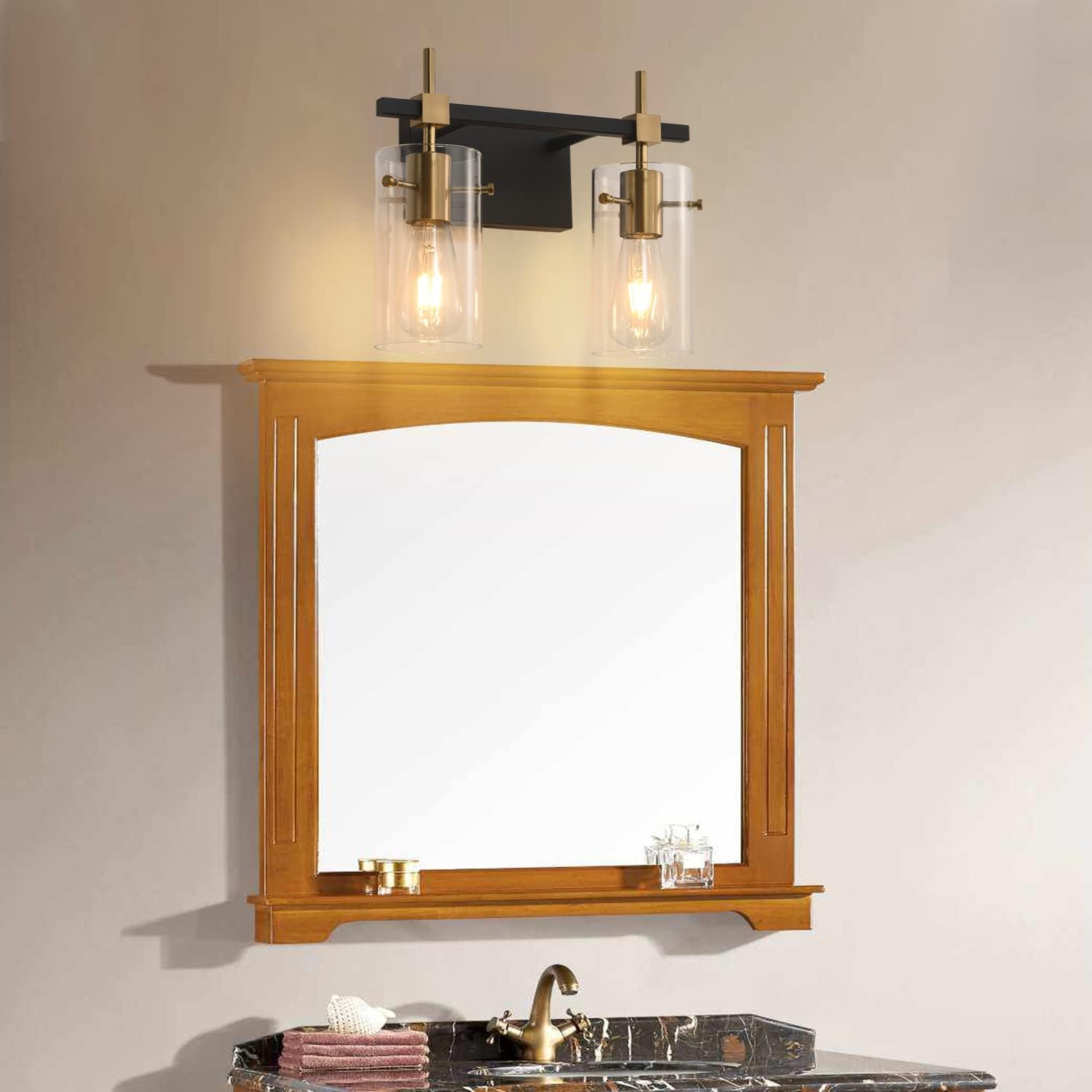 SOLFART Vintage Vanity Lights Bathroom Light Fixture Over Mirror for Bath Glass Shade Light Black and Brass Modern Style 3 Lights