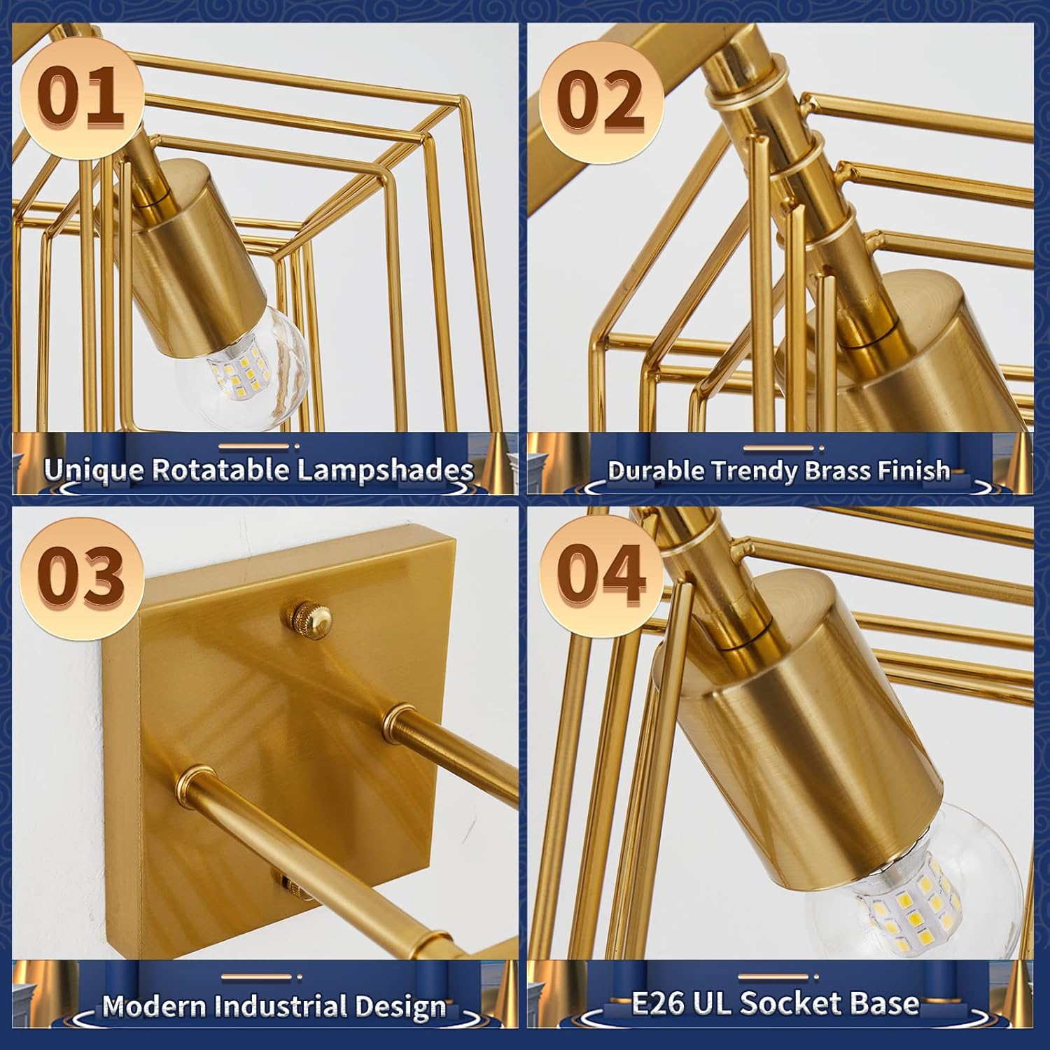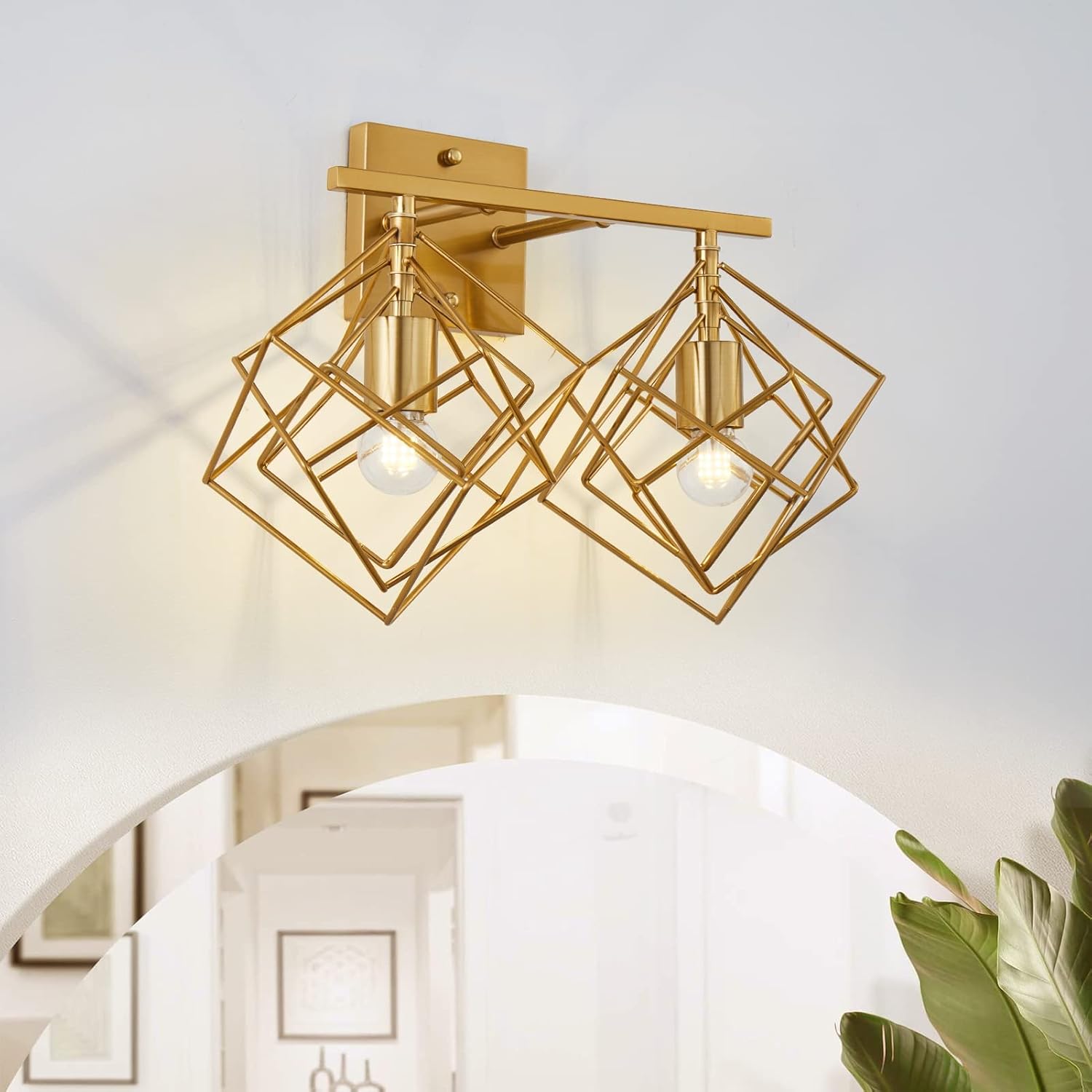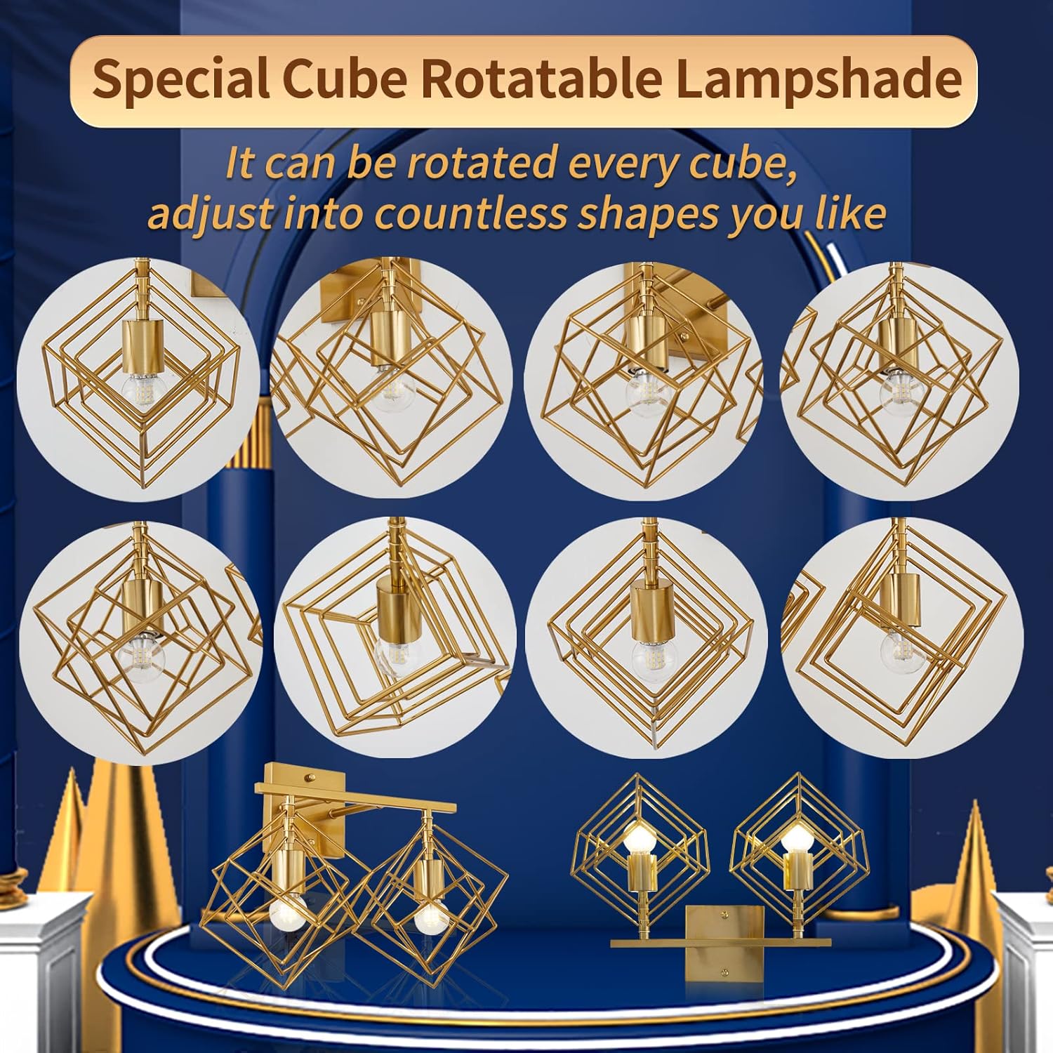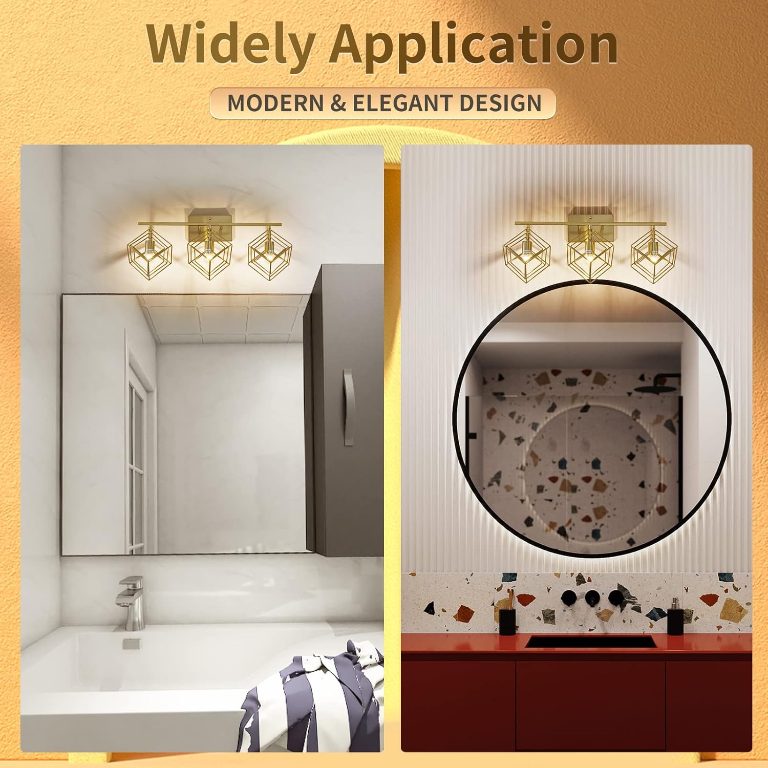 Bathroom Vanity Light with 3 Bulbs Bathroom Light Fixtures Over Mirror with 3 Rotatable Cube Shades Modern Wall Mounted Brushed Brass Gold