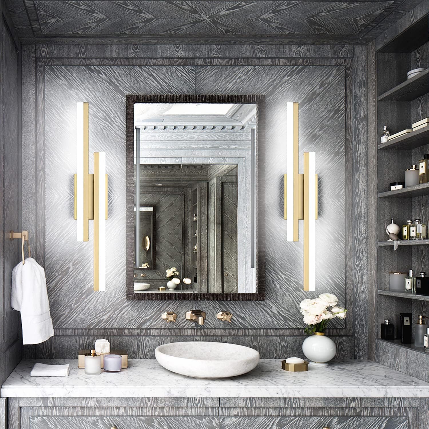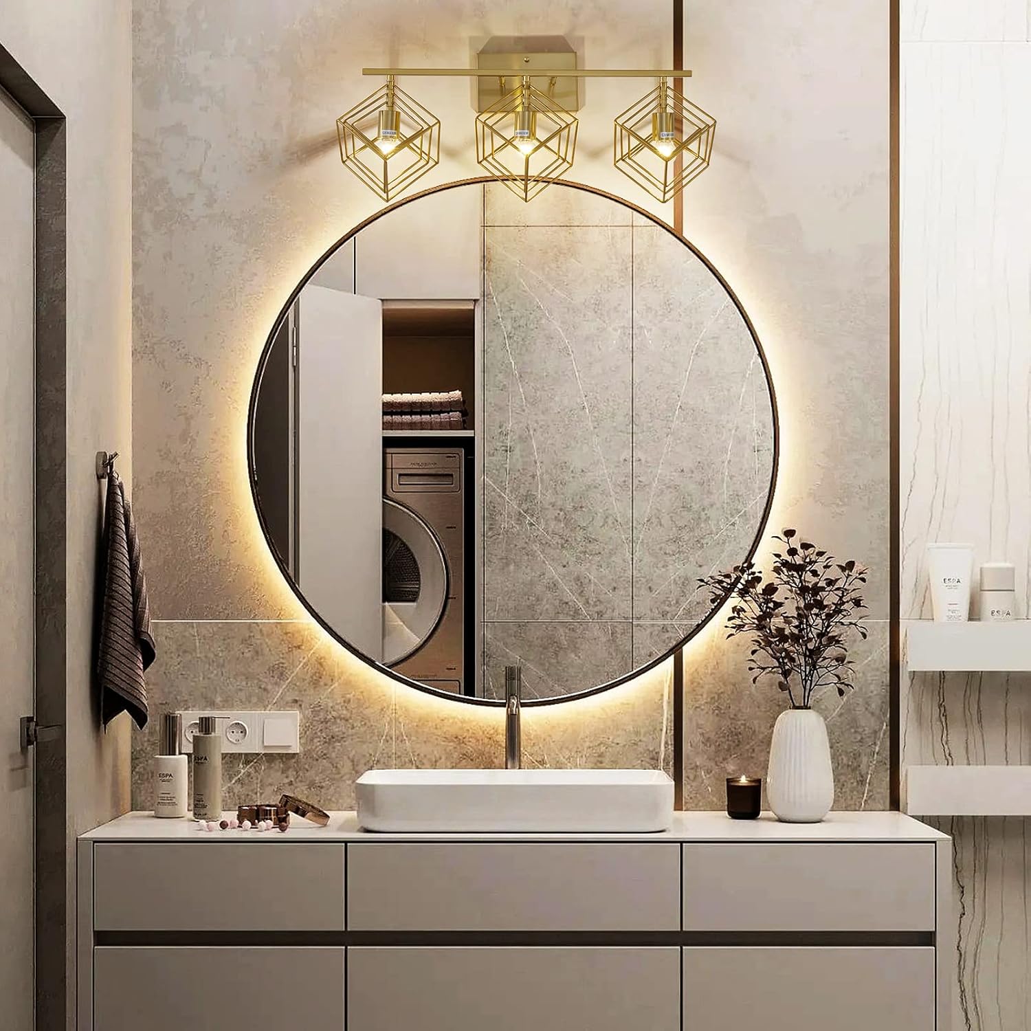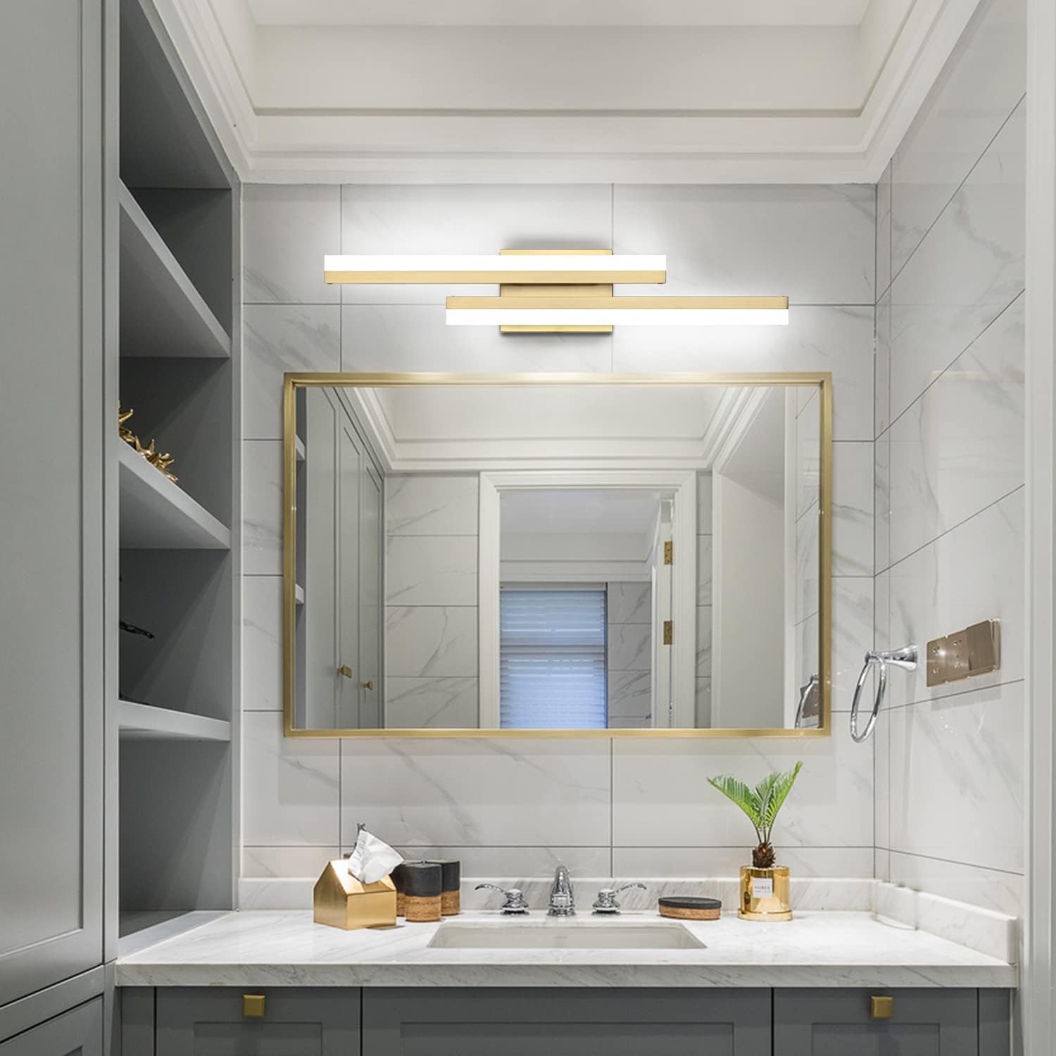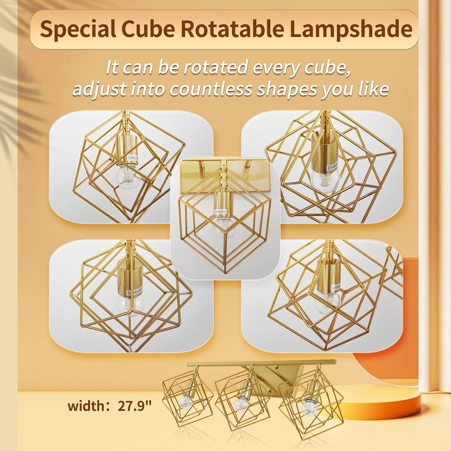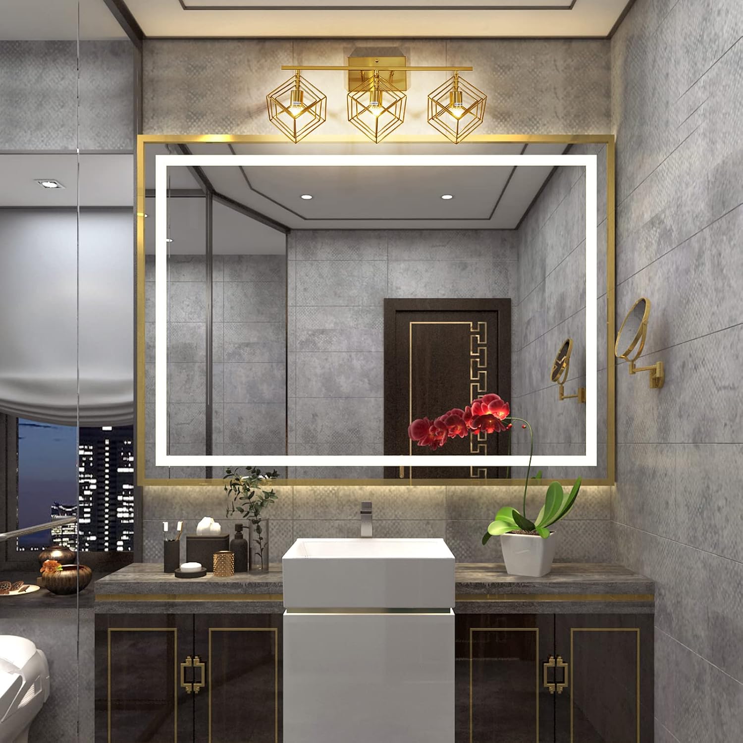 Bathroom Vanity Light with 3 Bulbs Bathroom Light Fixtures Over Mirror with 3 Rotatable Cube Shades Modern Wall Mounted Brushed Brass Gold
