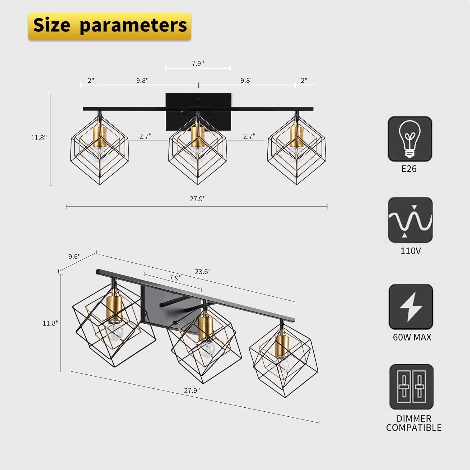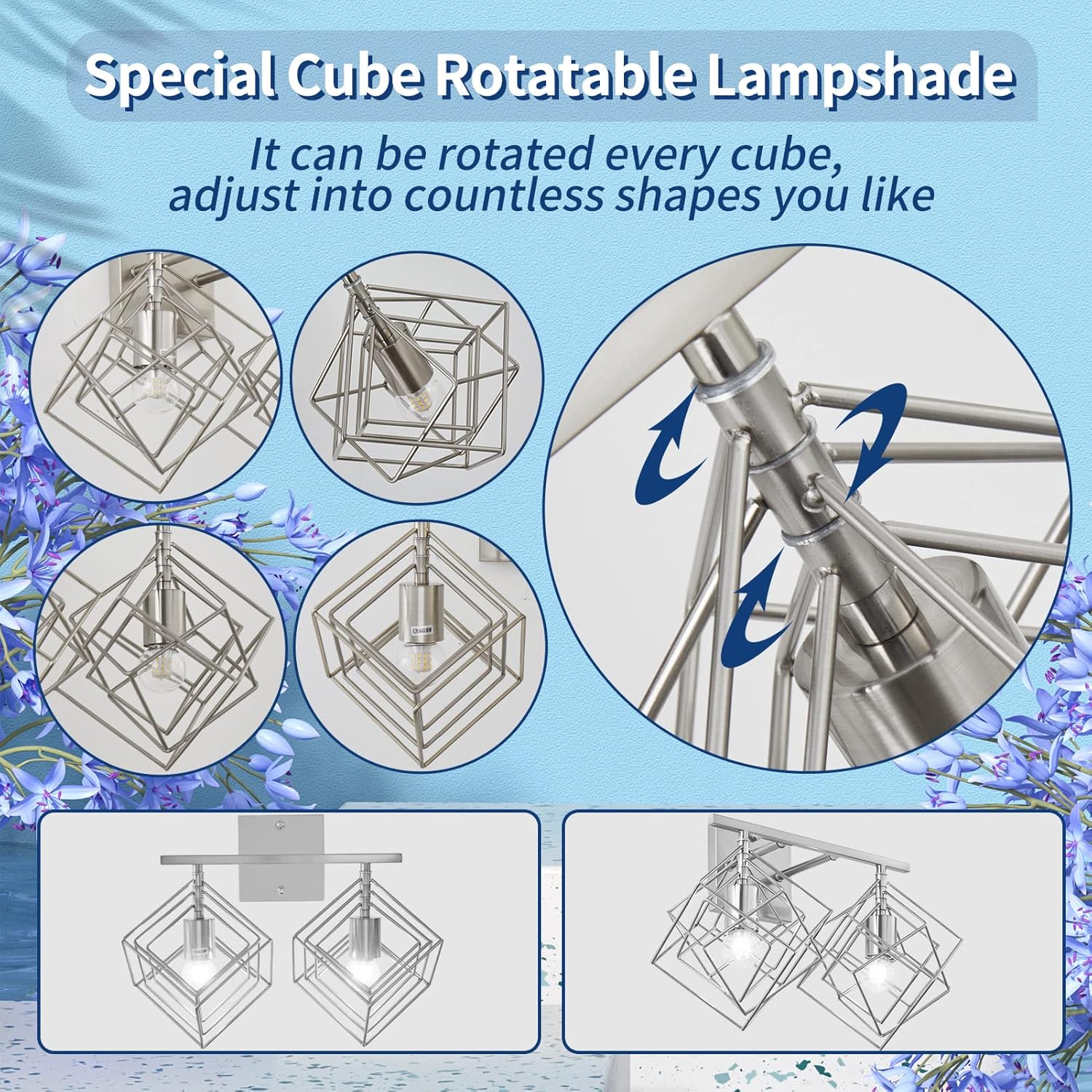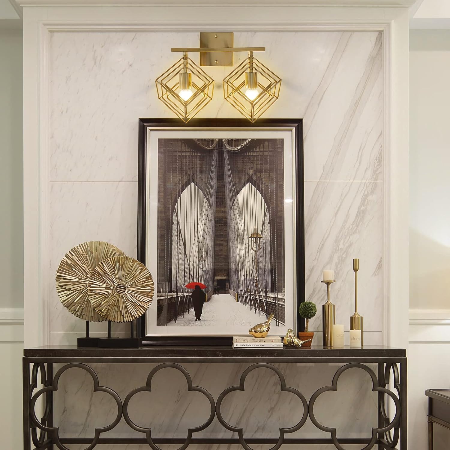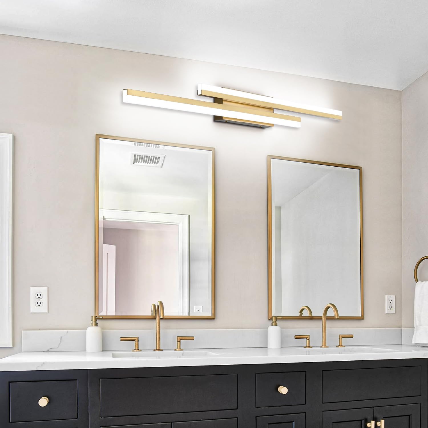 Bathroom Vanity Light with 3 Bulbs Bathroom Light Fixtures Over Mirror with 3 Rotatable Cube Shades Modern Wall Mounted Brushed Brass Gold