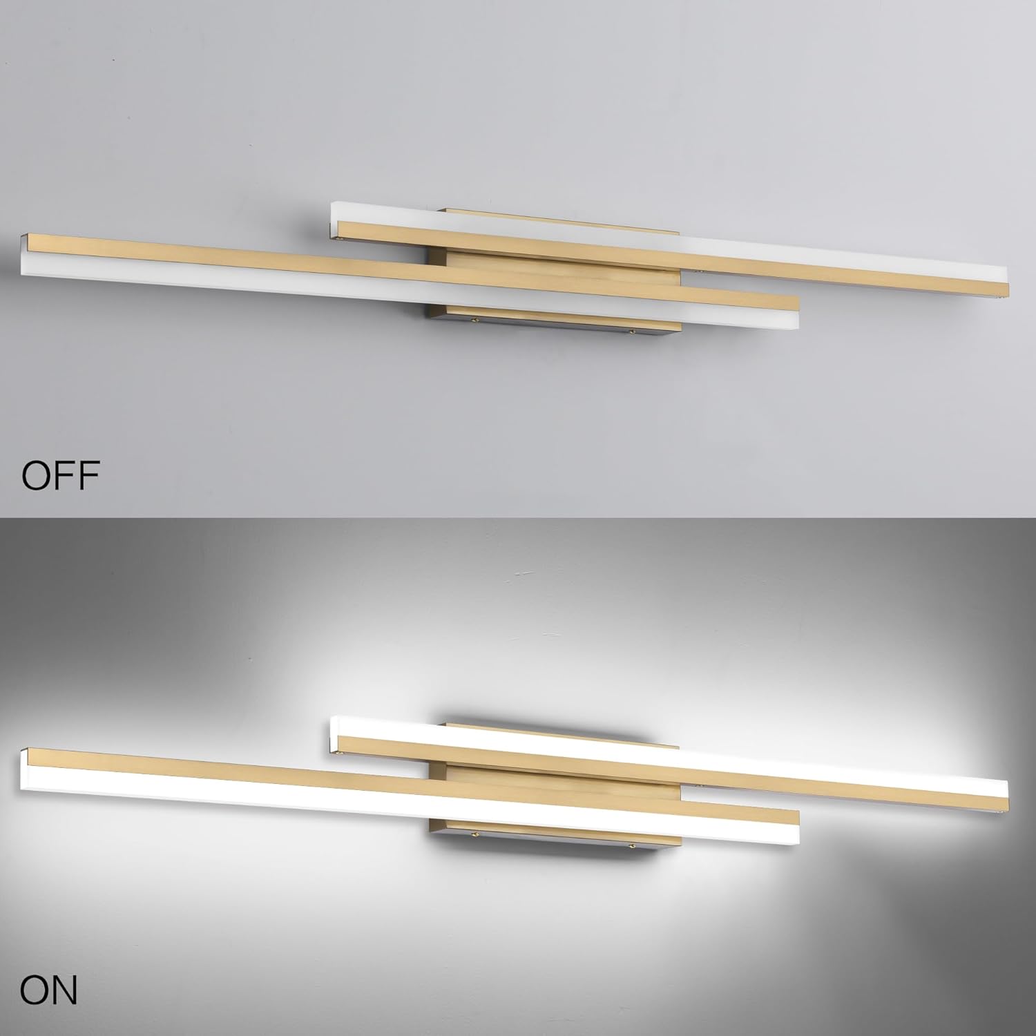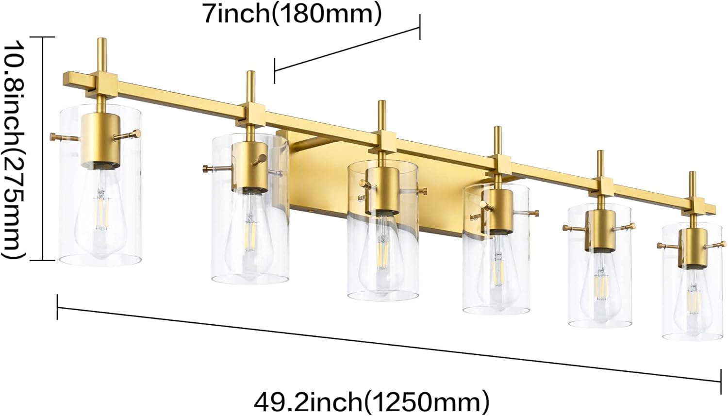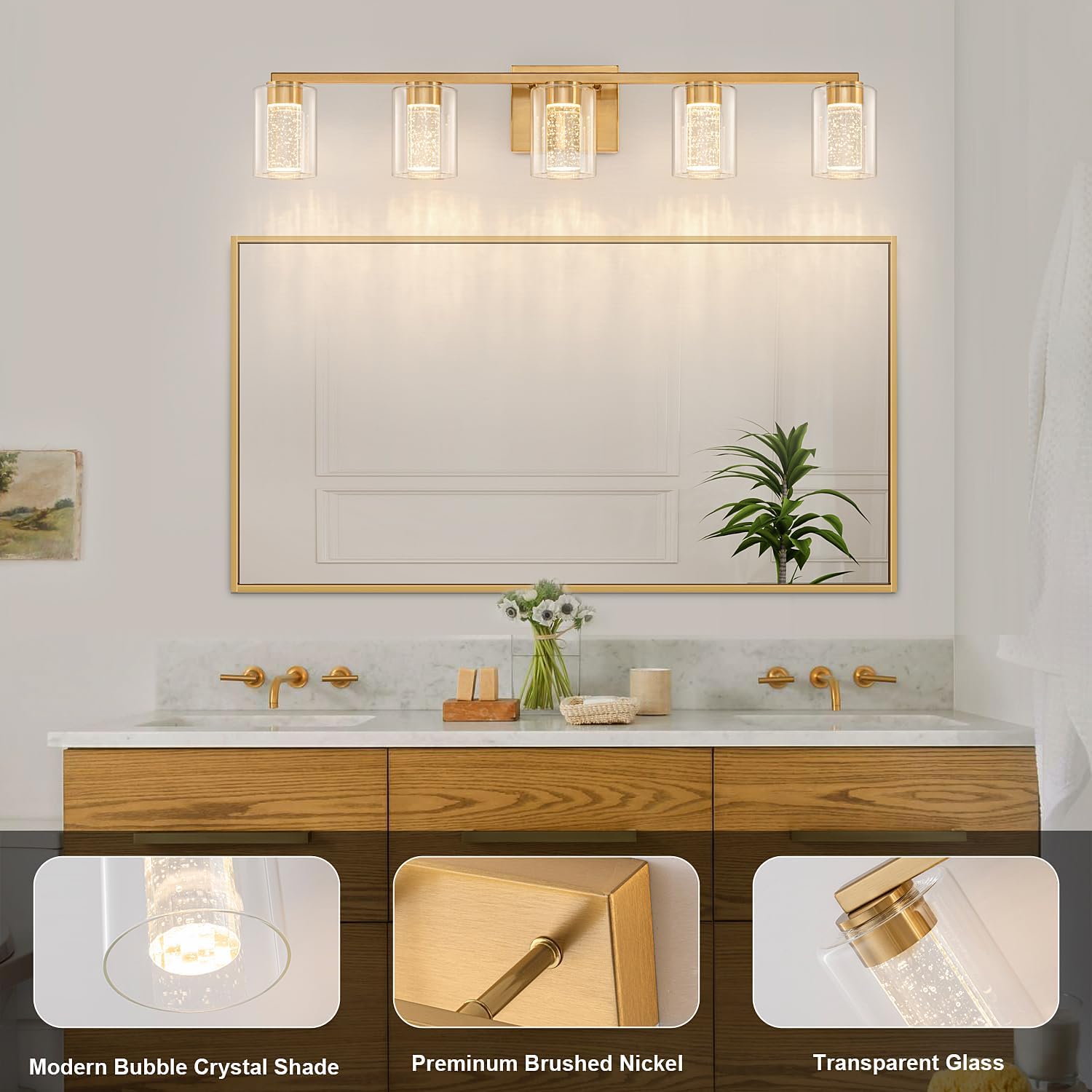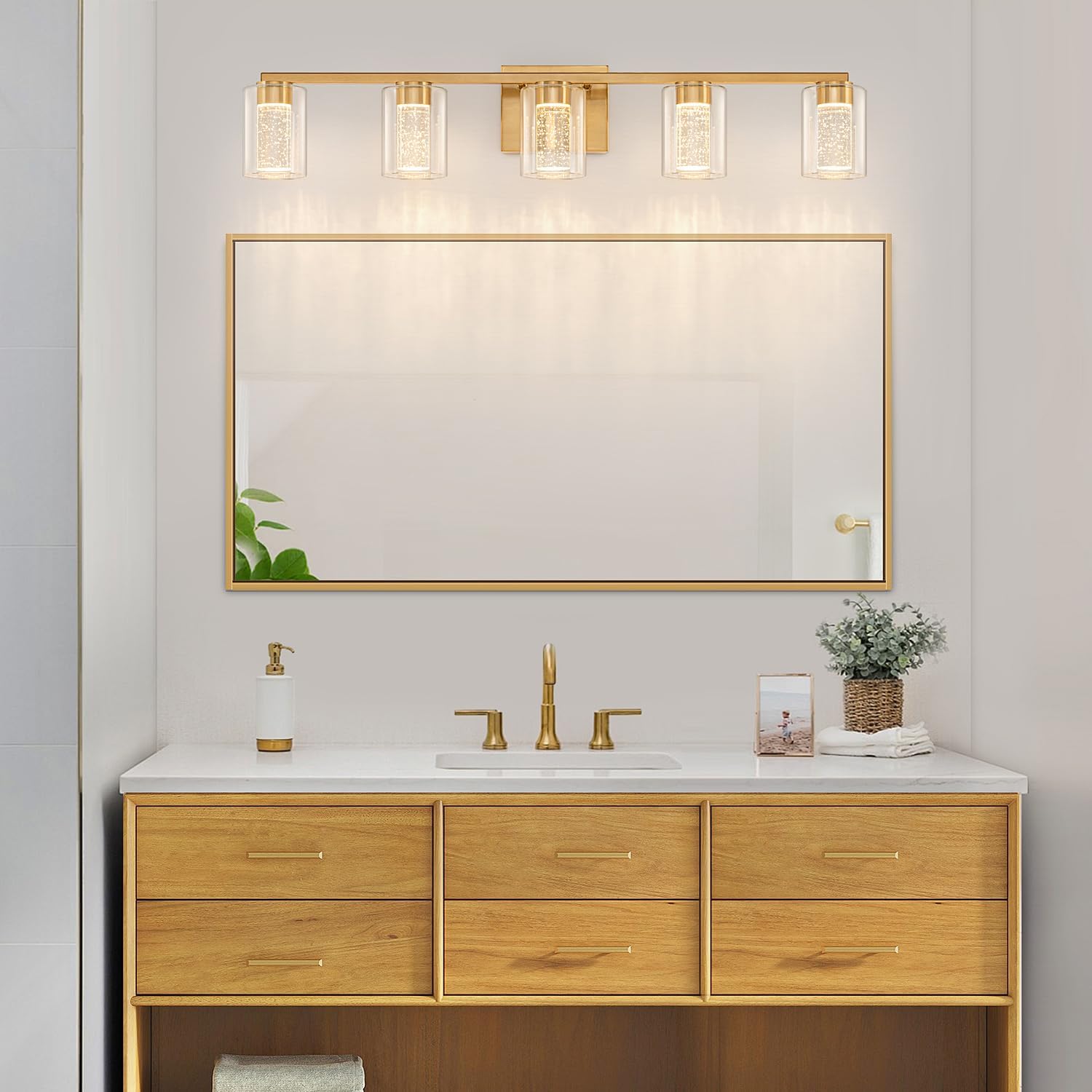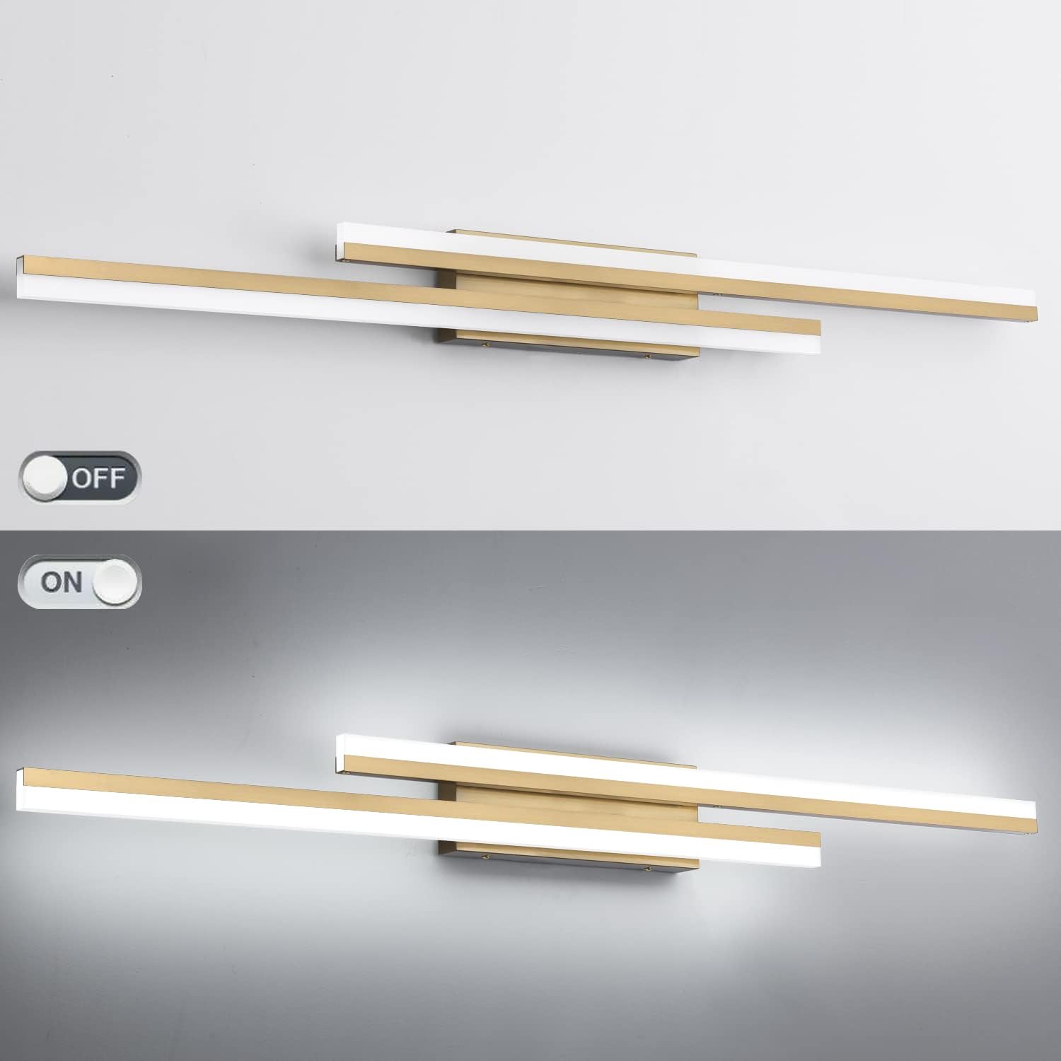 SineRise 3-Light Gold Vanity Light with 3 Color Modes (3000K/4000K/6000K), Eye Protection LED Bathroom Light Fixture, Dimmable Modern Wall Light Over Mirror with Clear Glass Shade