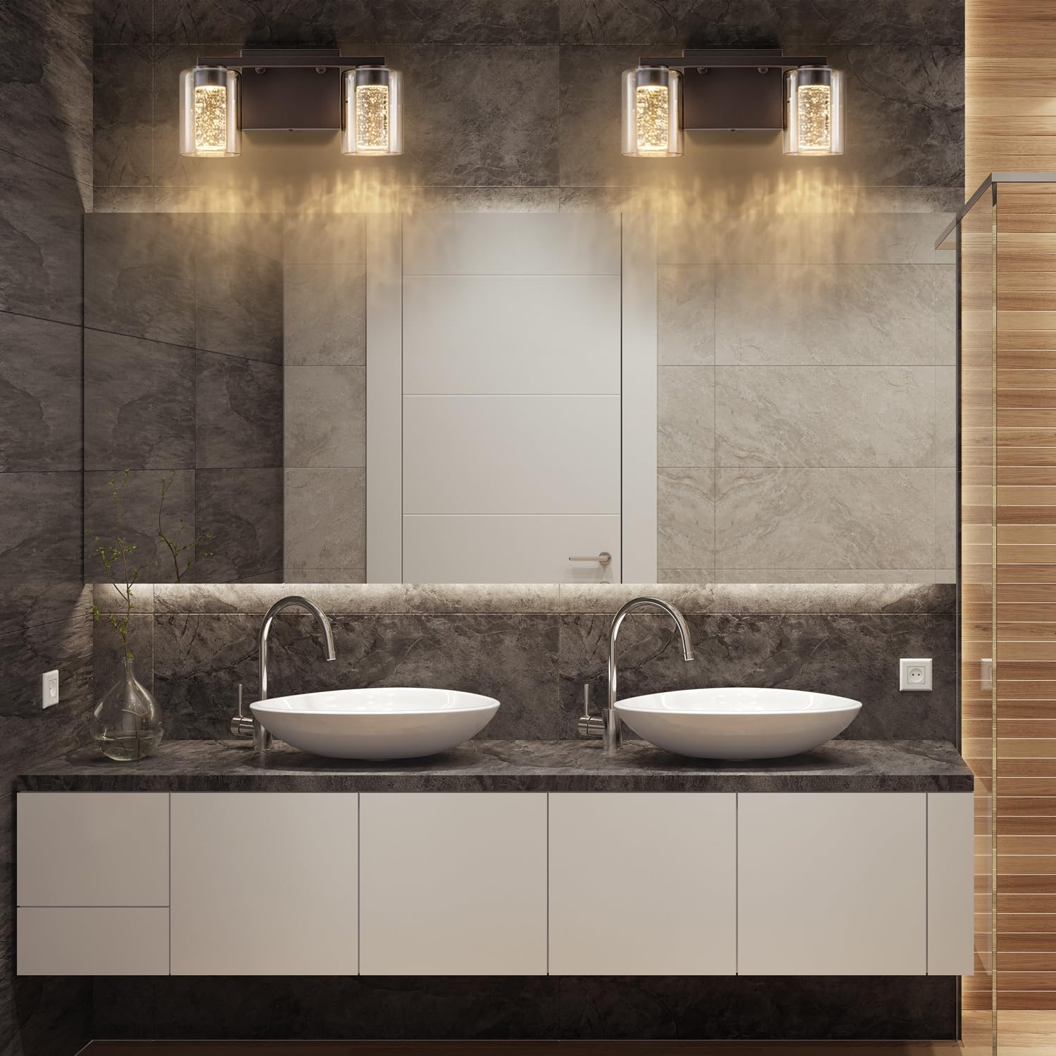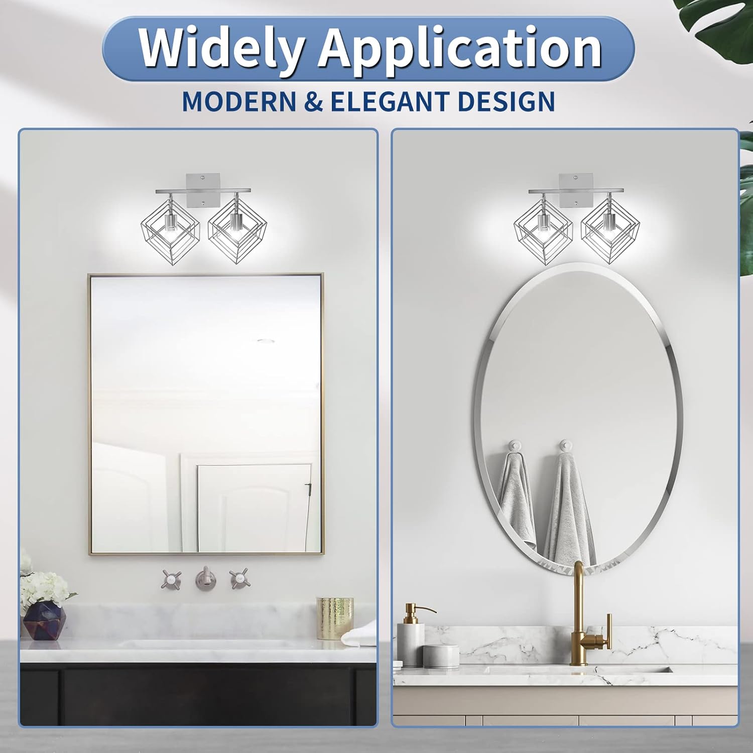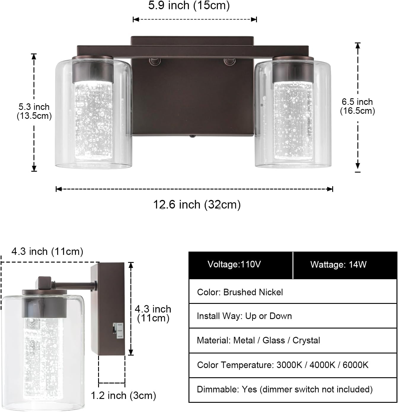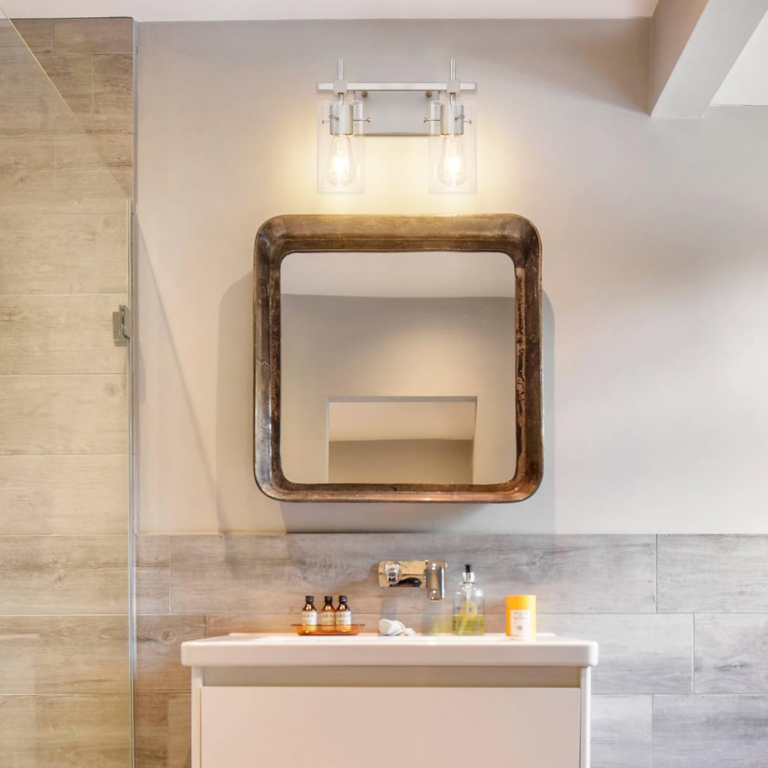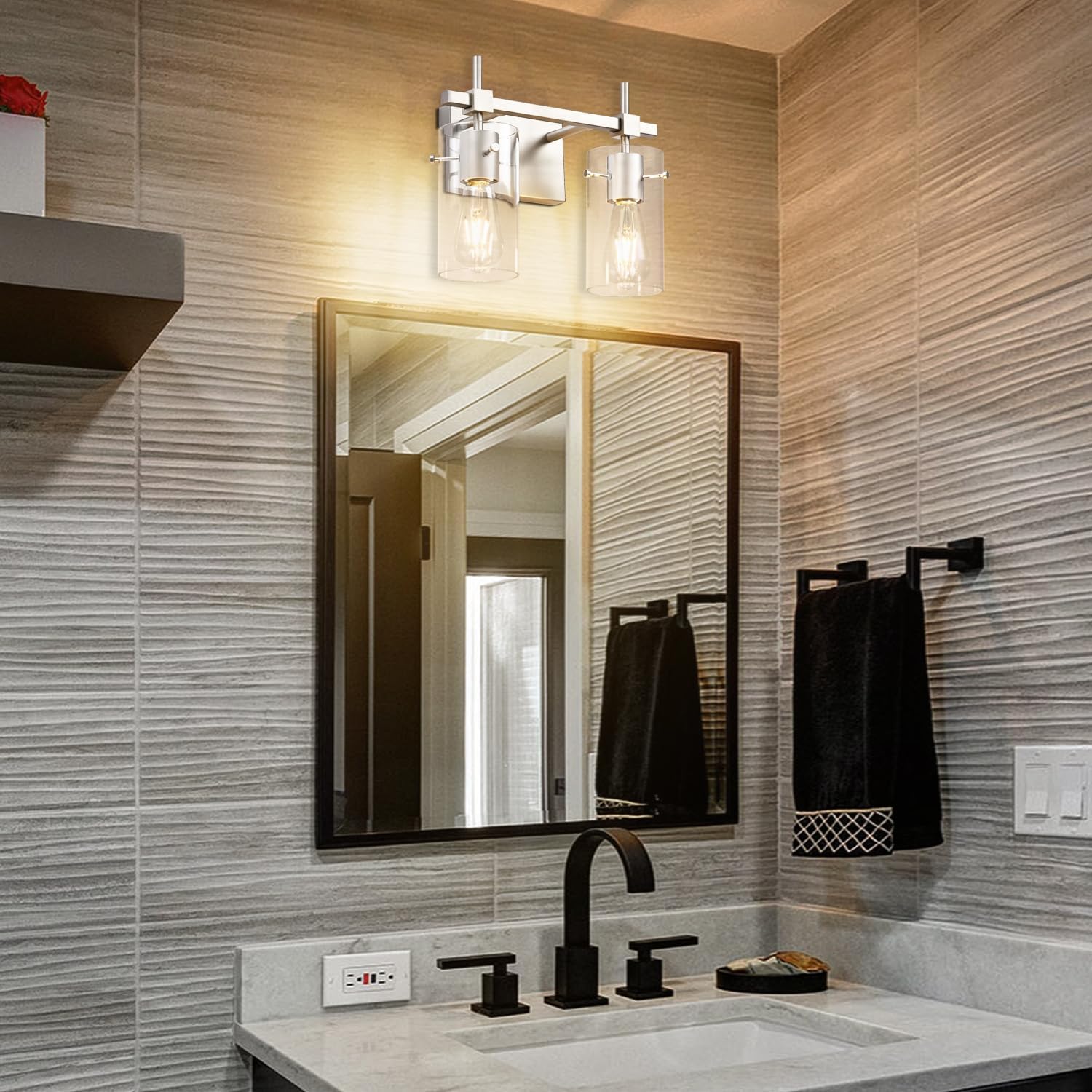 2 Light Bathroom Vanity Light Brushed Nickel, Bathroom Light Fixtures Side Mirror, Vintage Wall Lamp for Bedroom, Modern Bedroom Vanity Lighting Fixtures with Glass Shade