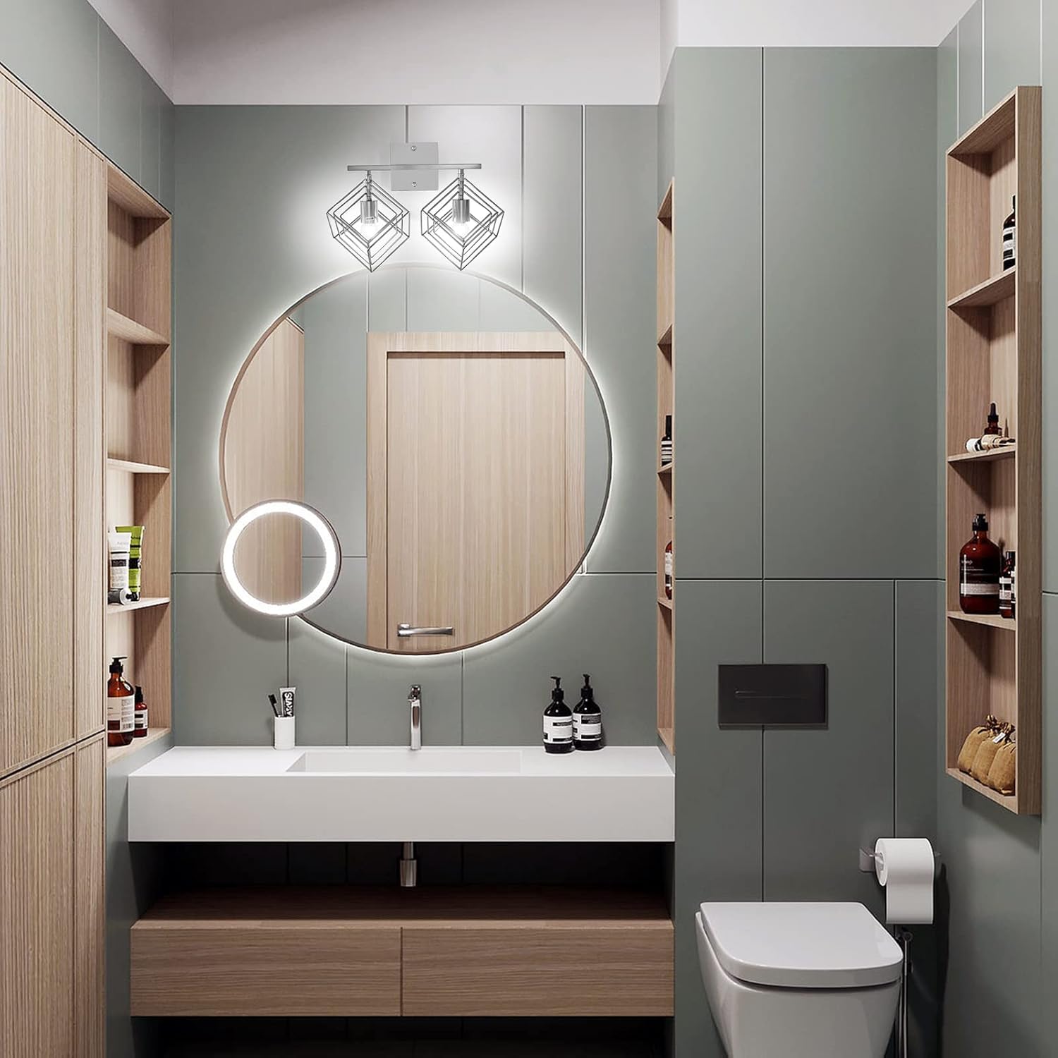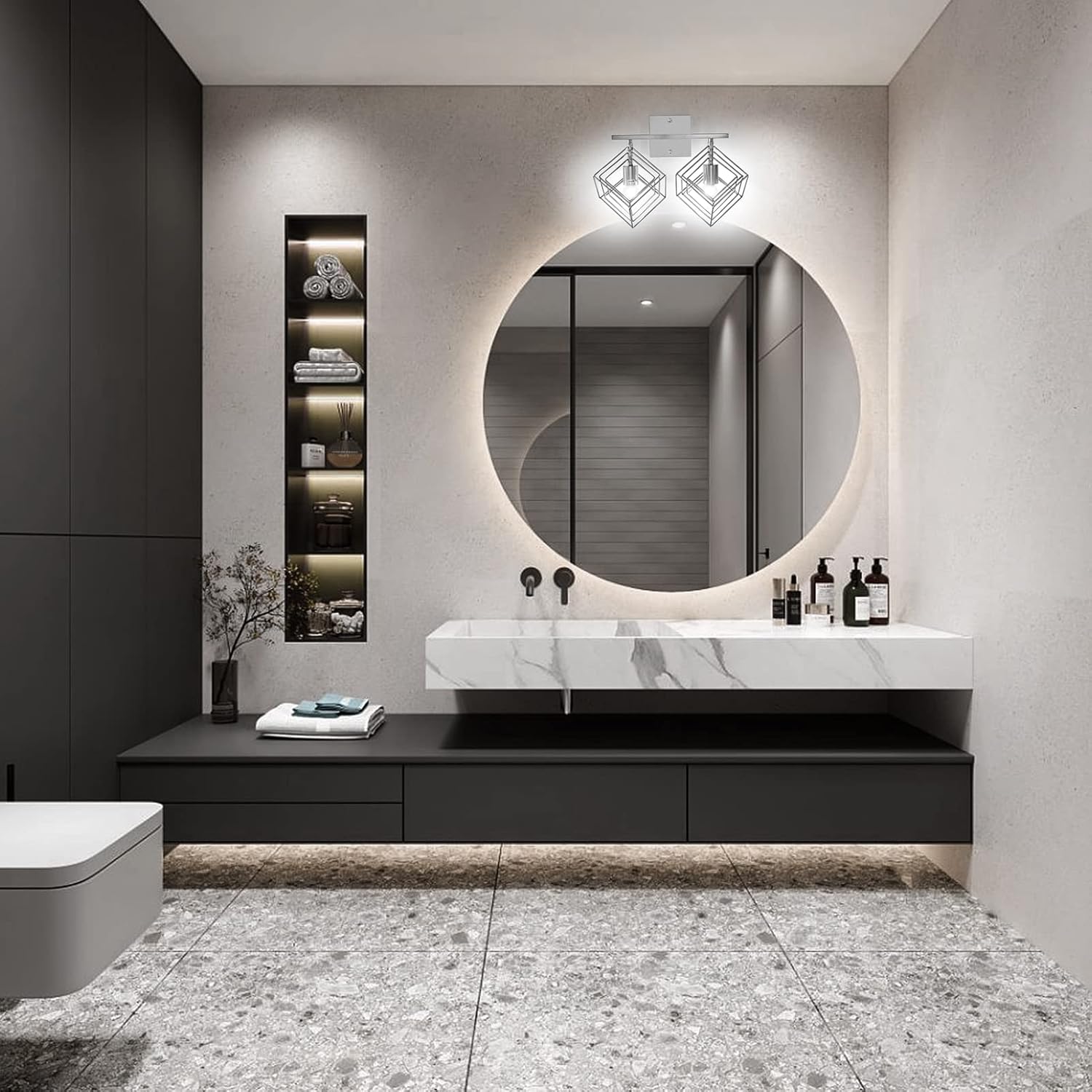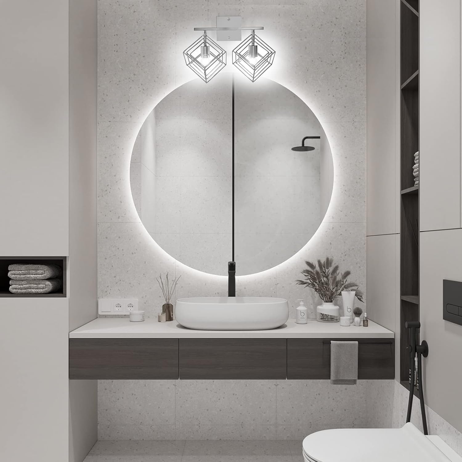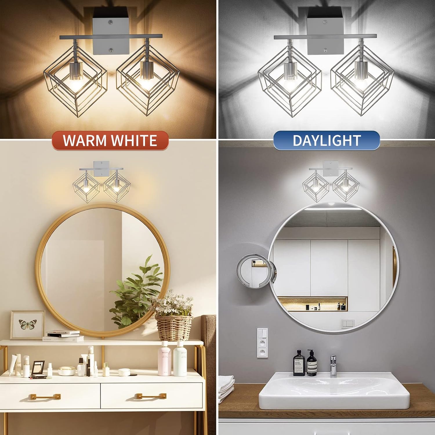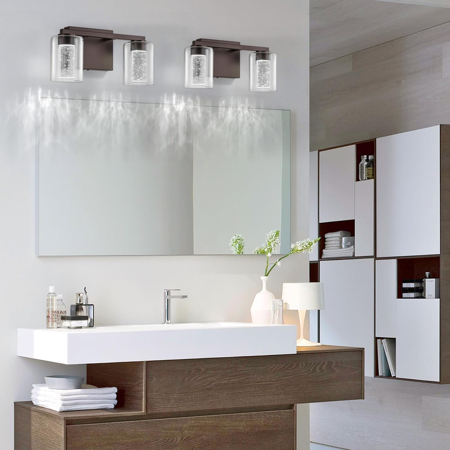 2 Light Bathroom Vanity Light Brushed Nickel, Bathroom Light Fixtures Side Mirror, Vintage Wall Lamp for Bedroom, Modern Bedroom Vanity Lighting Fixtures with Glass Shade