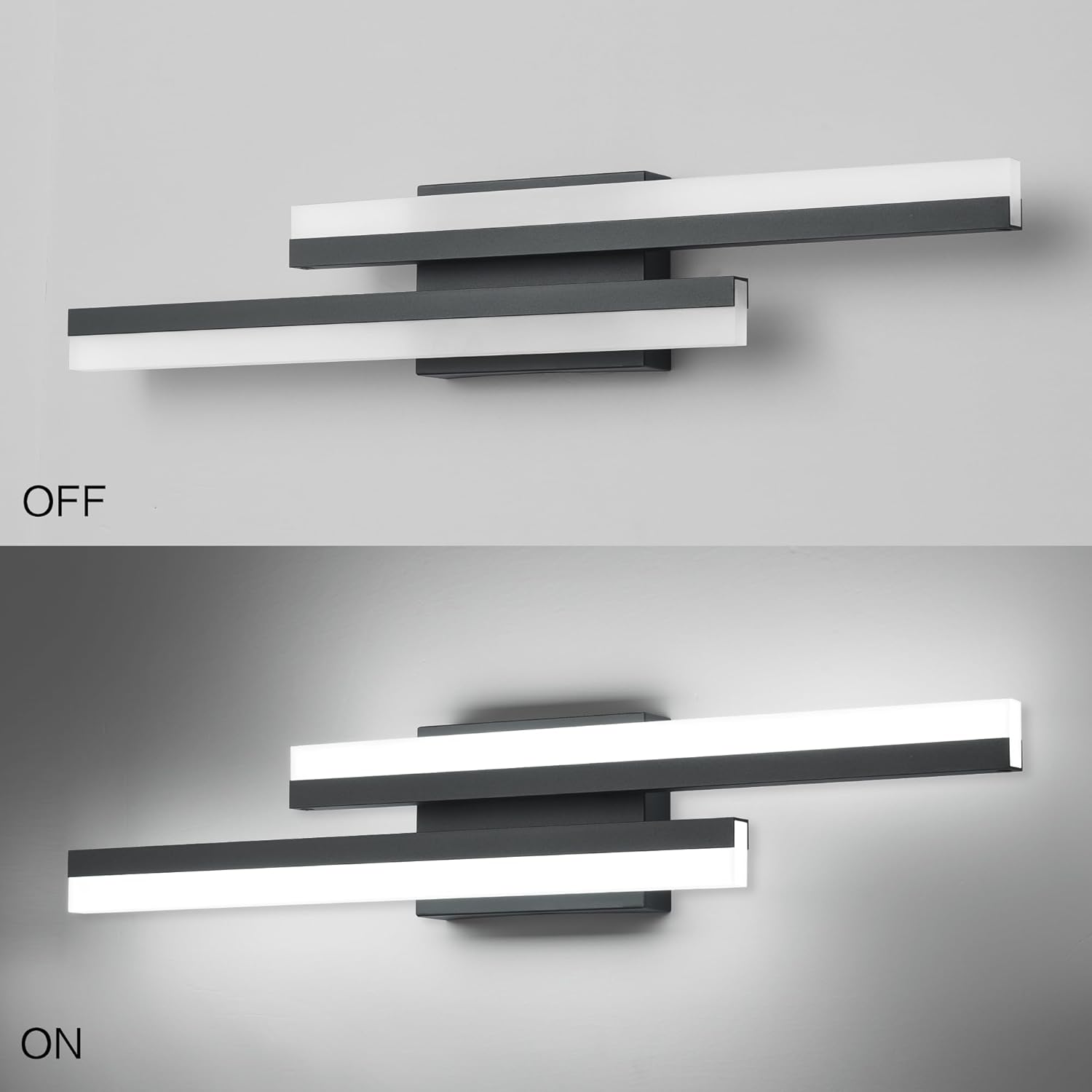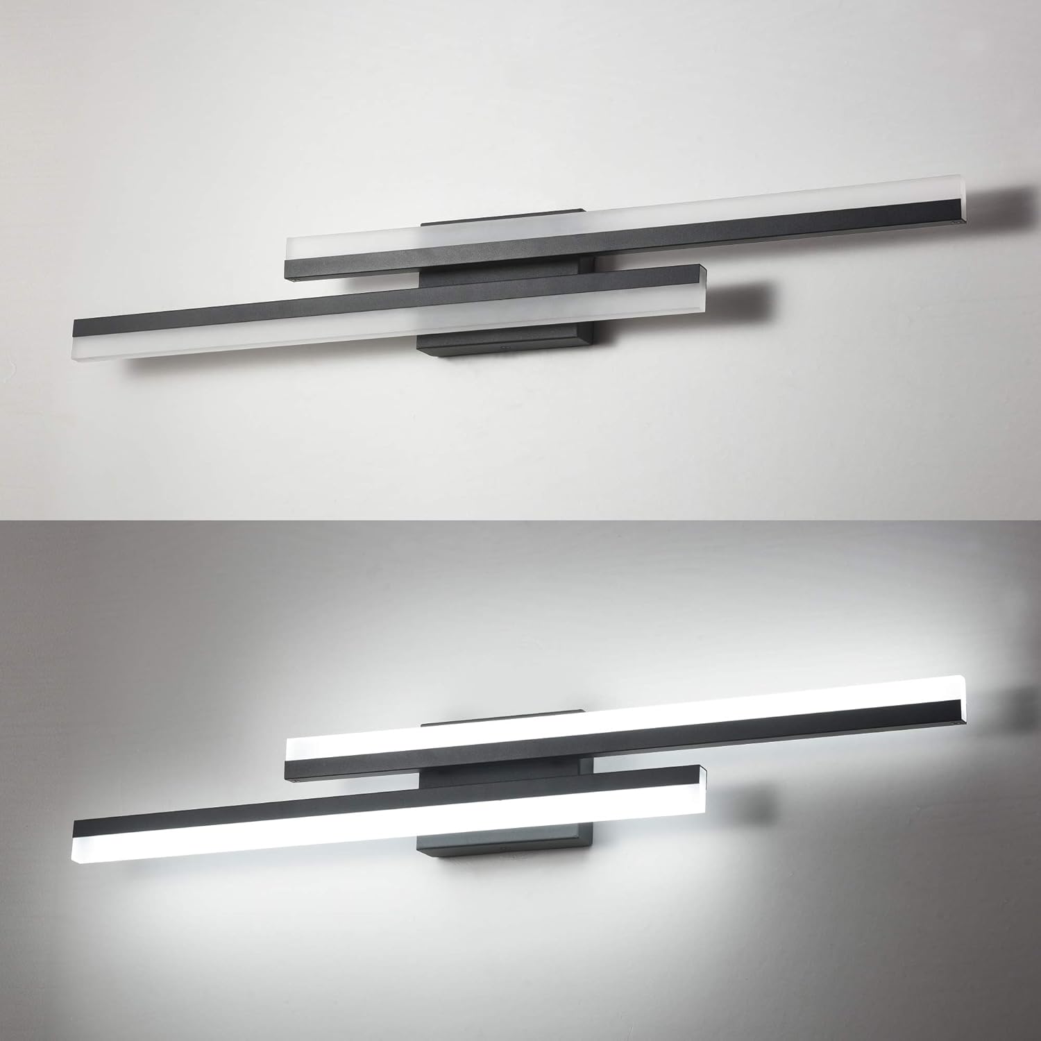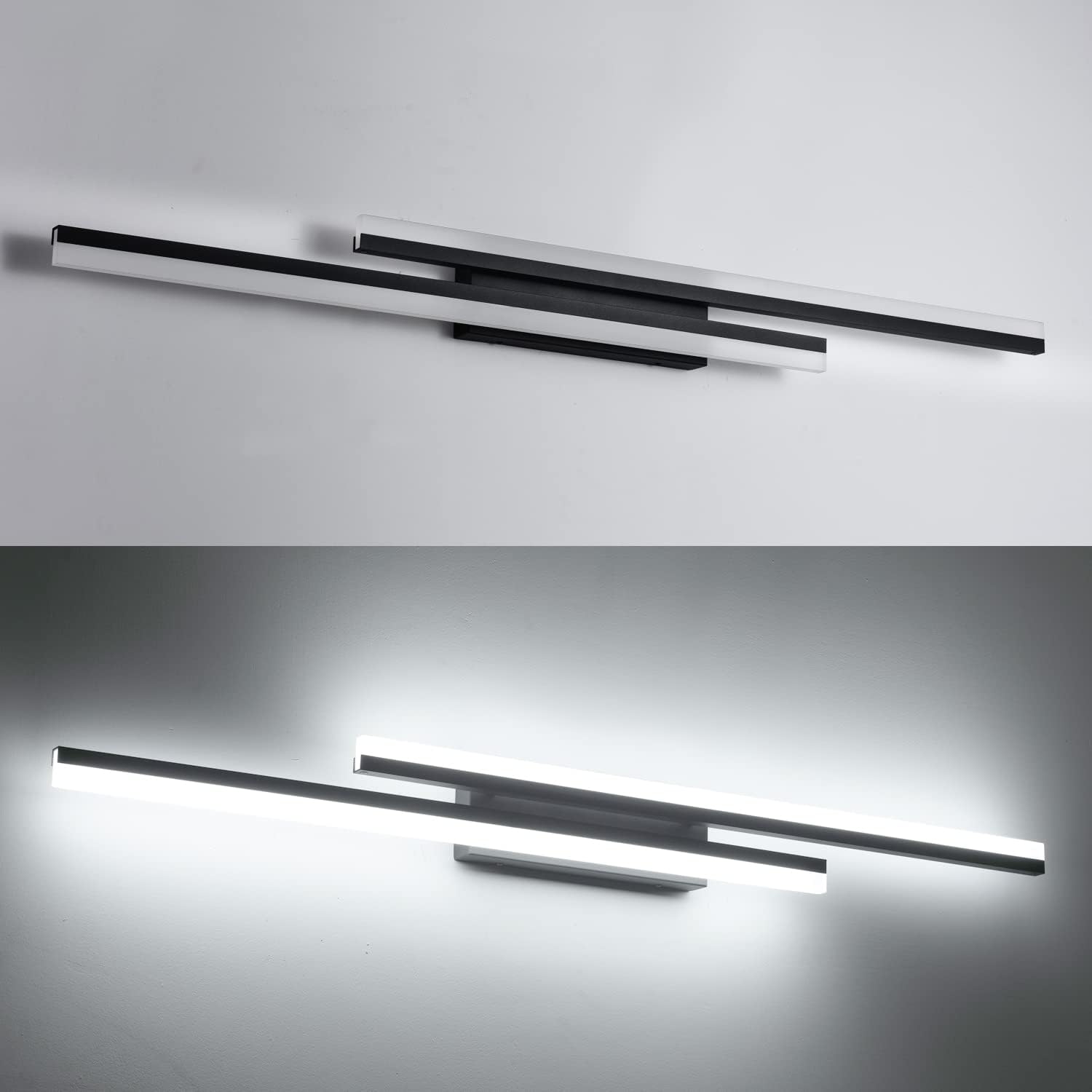 Tipace LED Modern Matte Black Bathroom Vanity Lights Over Mirror 6 Lights Up and Down Black Bathroom Vanity Light Fixtures 6000K