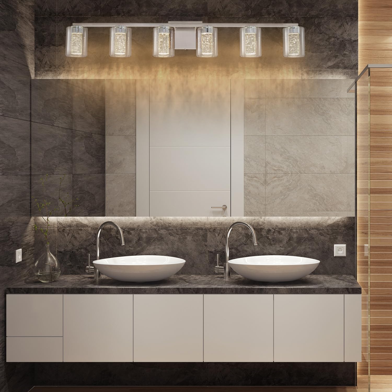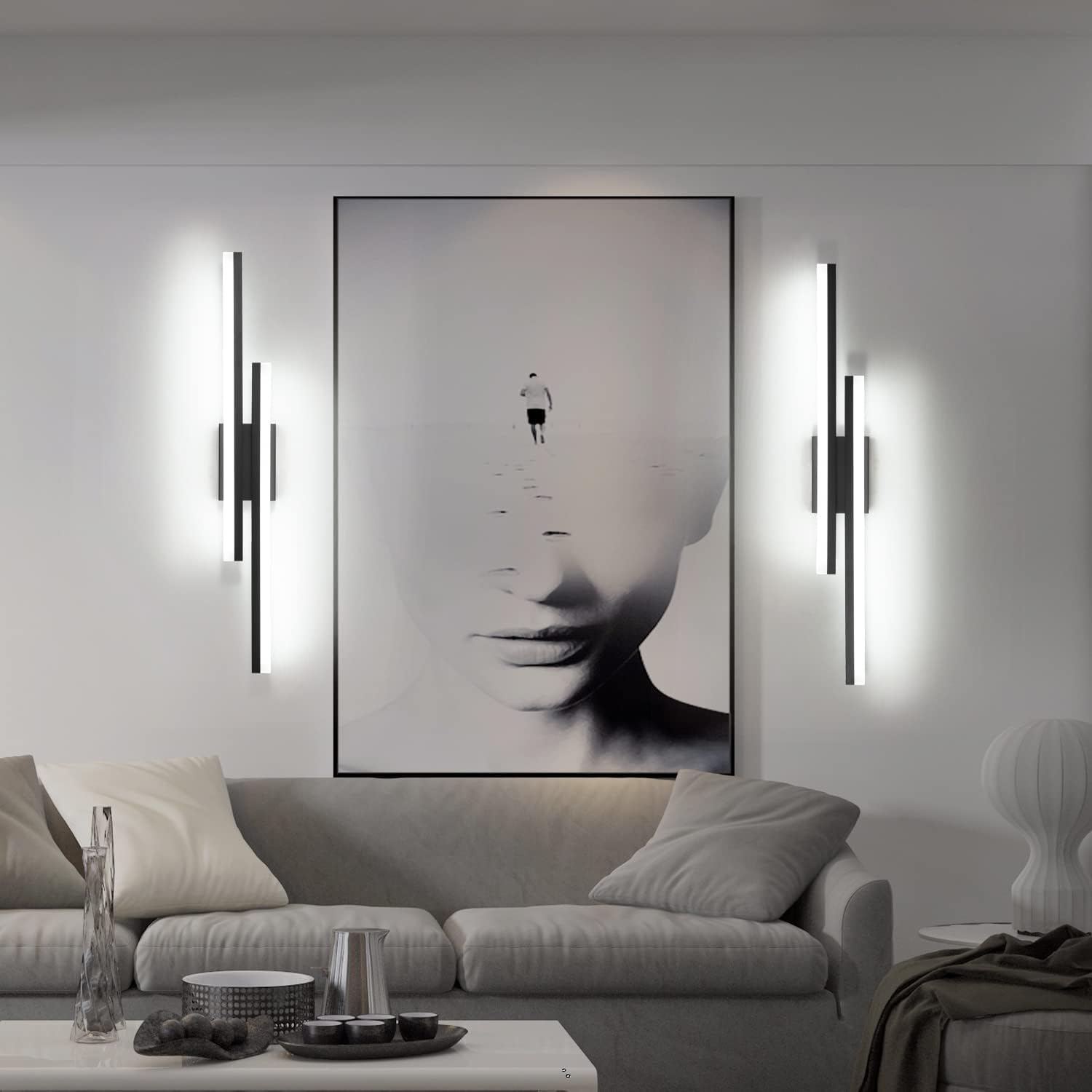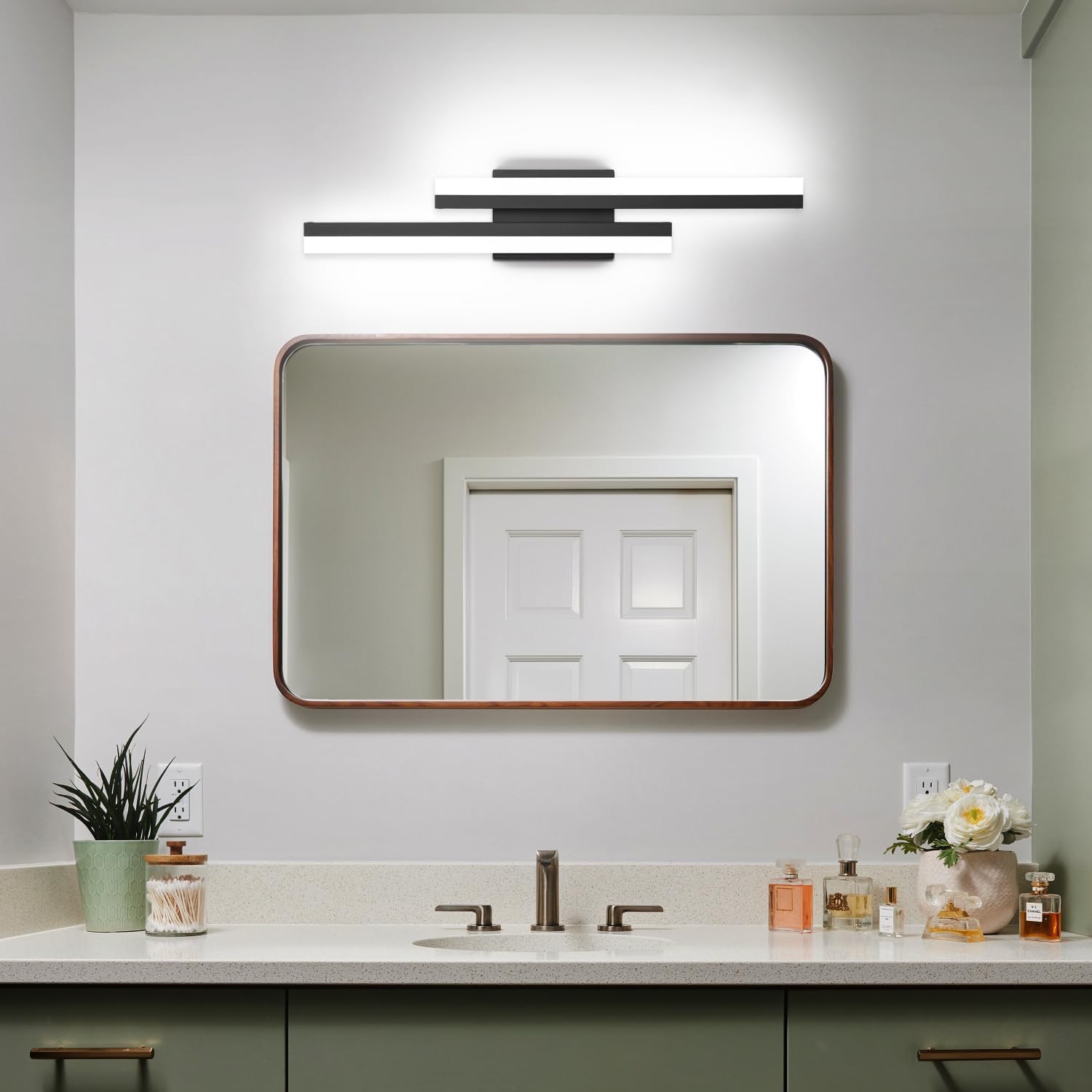 Tipace LED Modern Matte Black Bathroom Vanity Lights Over Mirror 6 Lights Up and Down Black Bathroom Vanity Light Fixtures 6000K