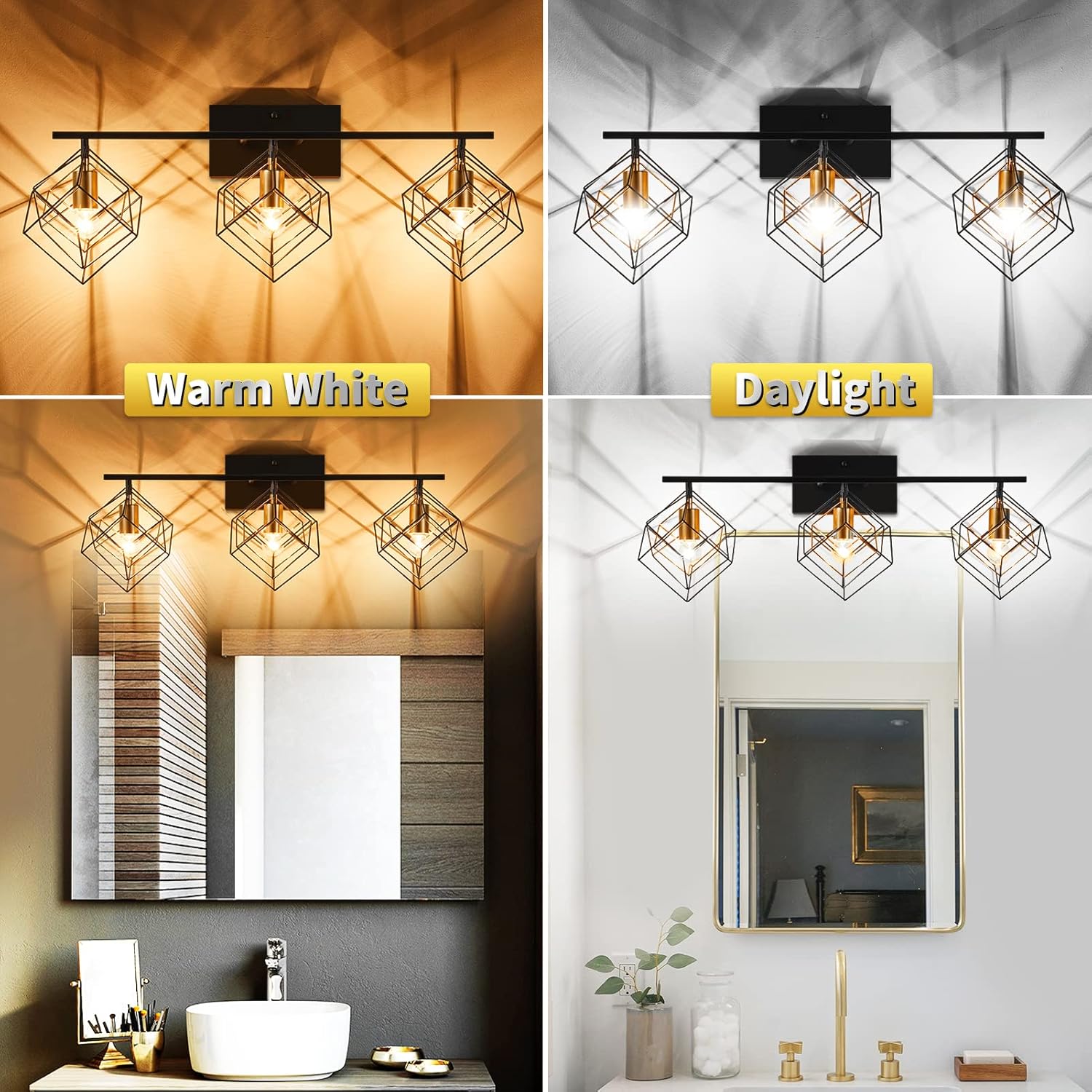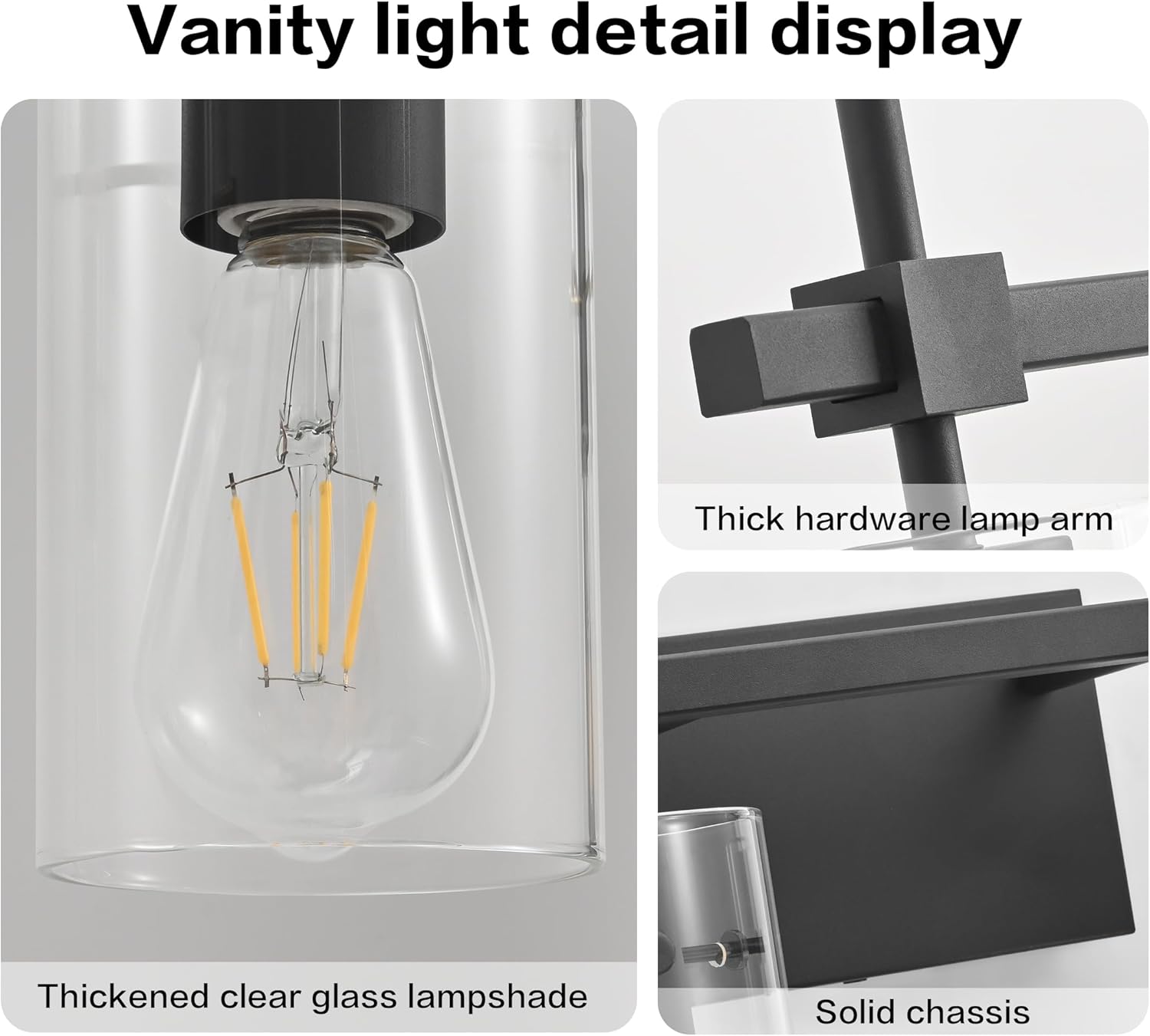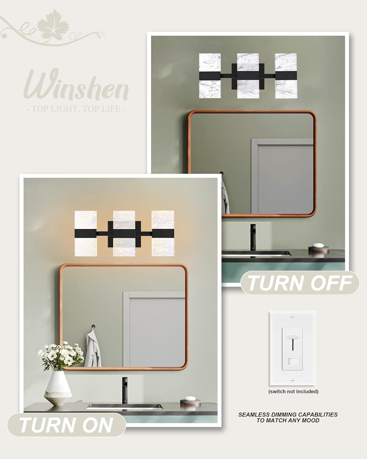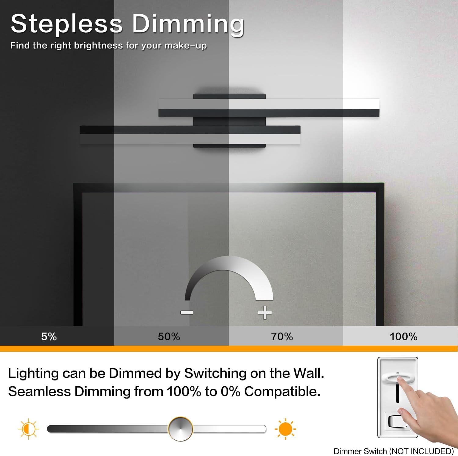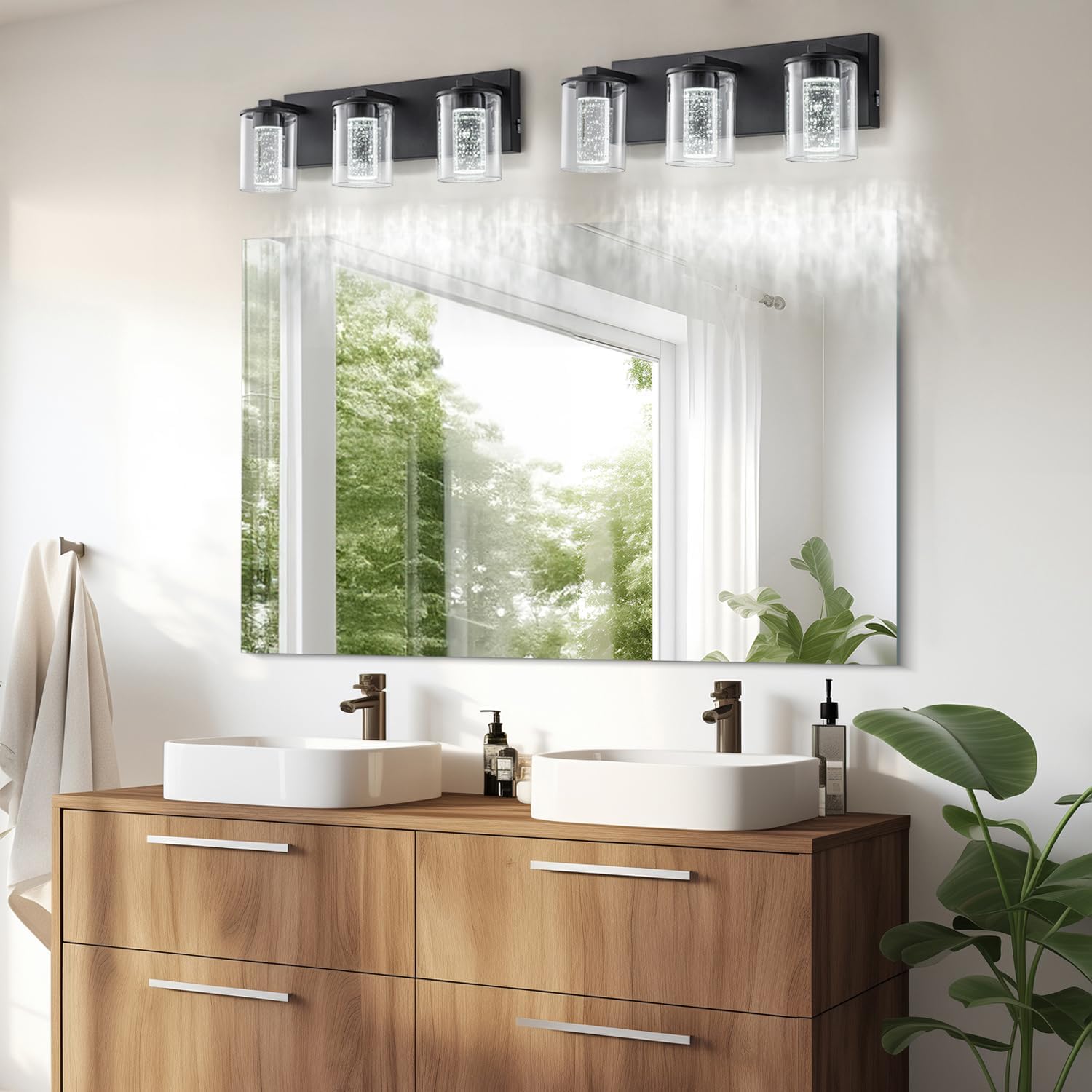 SineRise Black Vanity Light (3-Light, 17-Inch), (3000K/4000K/6000K, Dimmable), Eye Protection LED Bathroom Light Fixture, Modern Wall Light Over Mirror with Clear Glass Shade