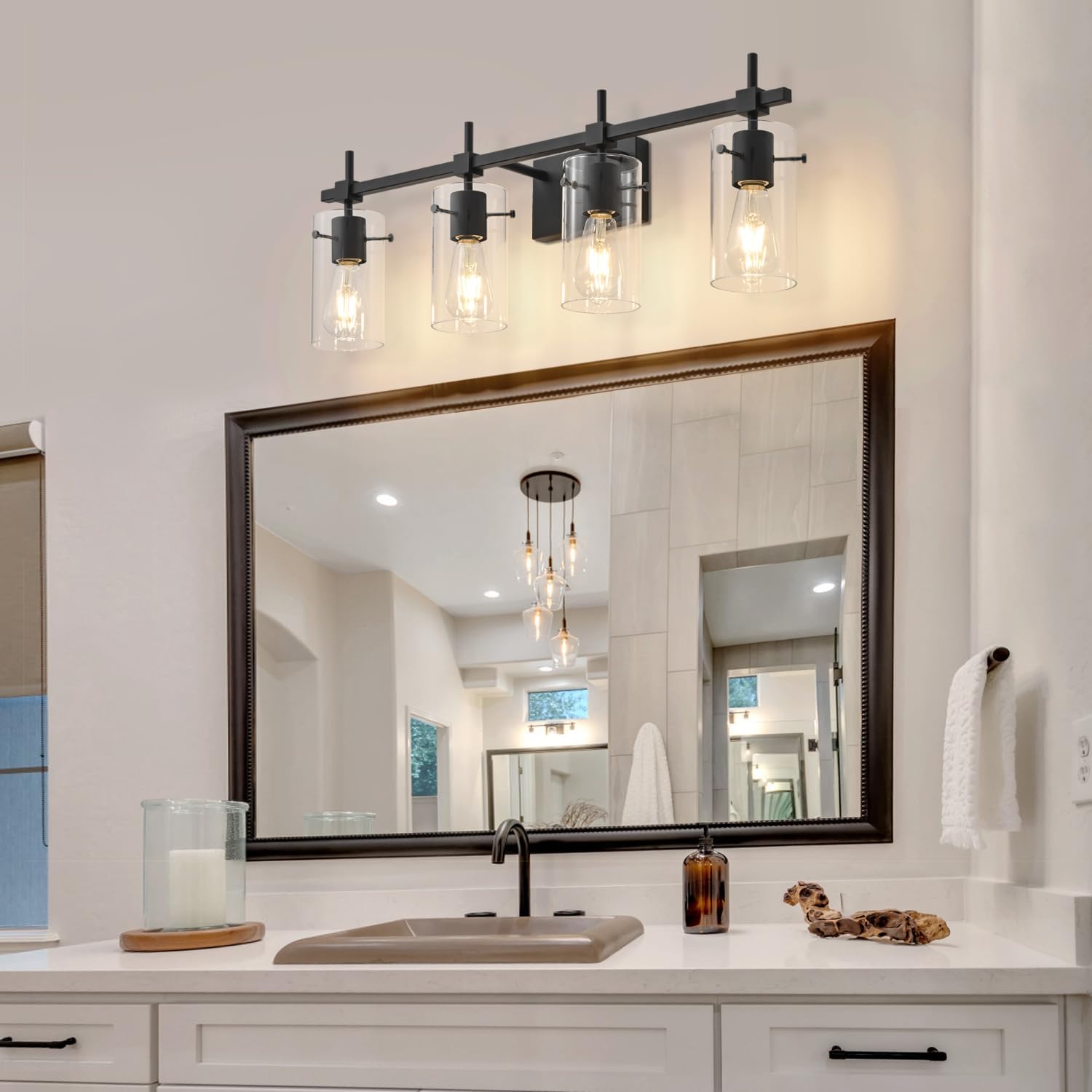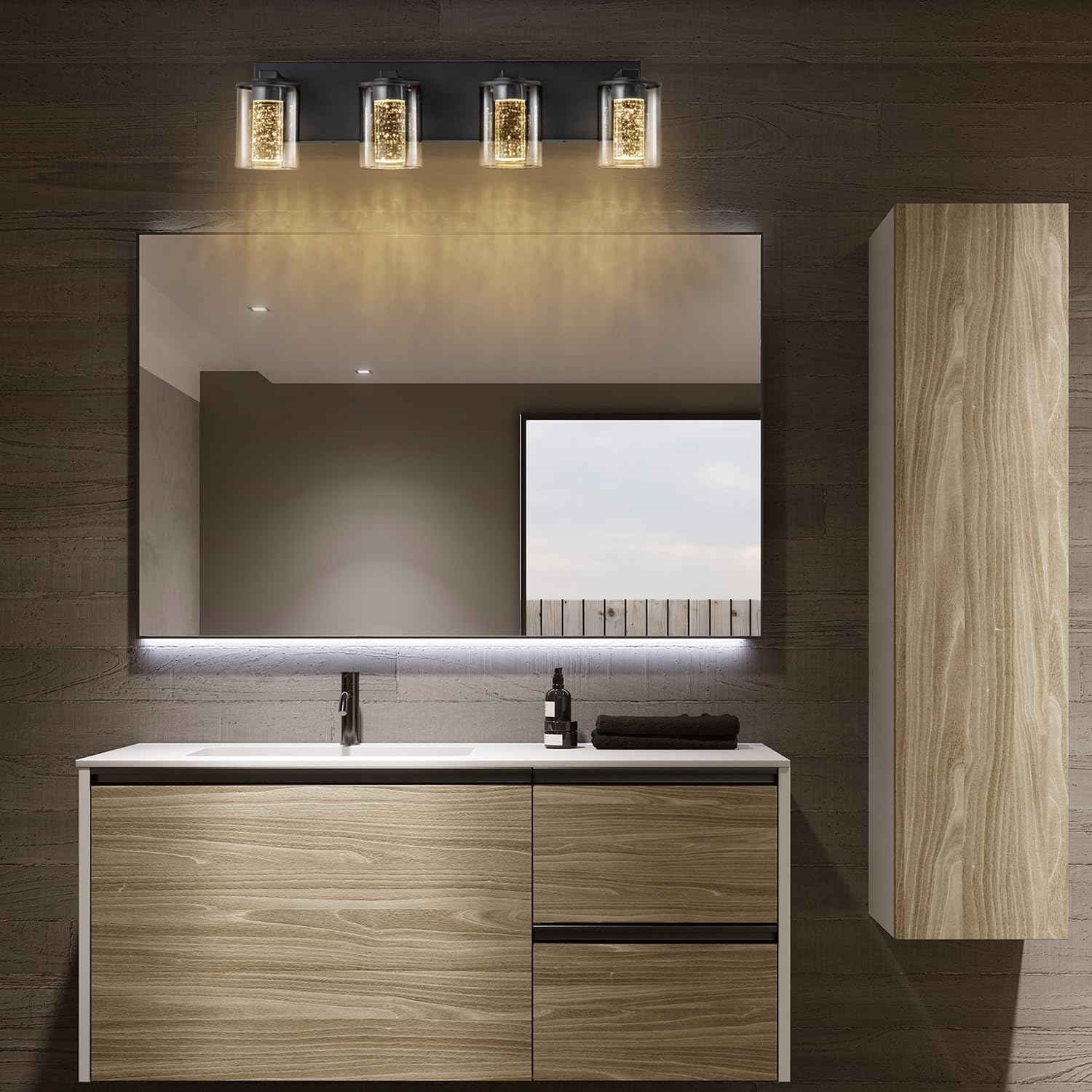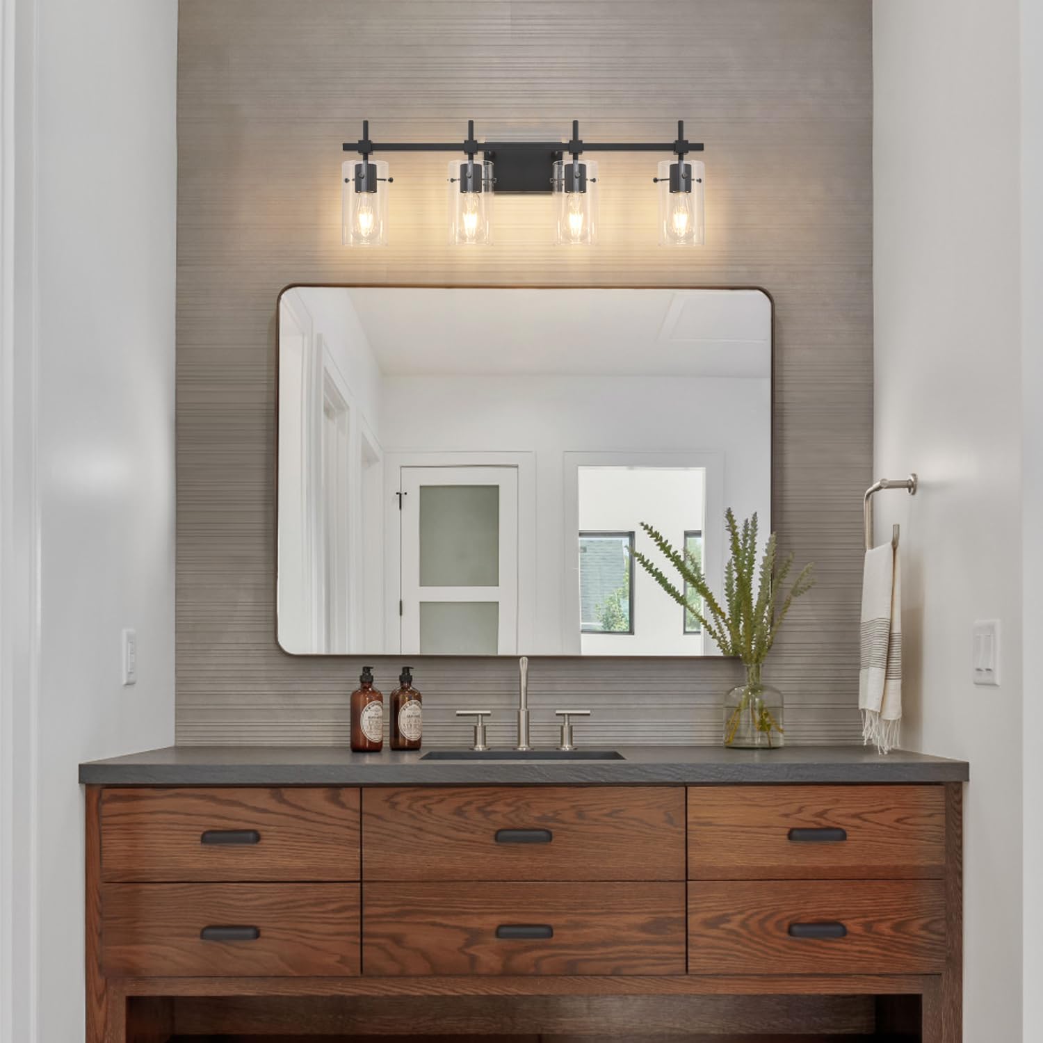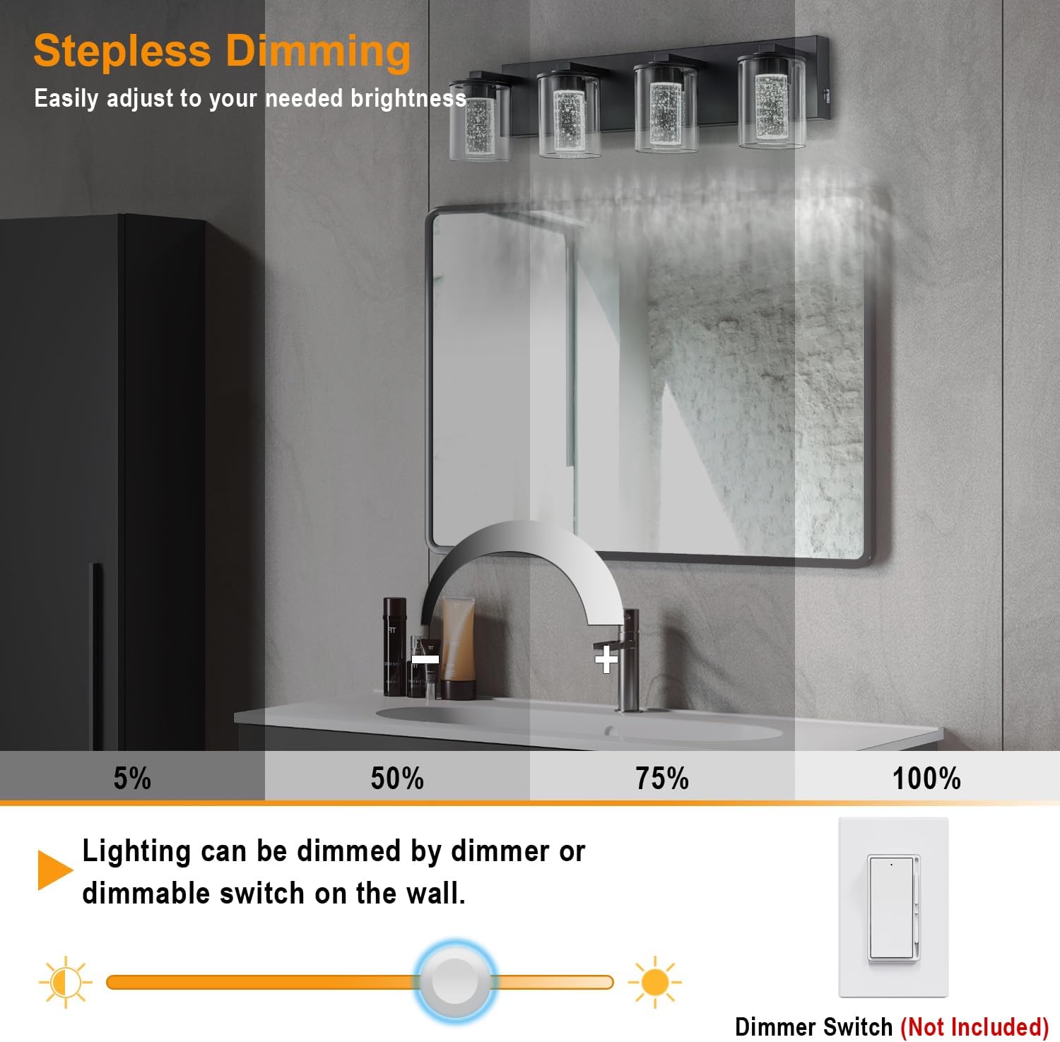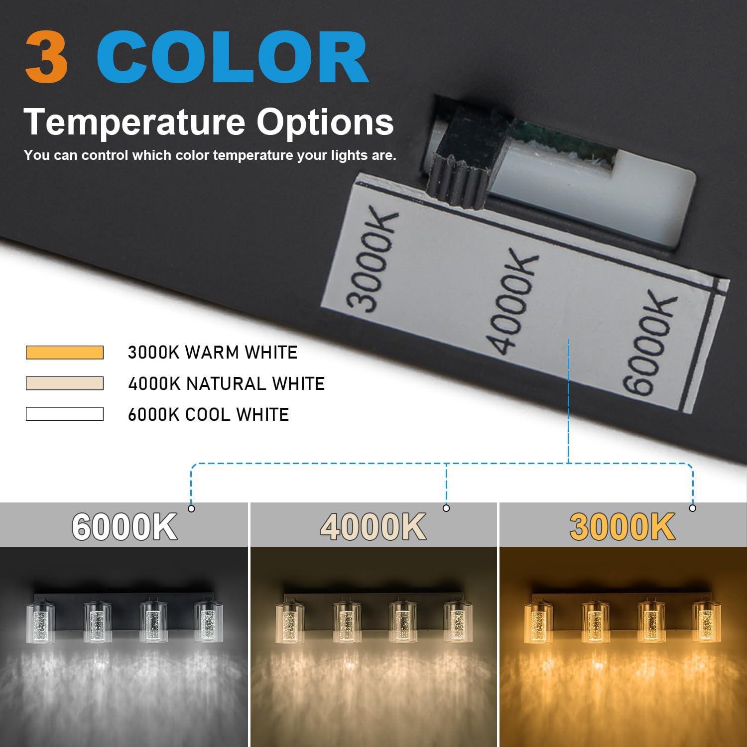 SineRise Black Vanity Light (3-Light, 17-Inch), (3000K/4000K/6000K, Dimmable), Eye Protection LED Bathroom Light Fixture, Modern Wall Light Over Mirror with Clear Glass Shade