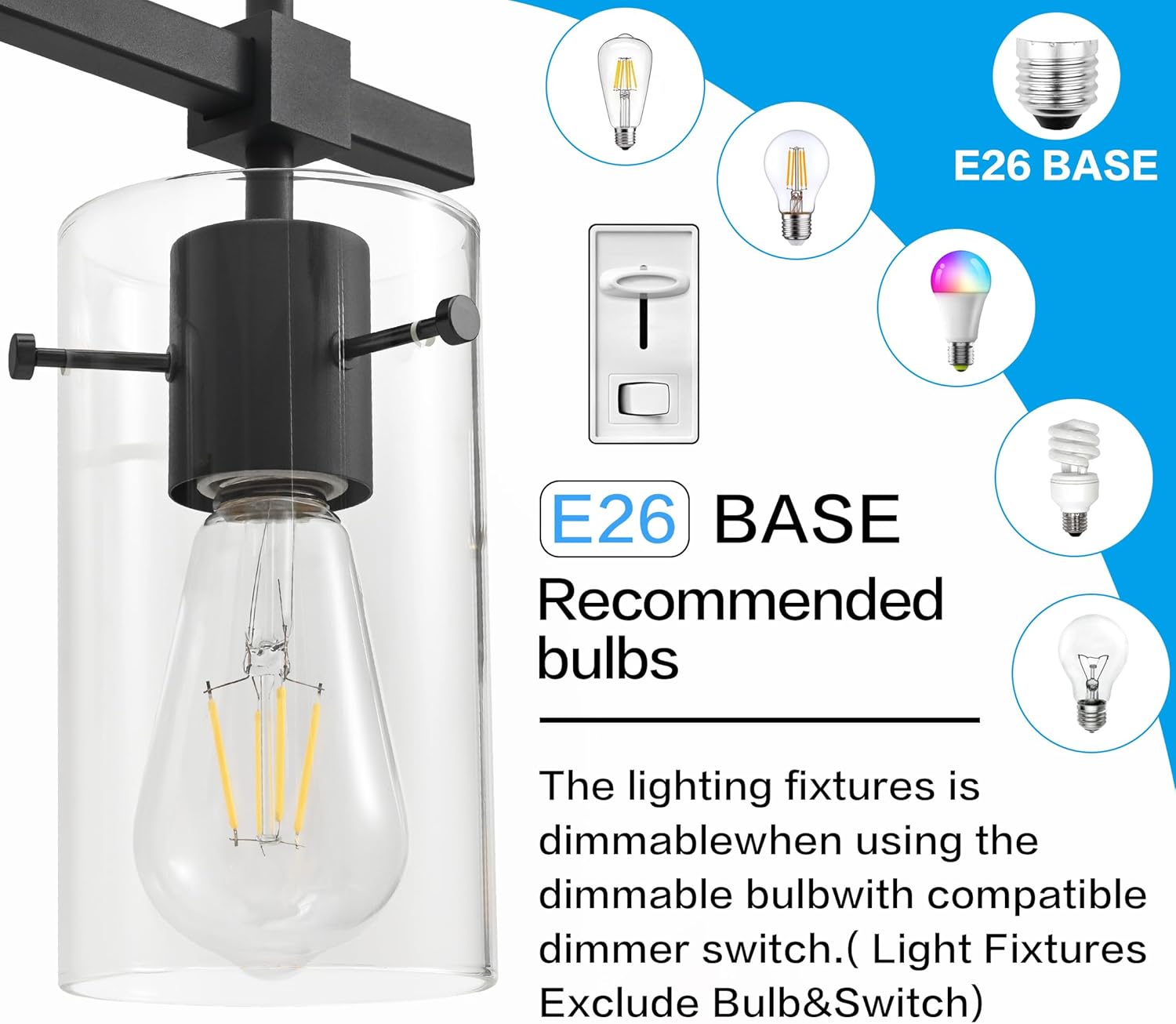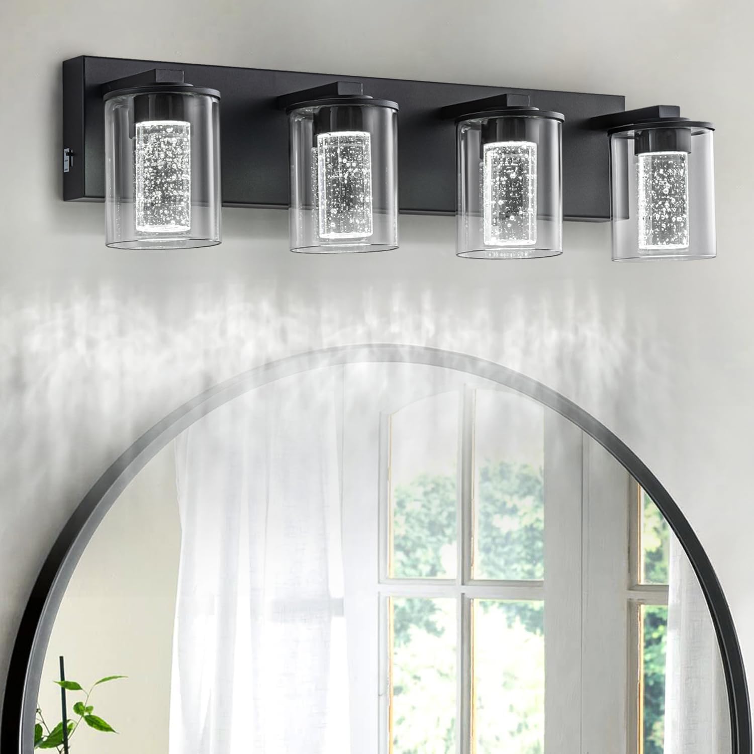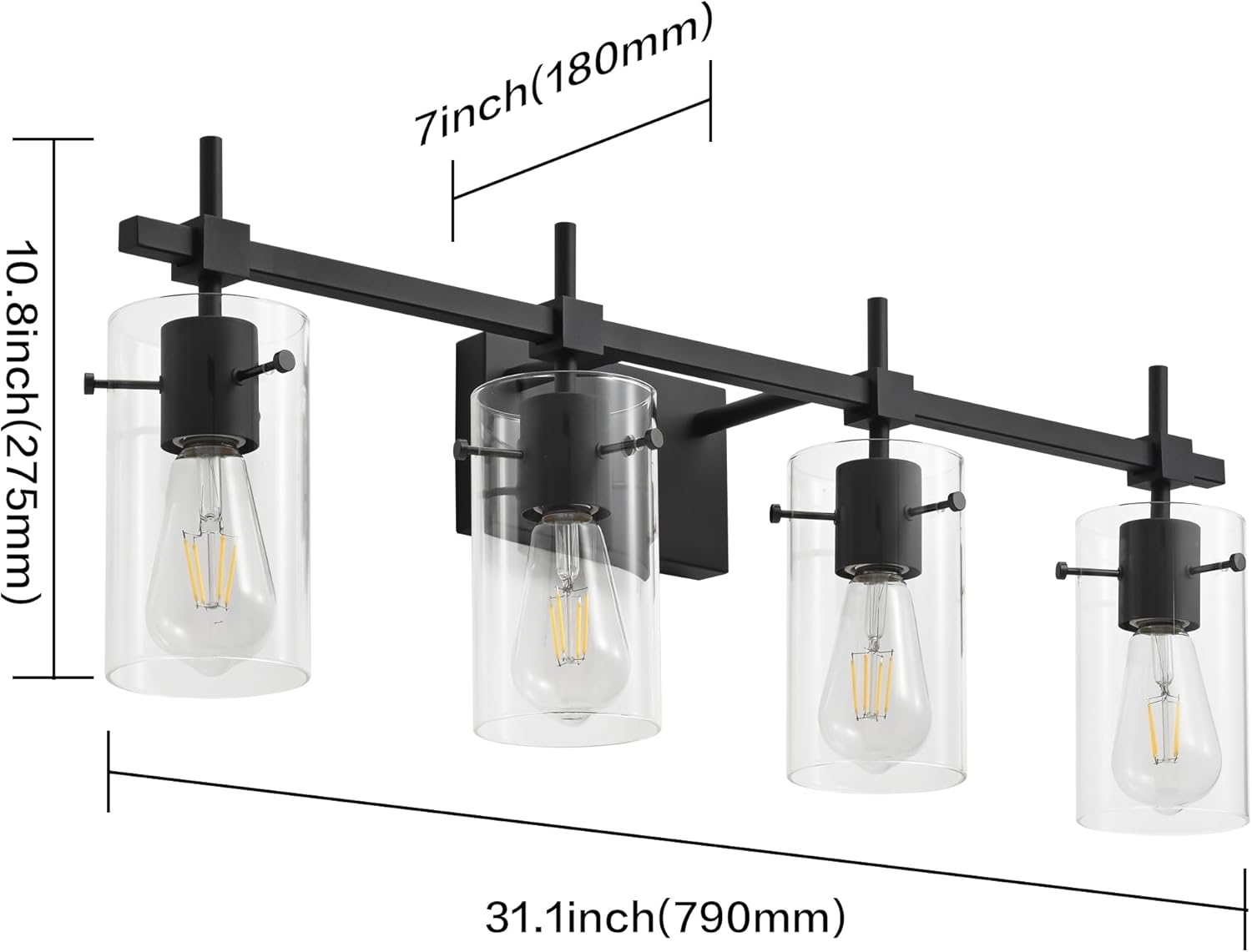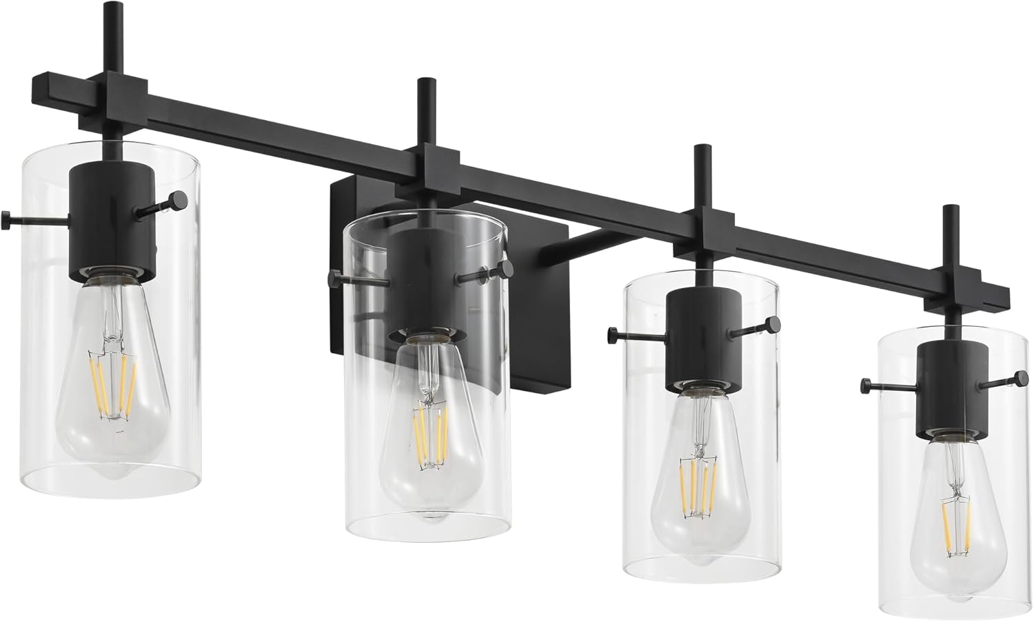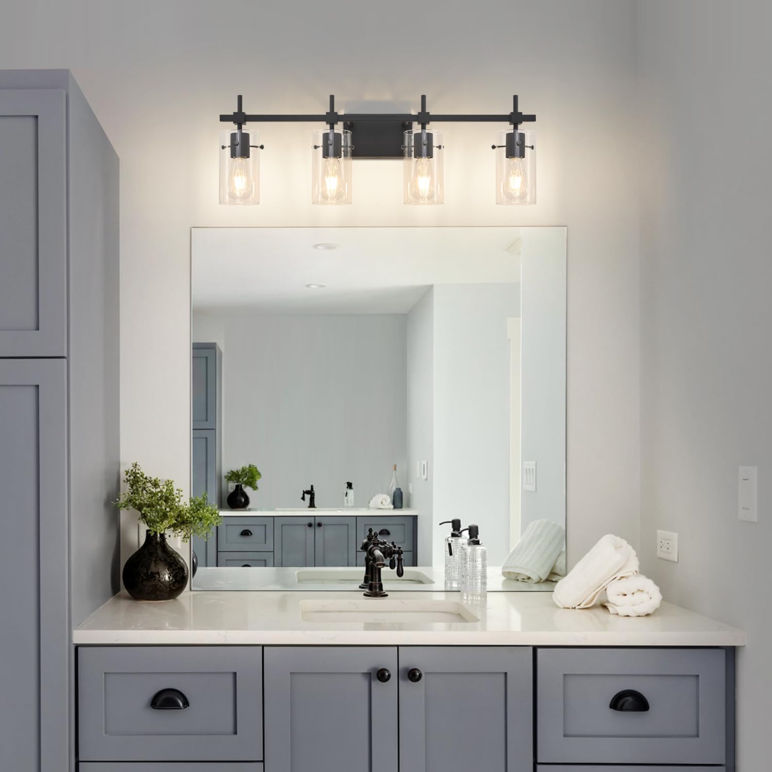 SineRise Black Vanity Light (3-Light, 17-Inch), (3000K/4000K/6000K, Dimmable), Eye Protection LED Bathroom Light Fixture, Modern Wall Light Over Mirror with Clear Glass Shade