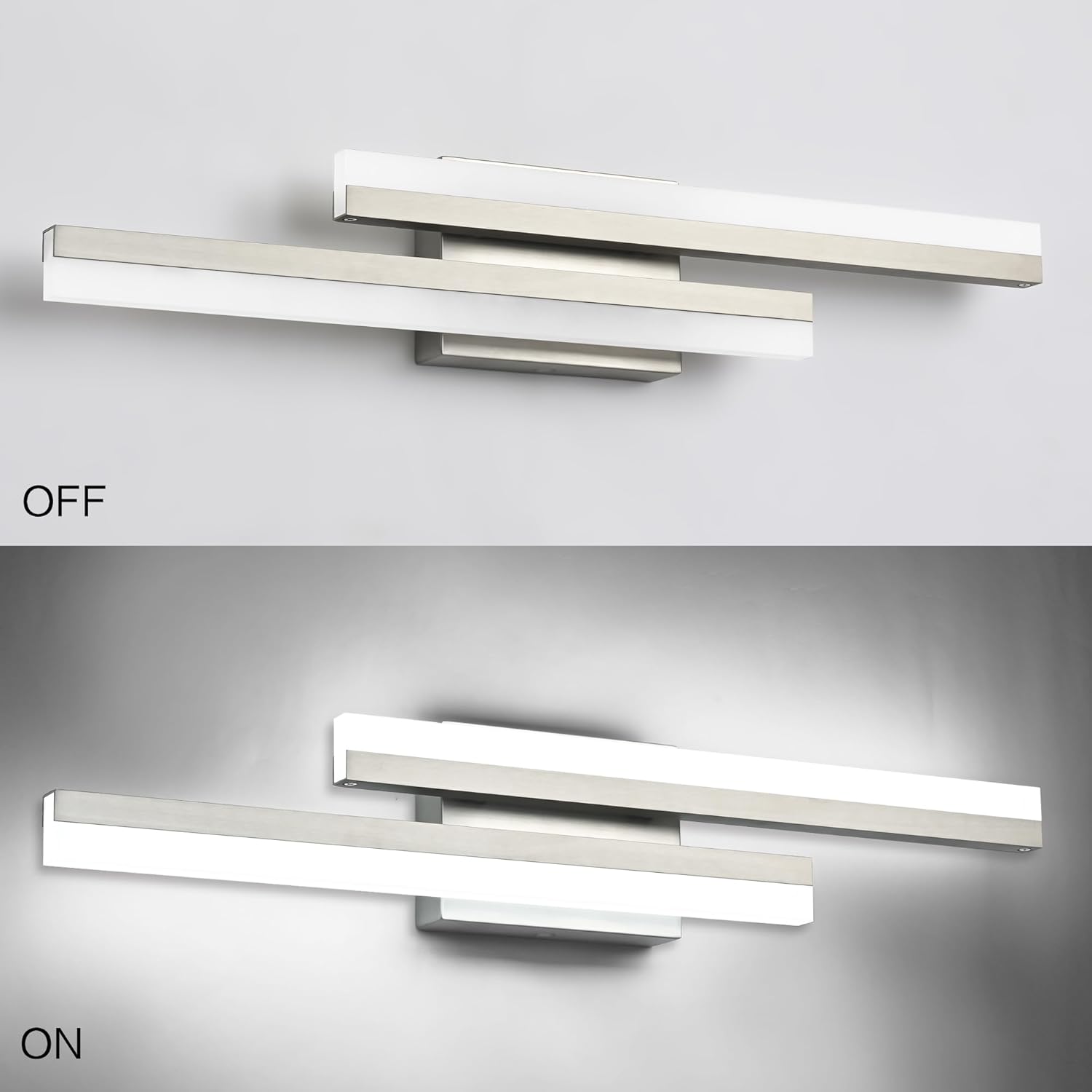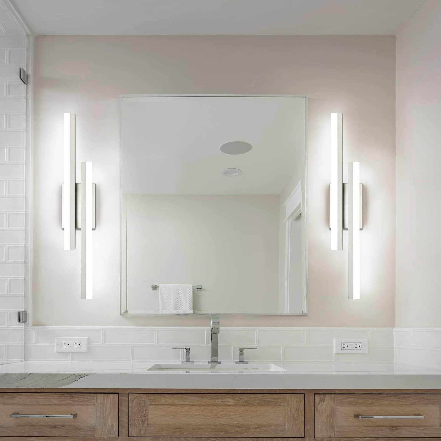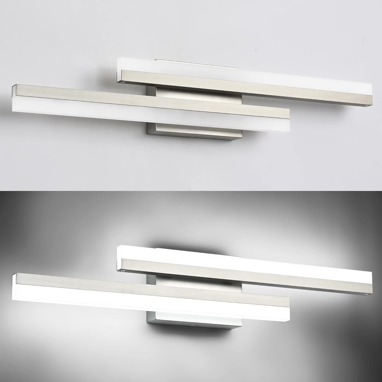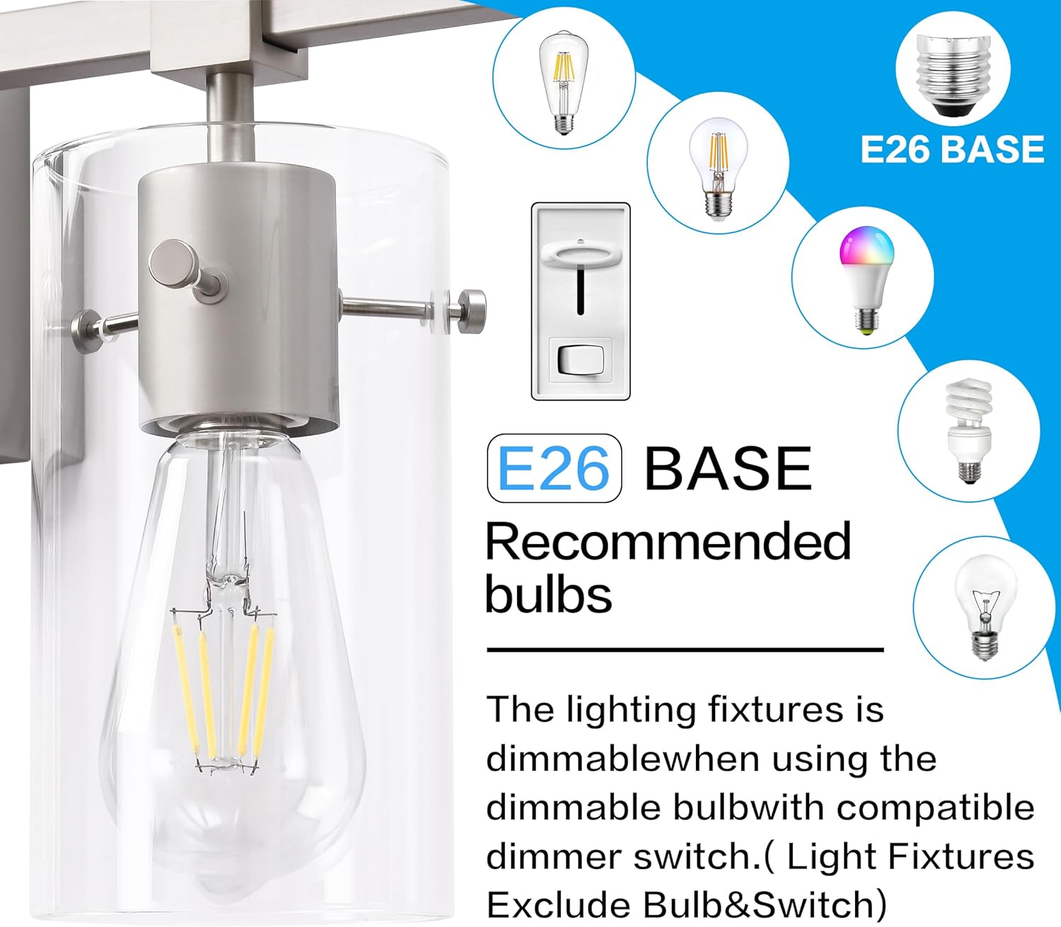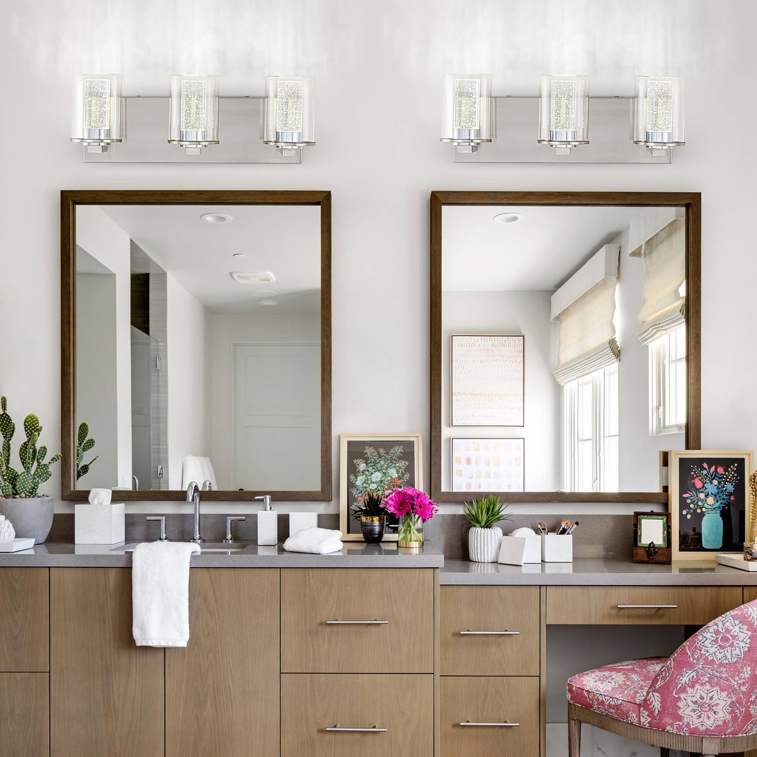 SineRise Brushed Nickel Vanity Light (3-Light, 17-Inch), (3000K/4000K/6000K, Dimmable), Eye Protection LED Bathroom Light Fixture, Modern Wall Light Over Mirror with Clear Glass Shade